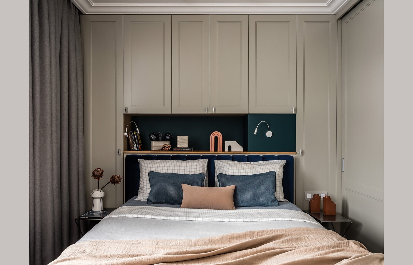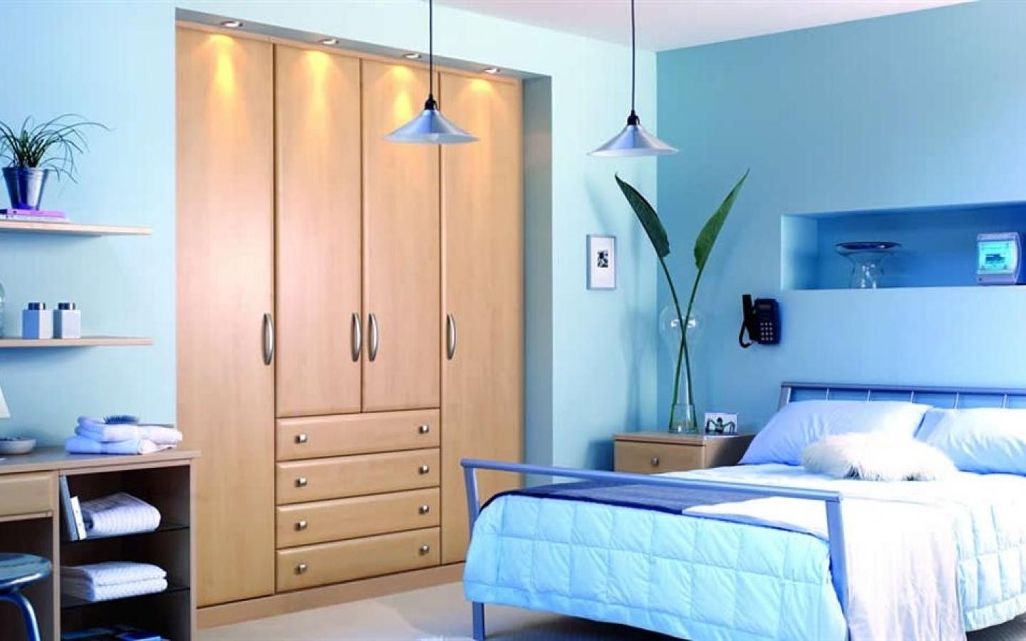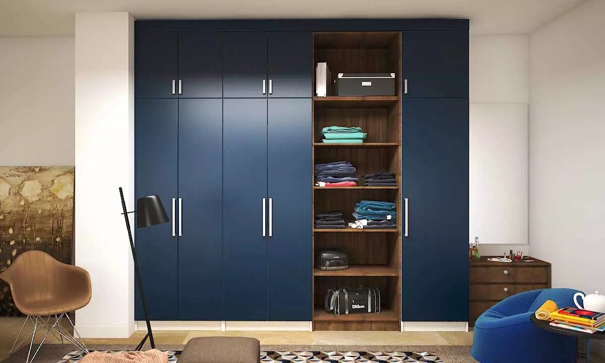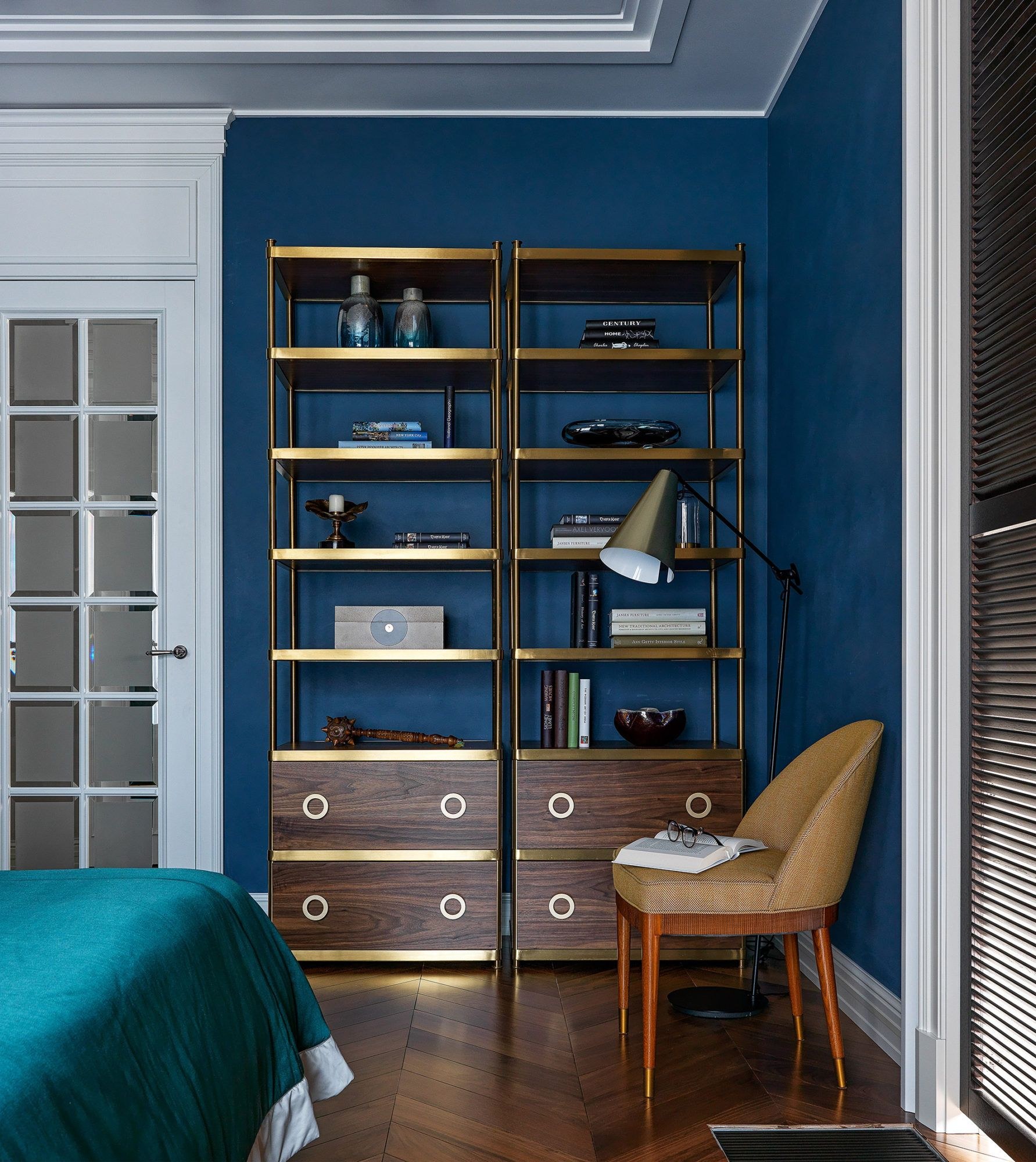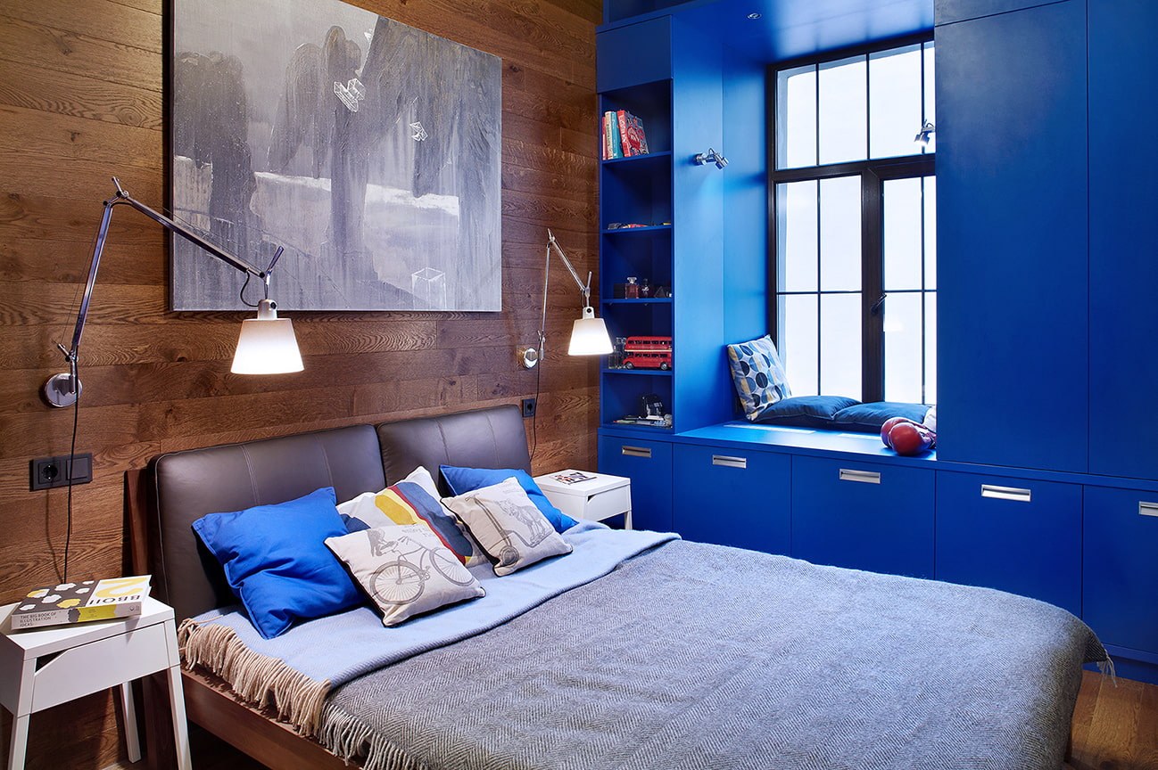 Шкаф с жалюзийными дверцами в интерьере спальни