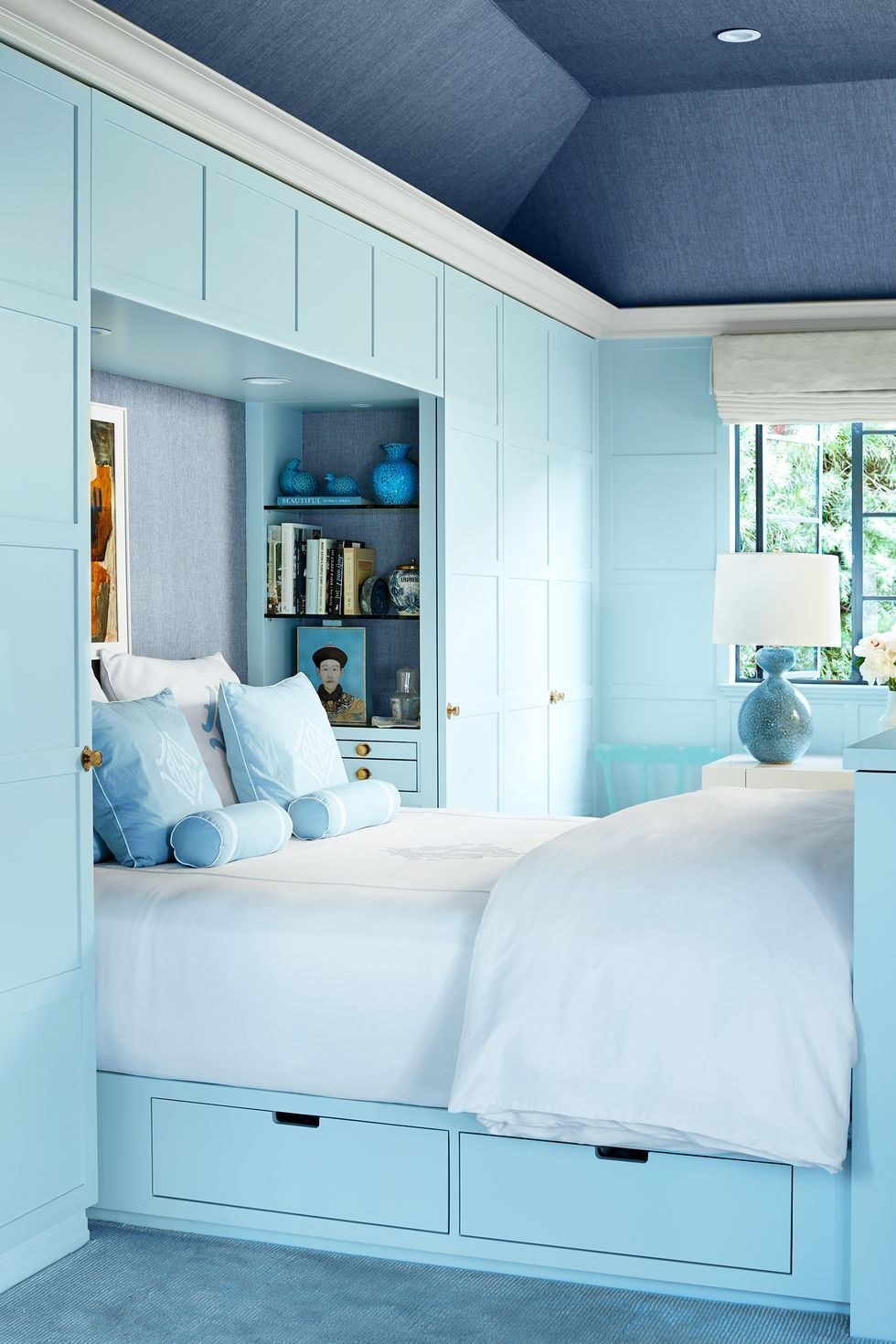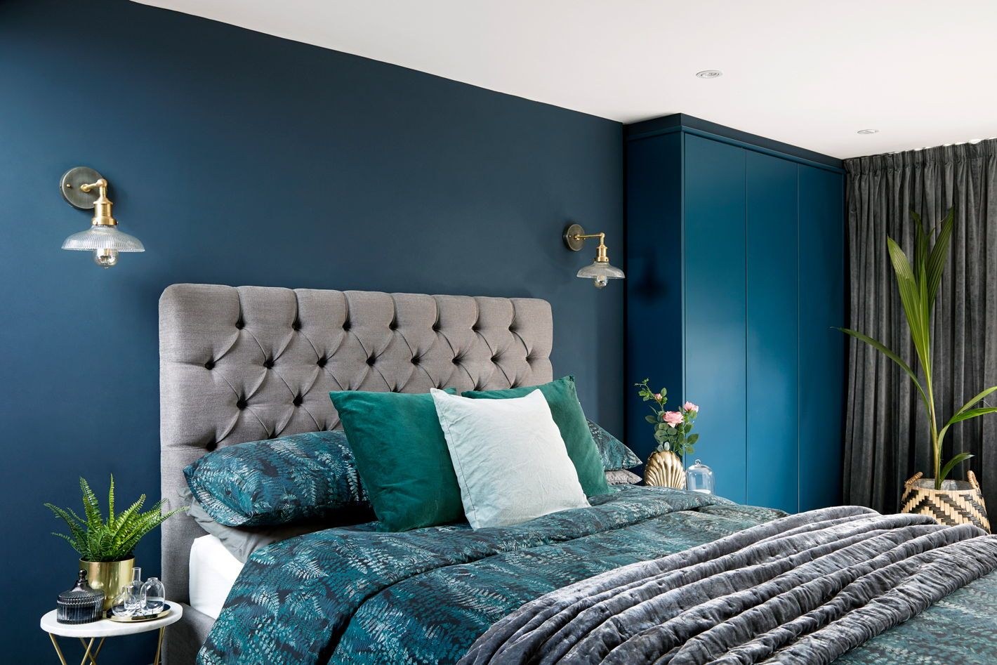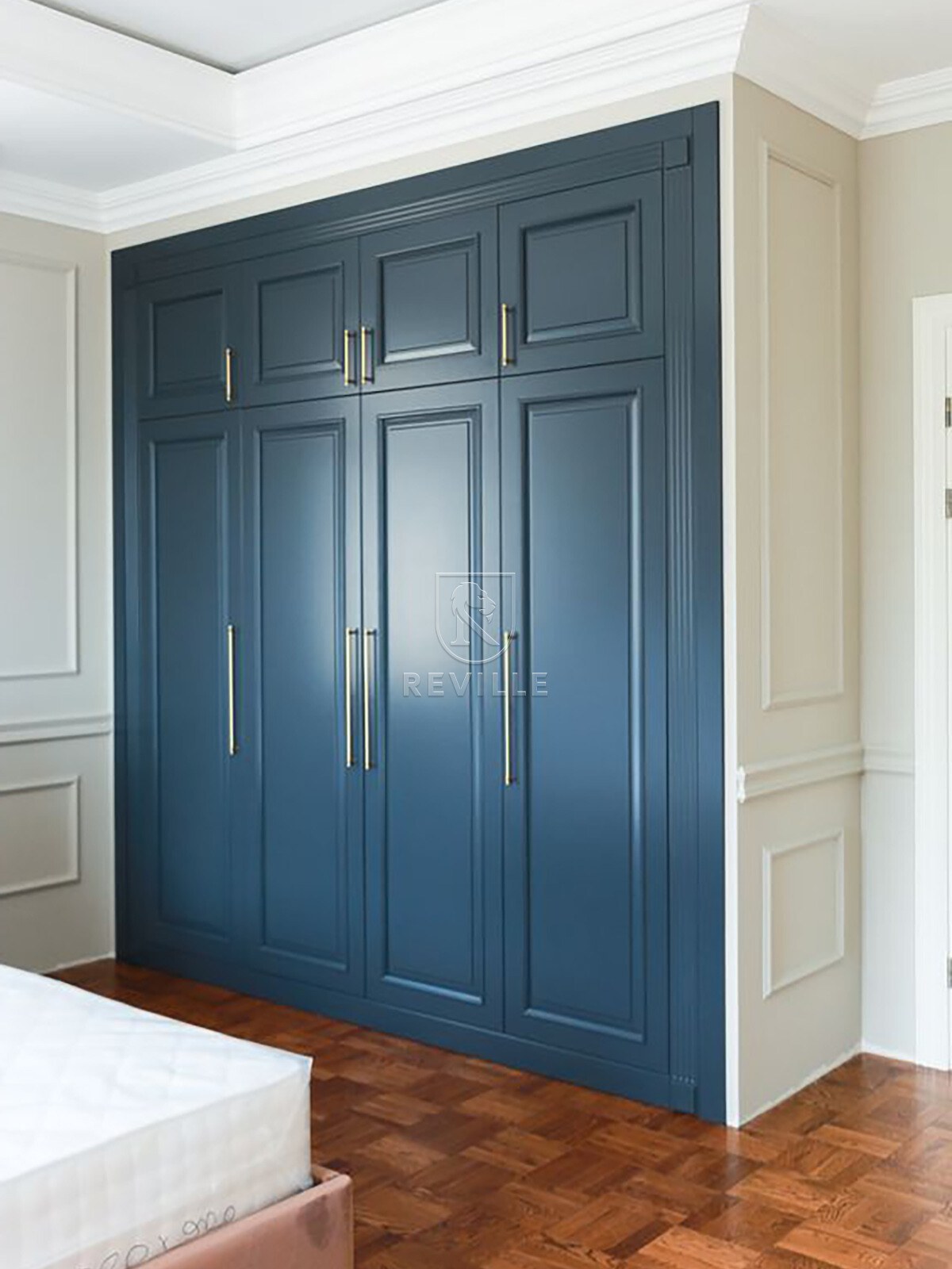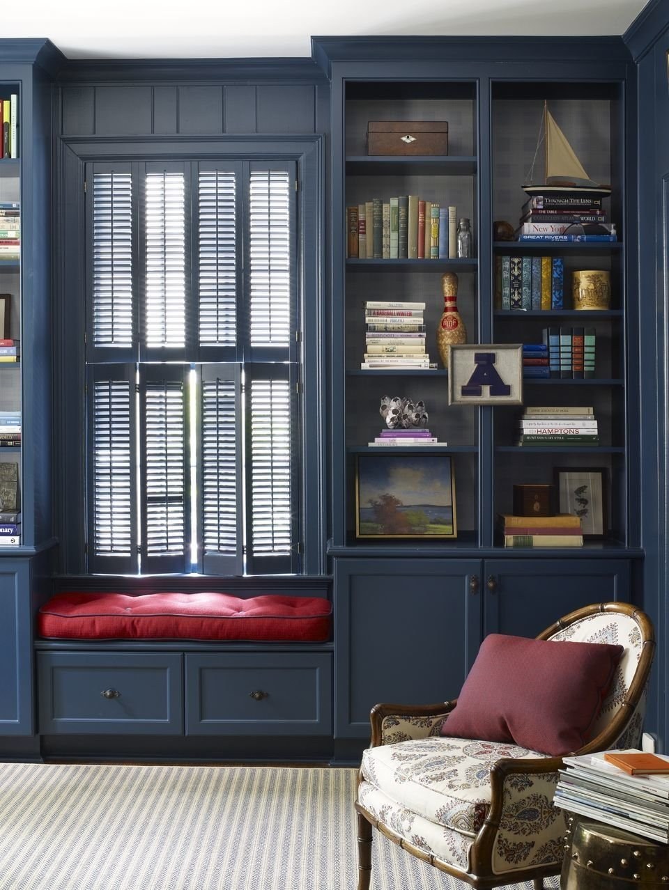 Шкаф с жалюзийными дверцами в интерьере спальни