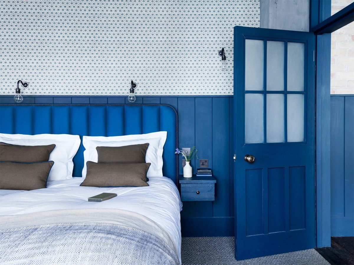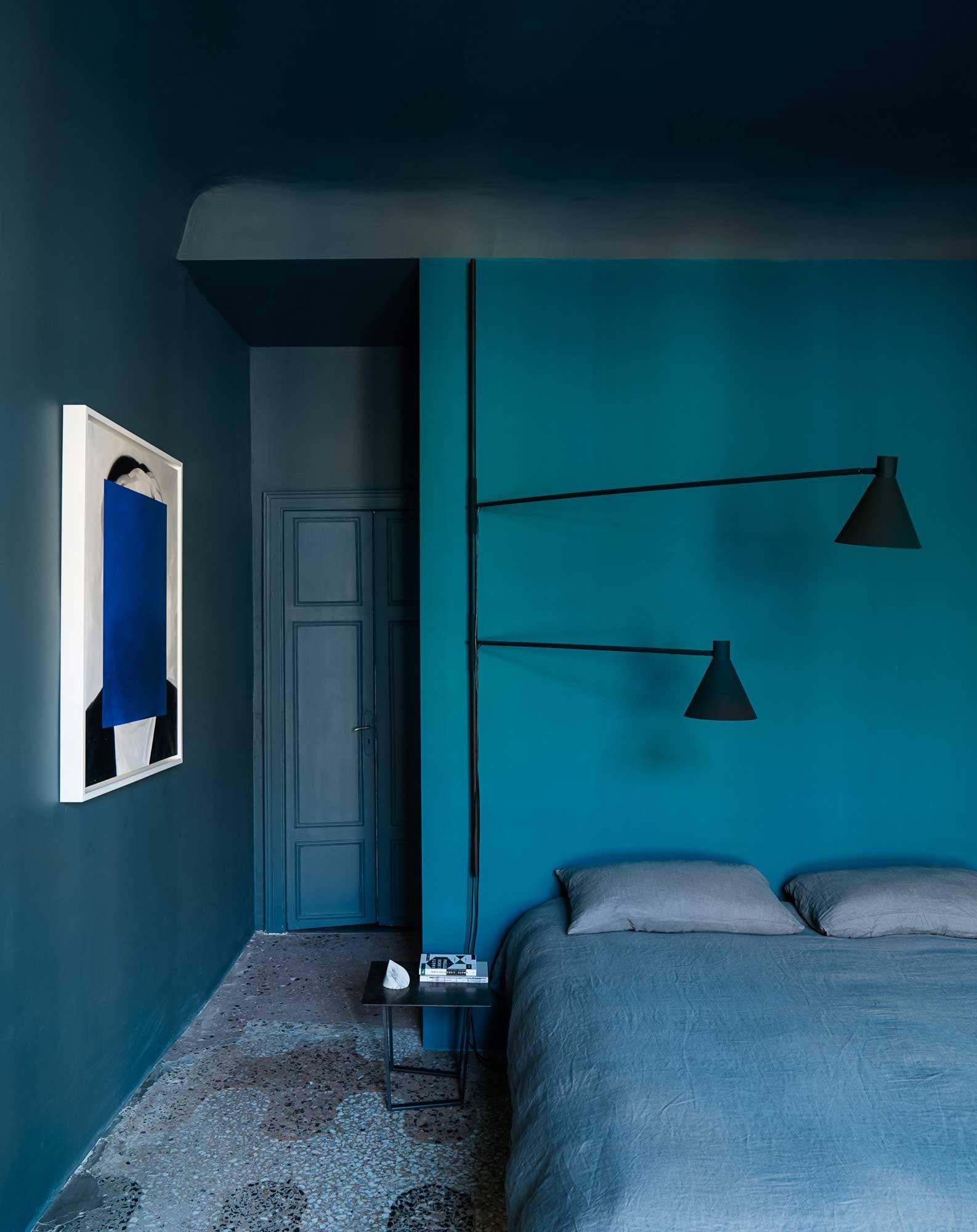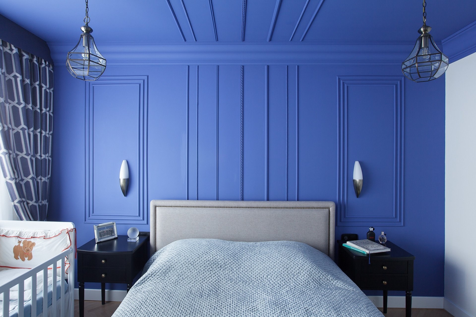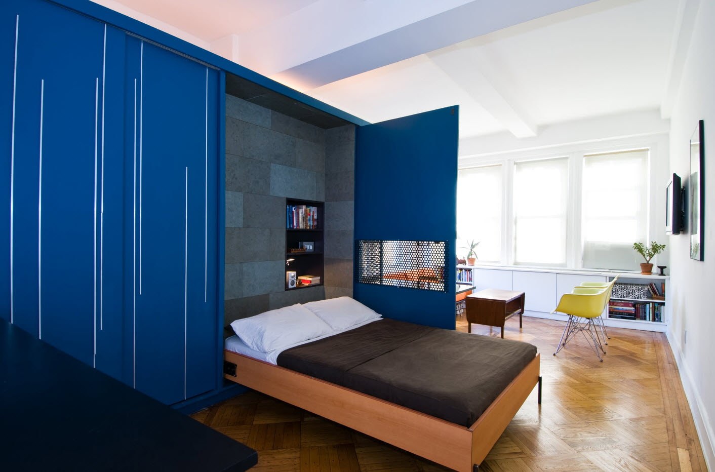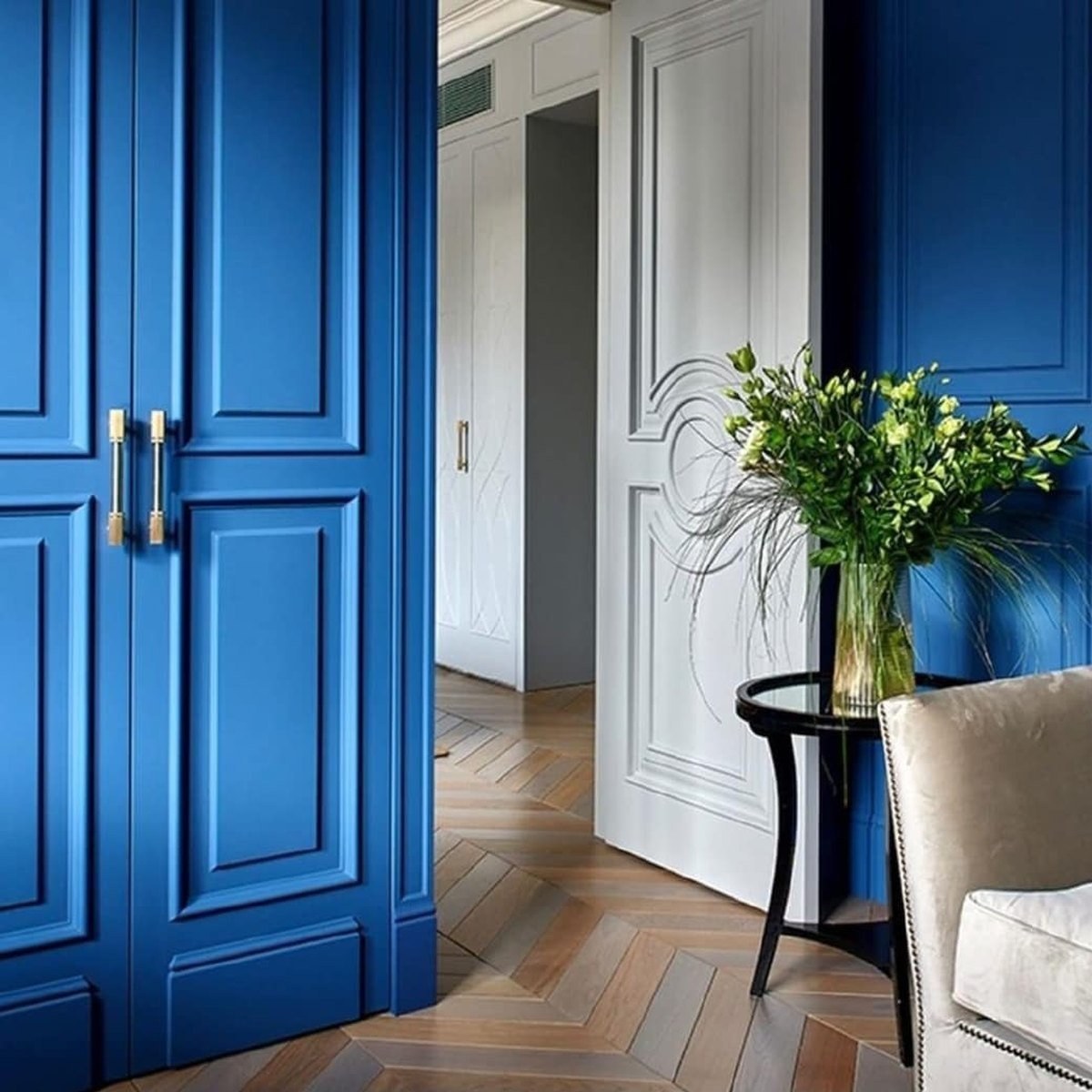 Шкаф с жалюзийными дверцами в интерьере спальни
