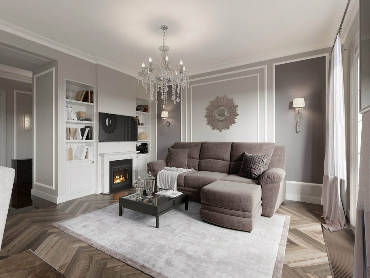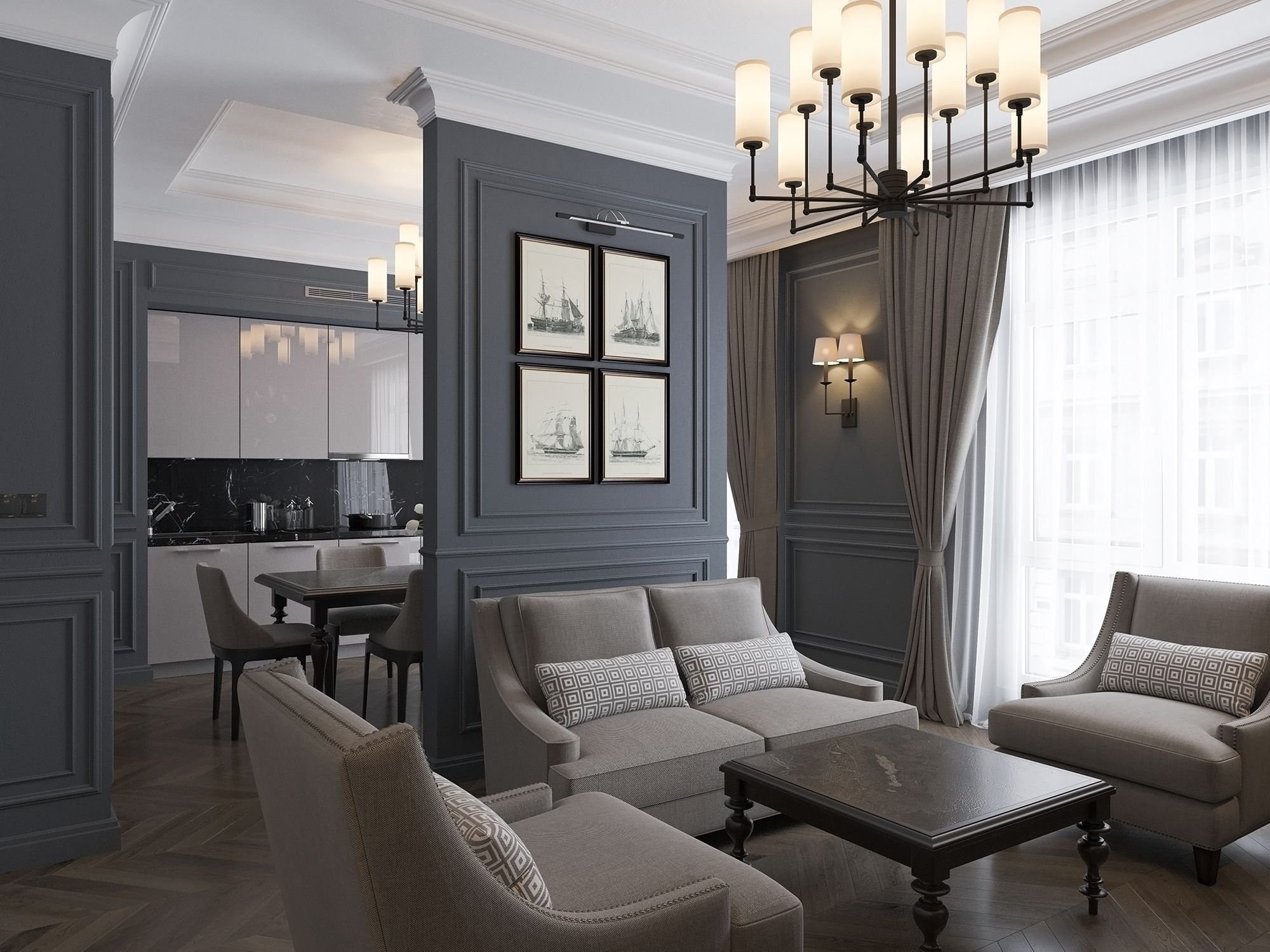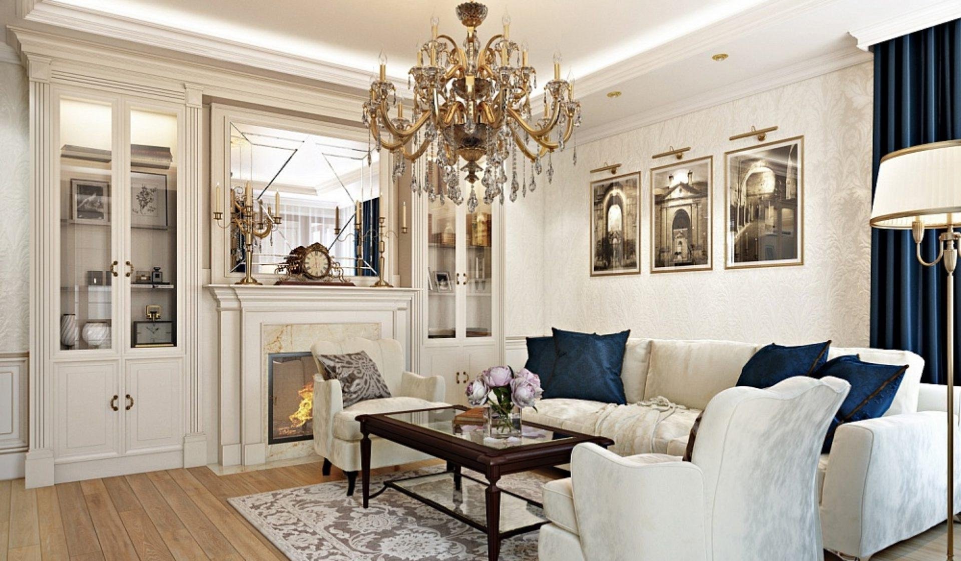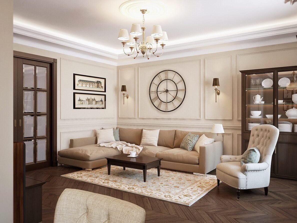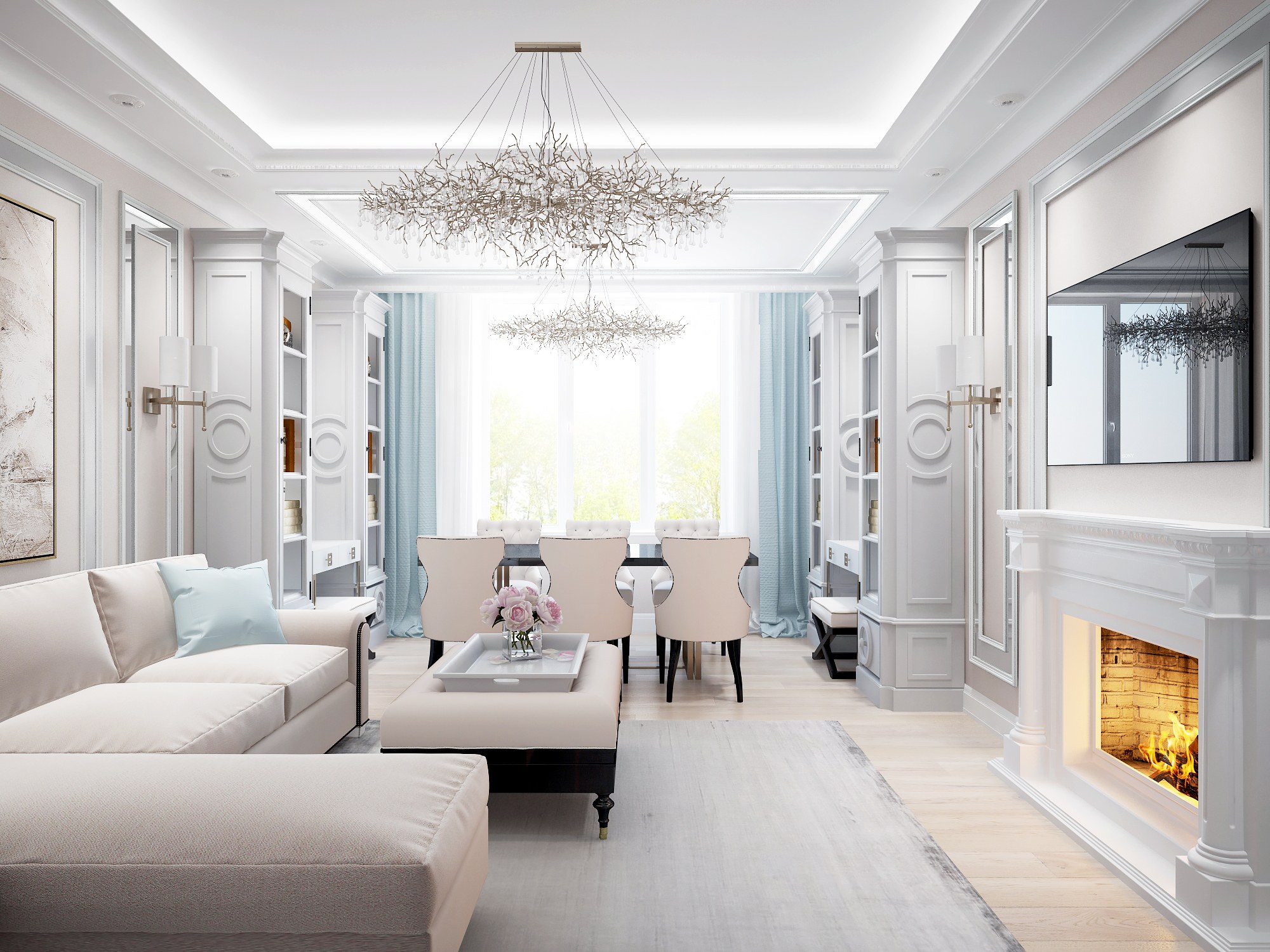 Линкруста в интерьере гостиной в стиле Неоклассика