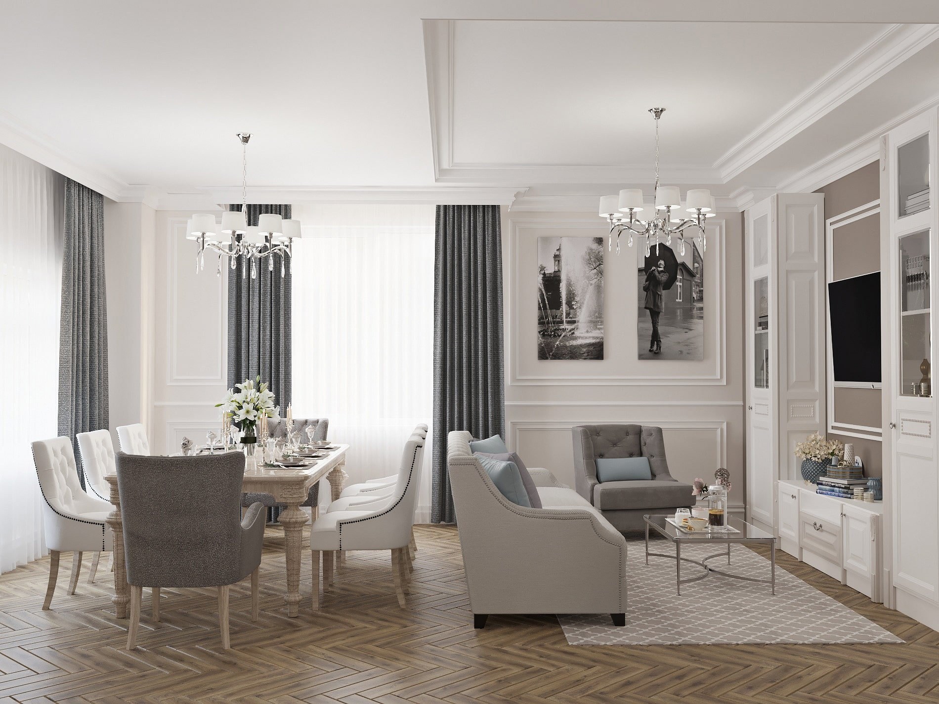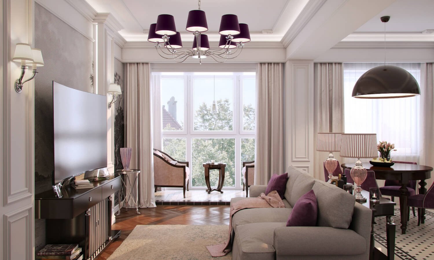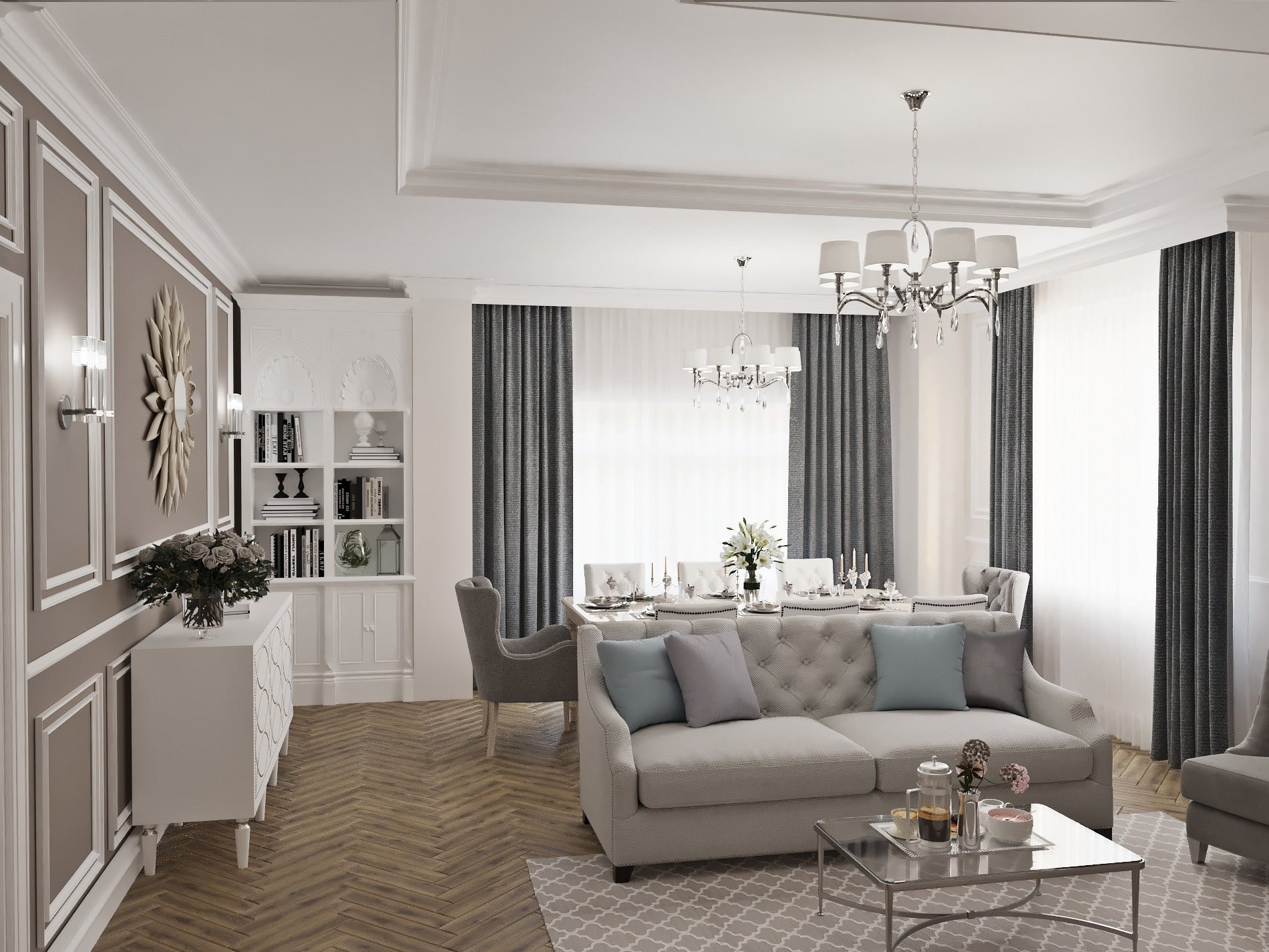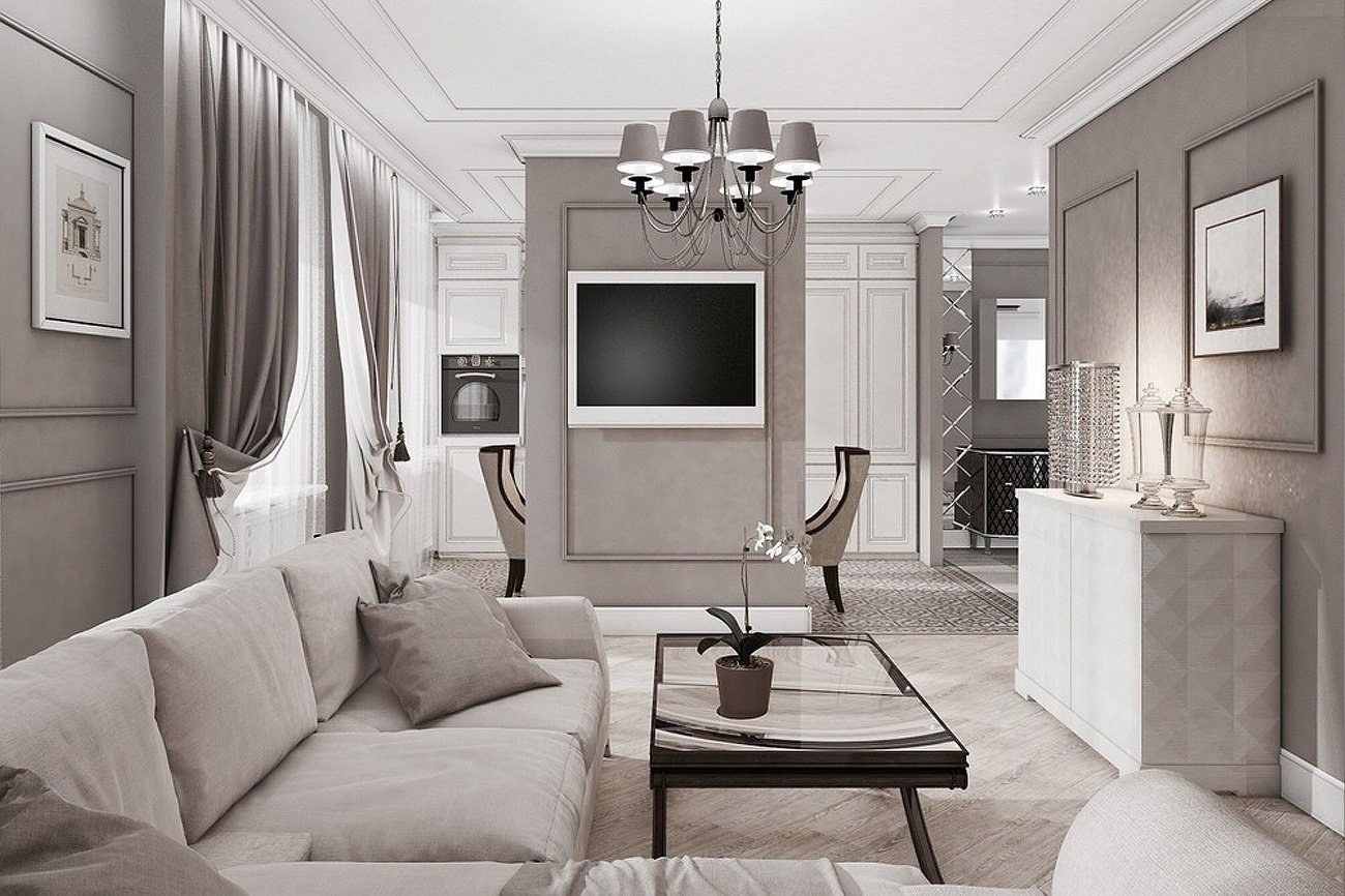 Линкруста в интерьере гостиной в стиле Неоклассика