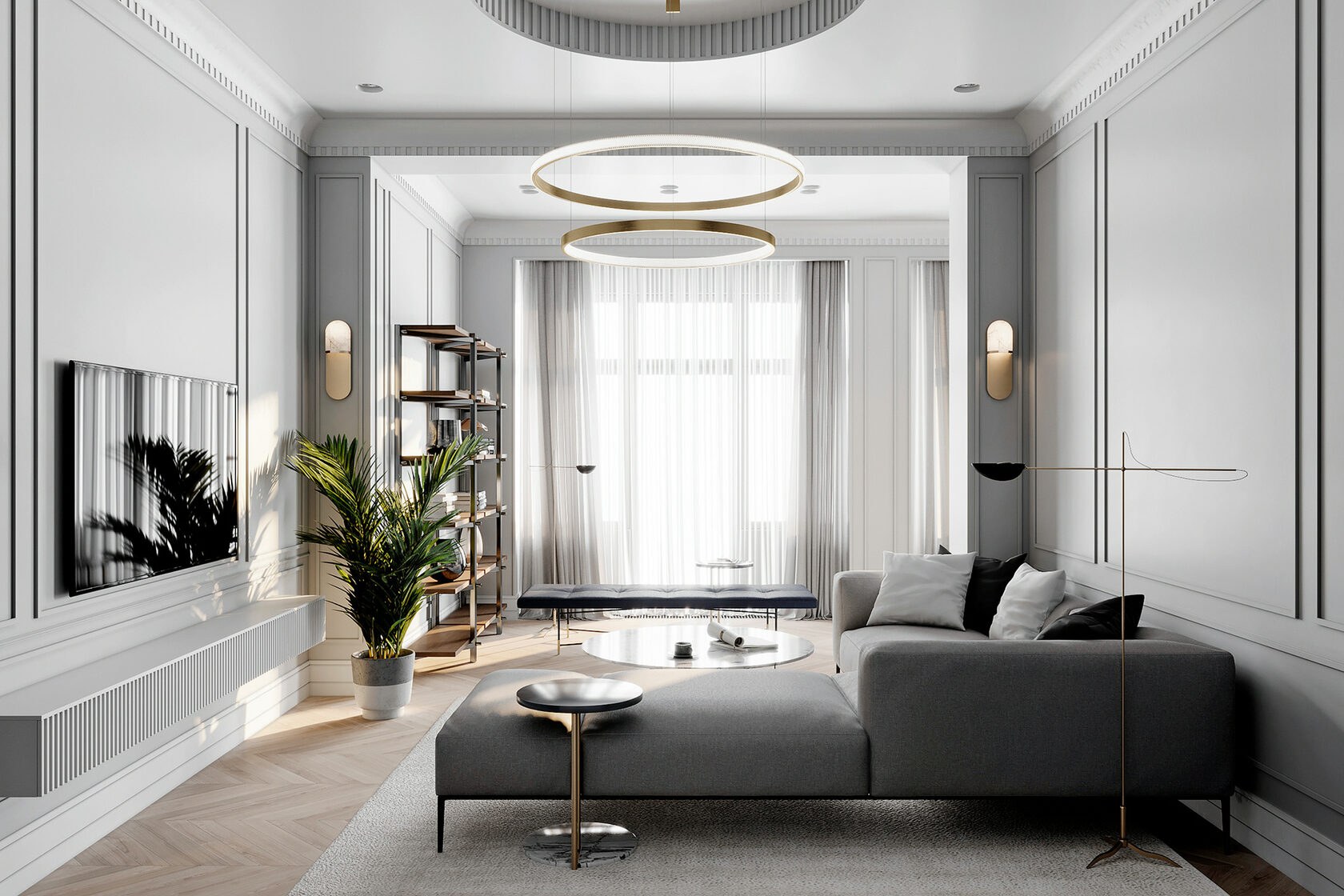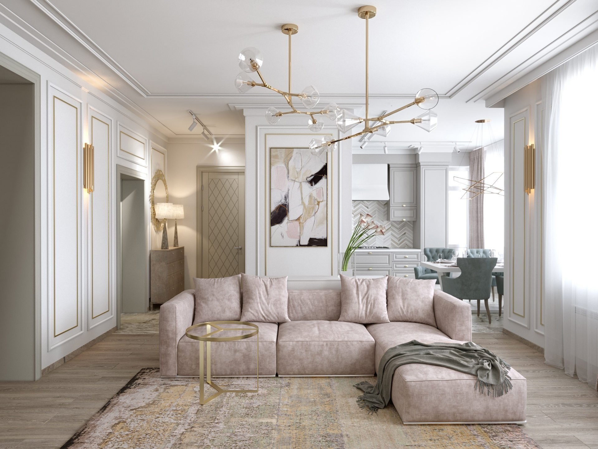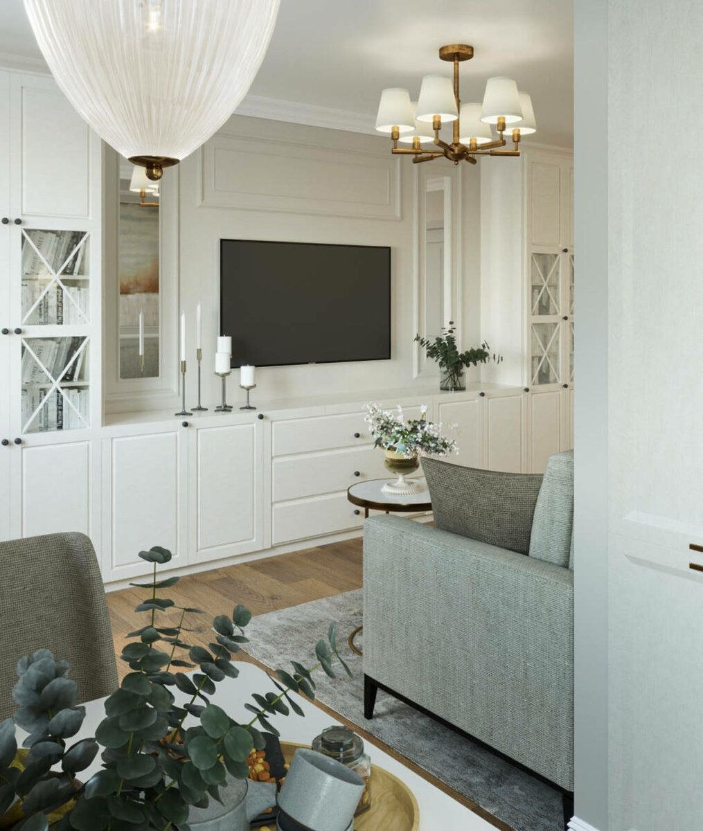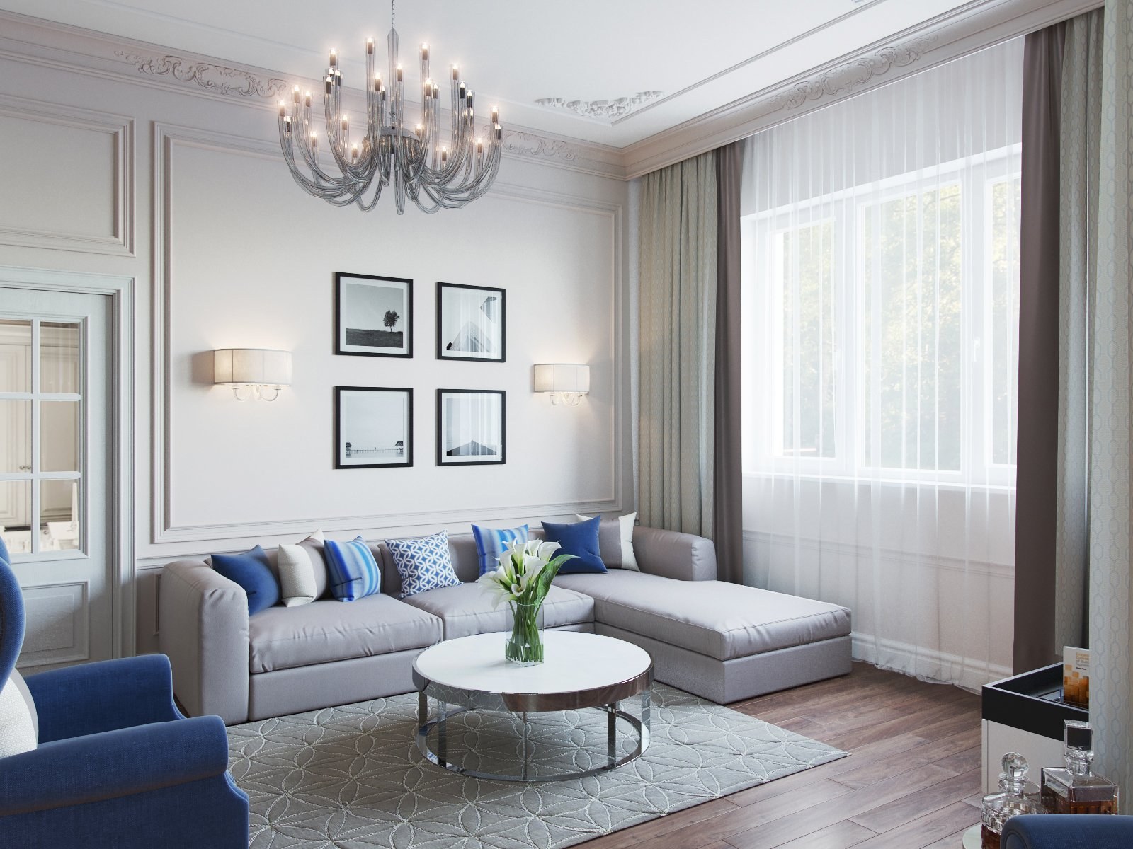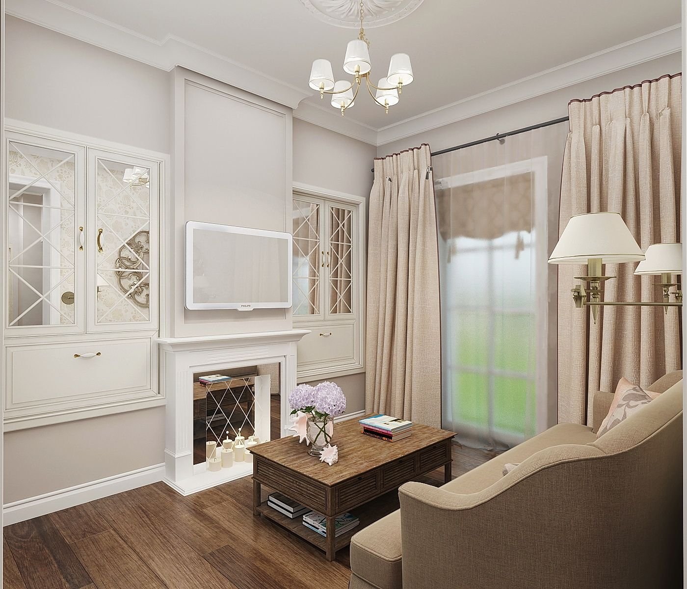 Линкруста в интерьере гостиной в стиле Неоклассика