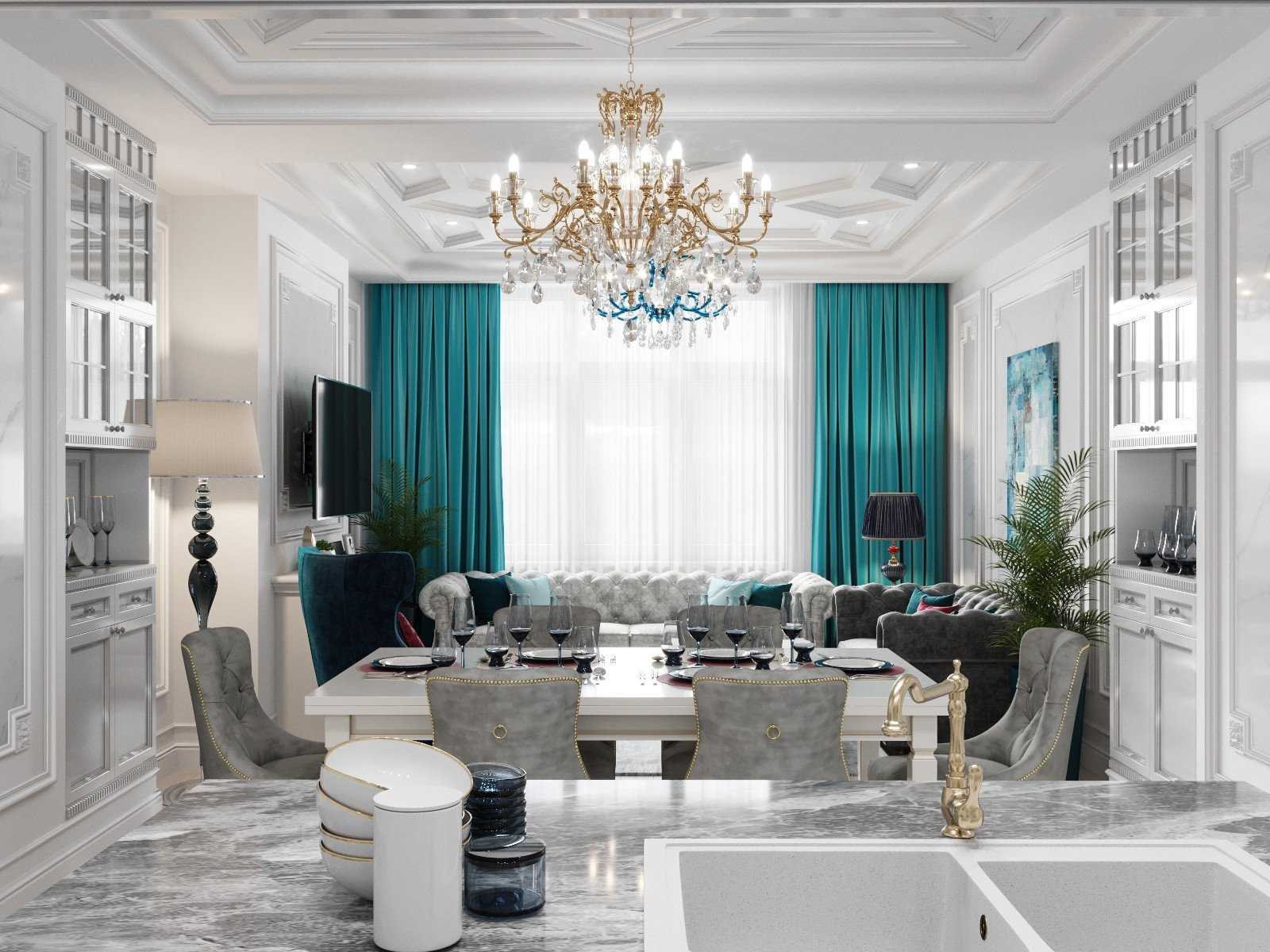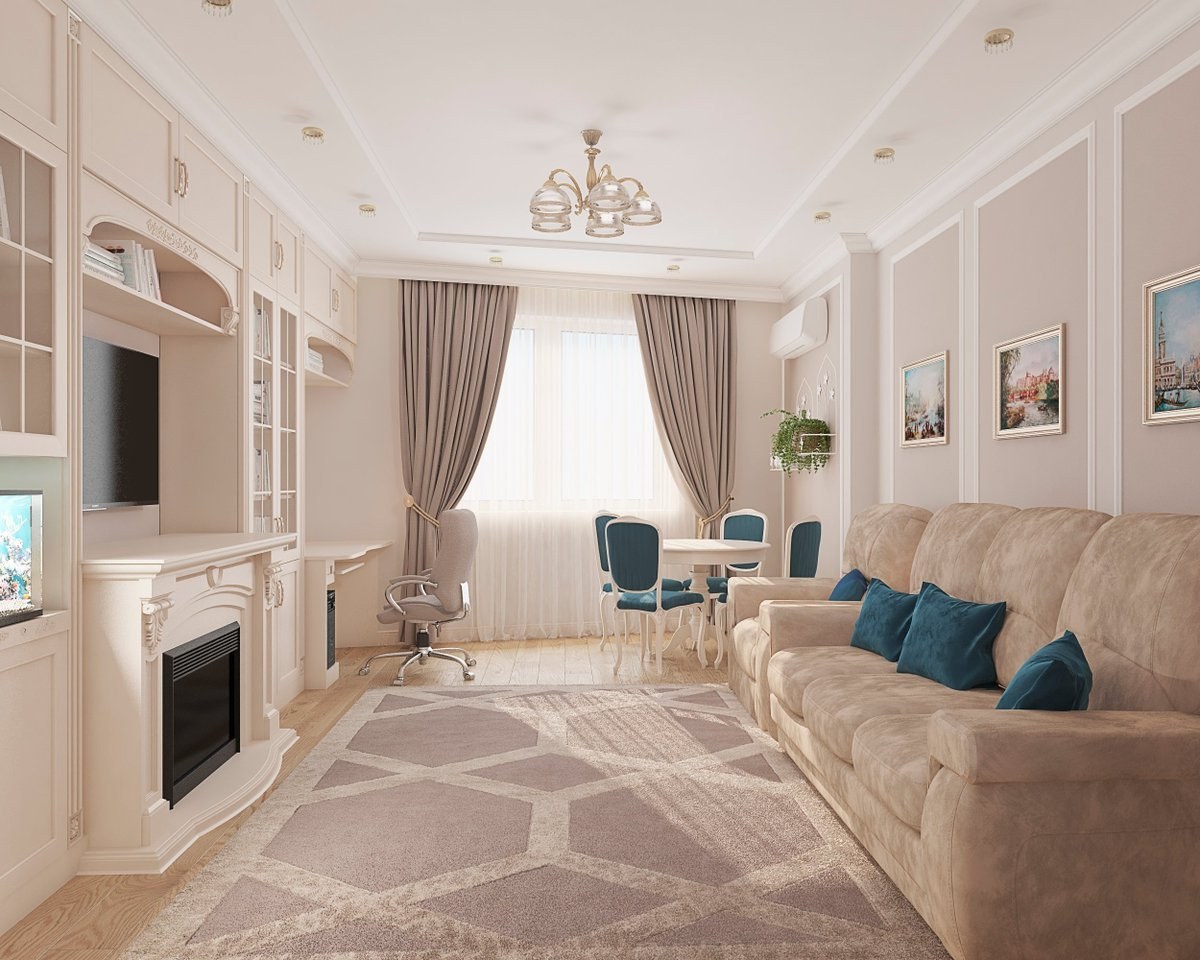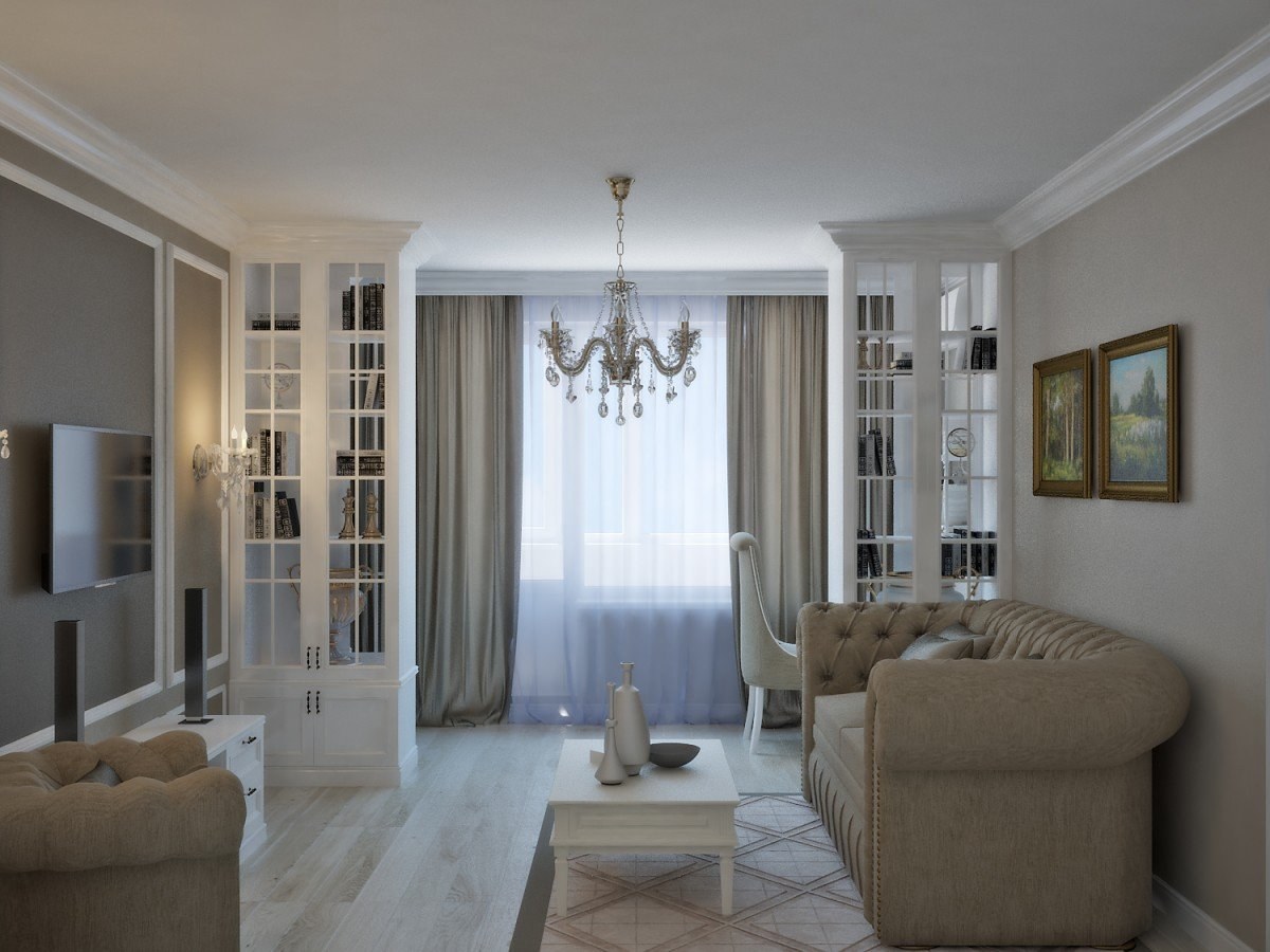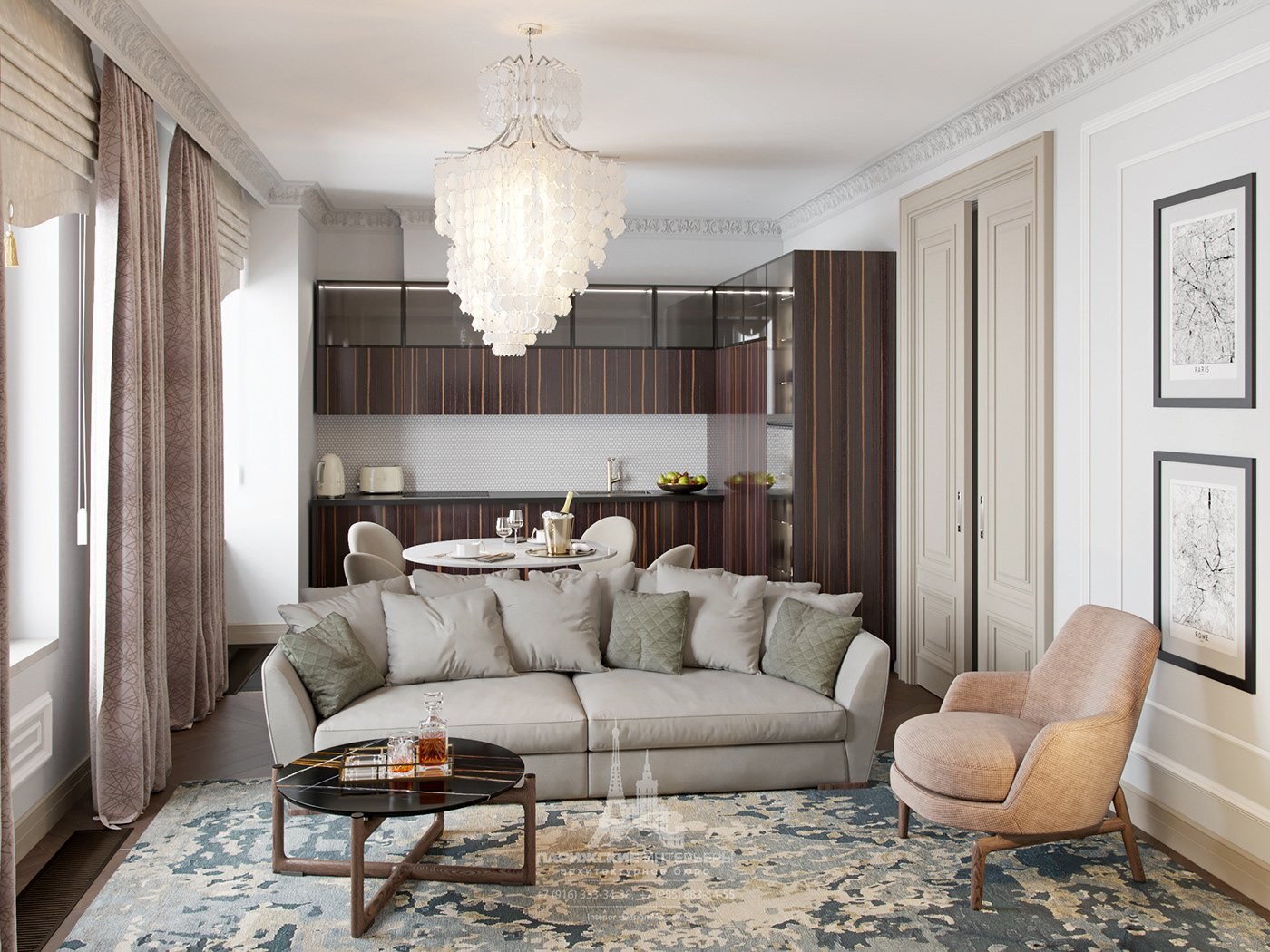 Линкруста в интерьере гостиной в стиле Неоклассика