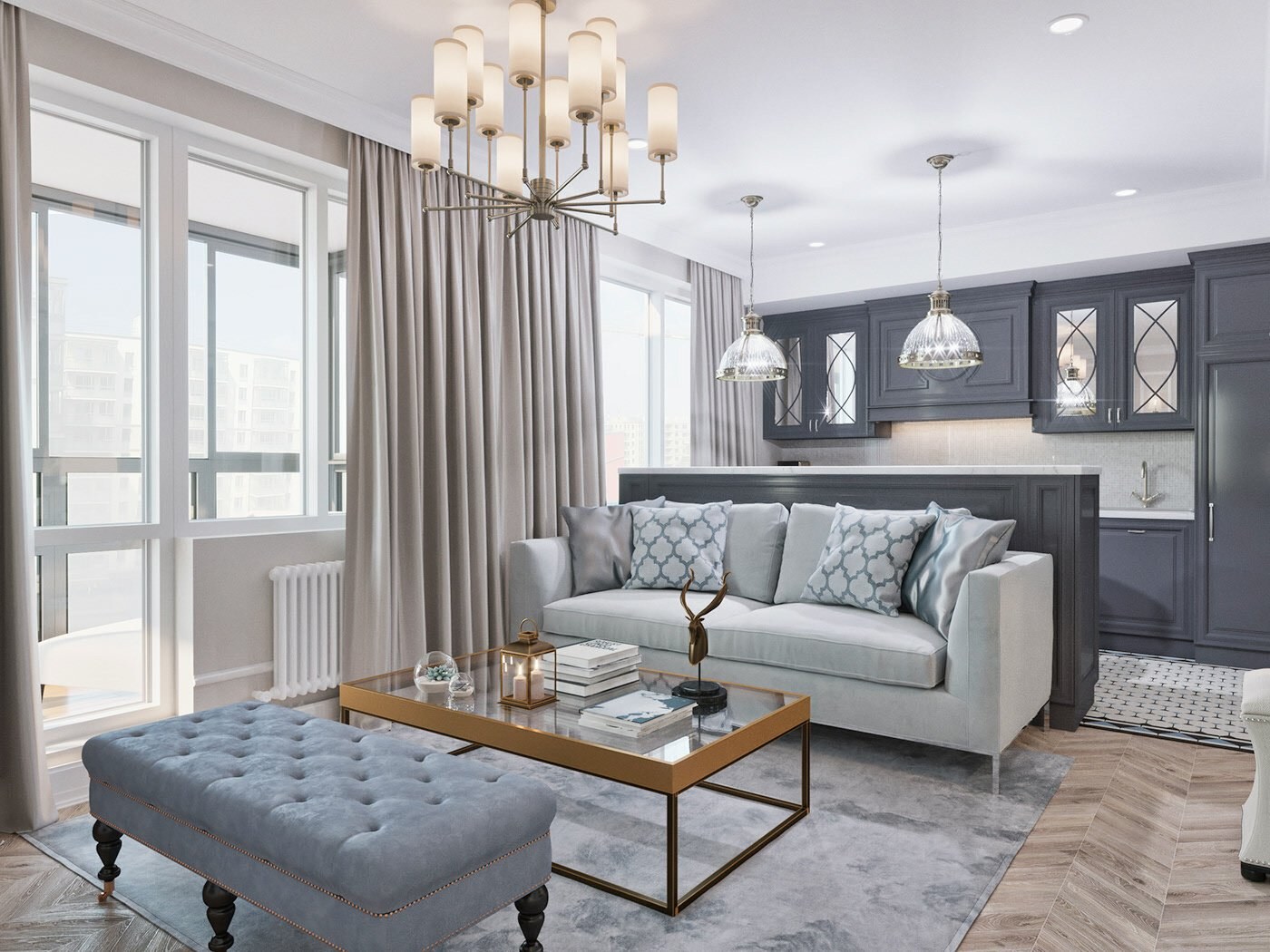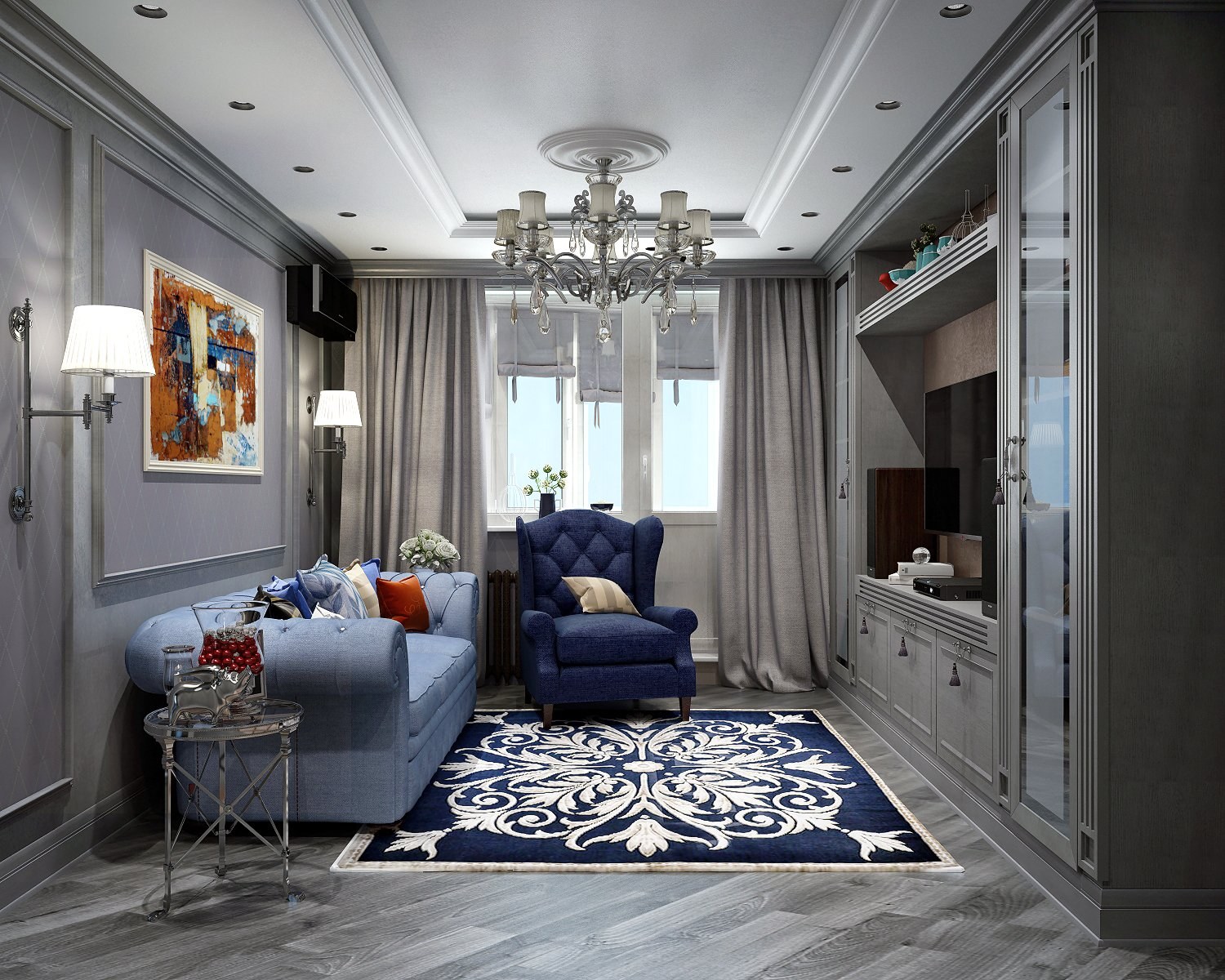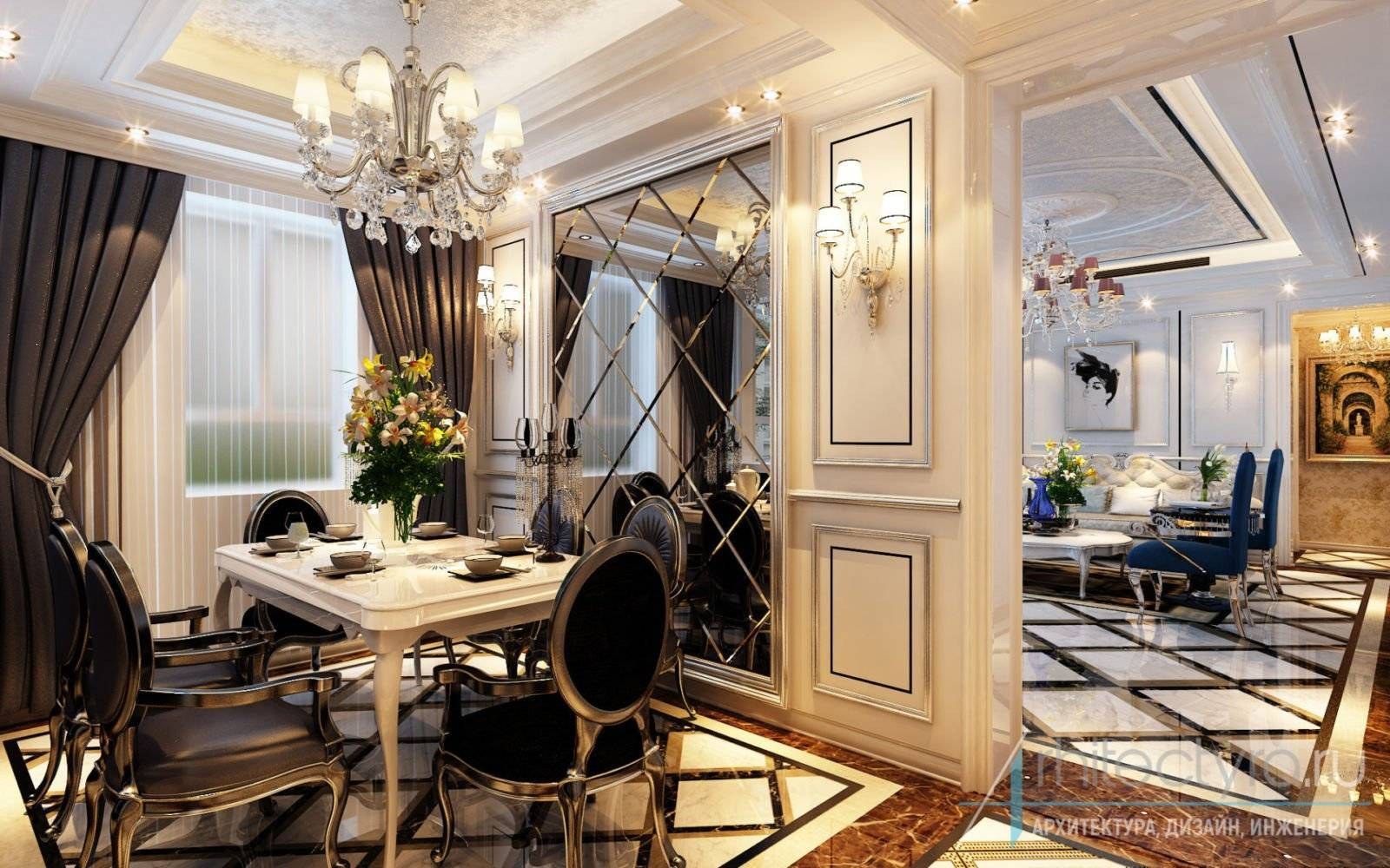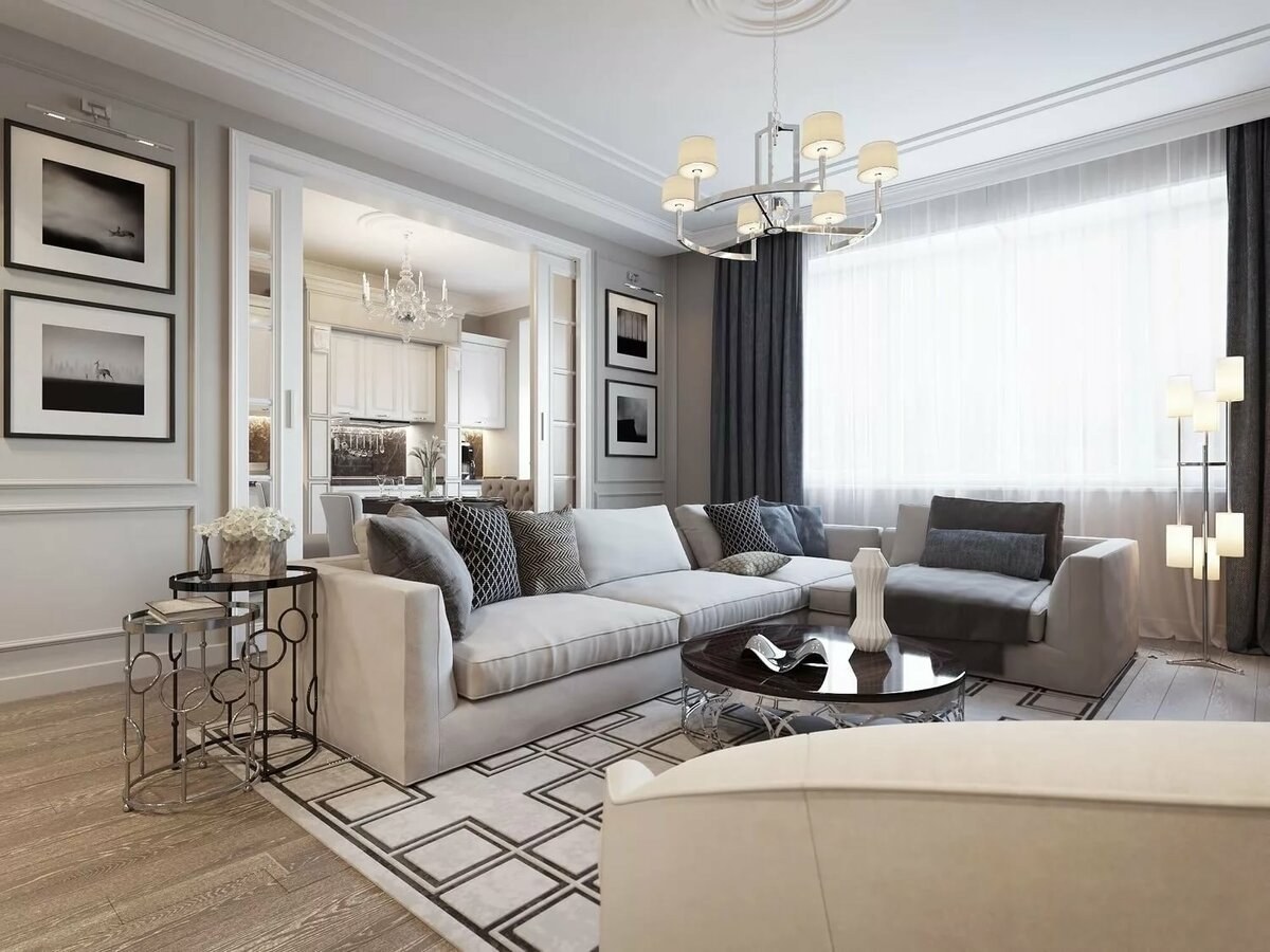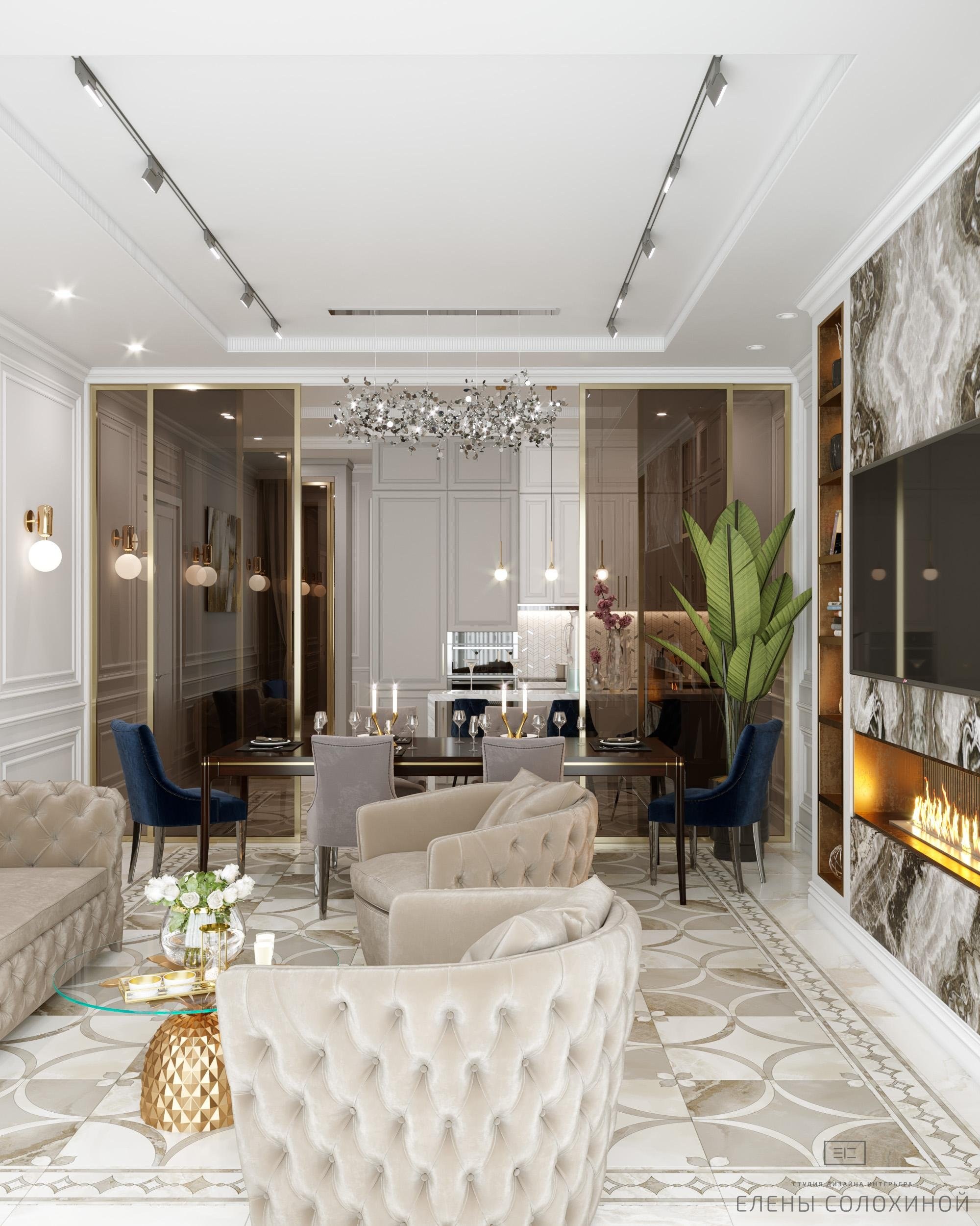 Линкруста в интерьере гостиной в стиле Неоклассика