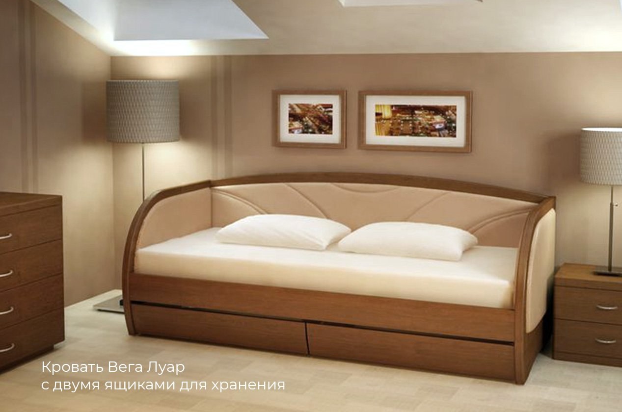 Сигма-кровать бокс 90/2 с ящиками дуб молочный