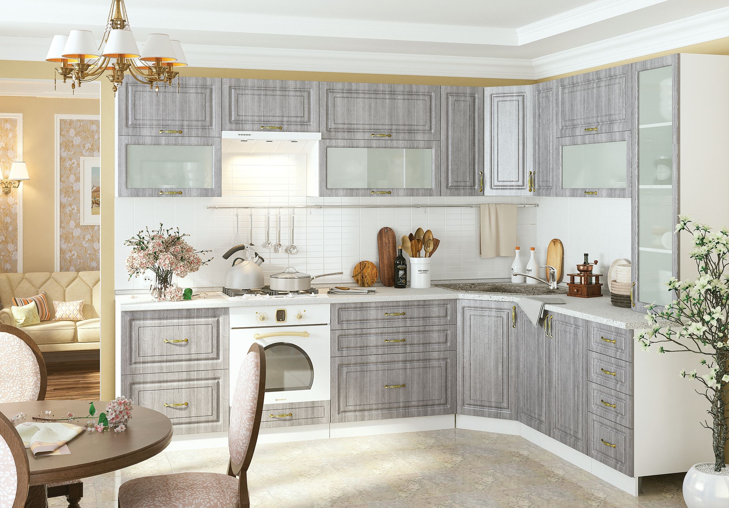 Кухня Прованс Сандал серый Сандал белый