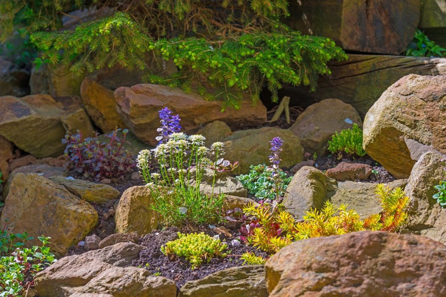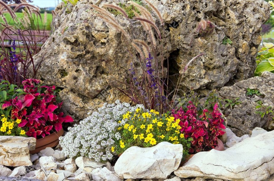 Альпийская горка из камней и цветов