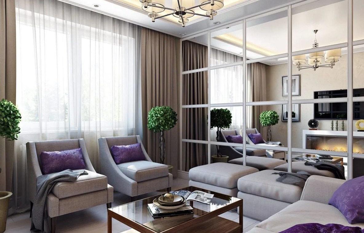 Гостиная с зеркальной стеной