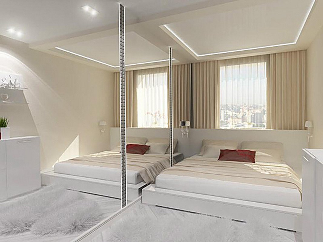 Интерьер узкой спальни