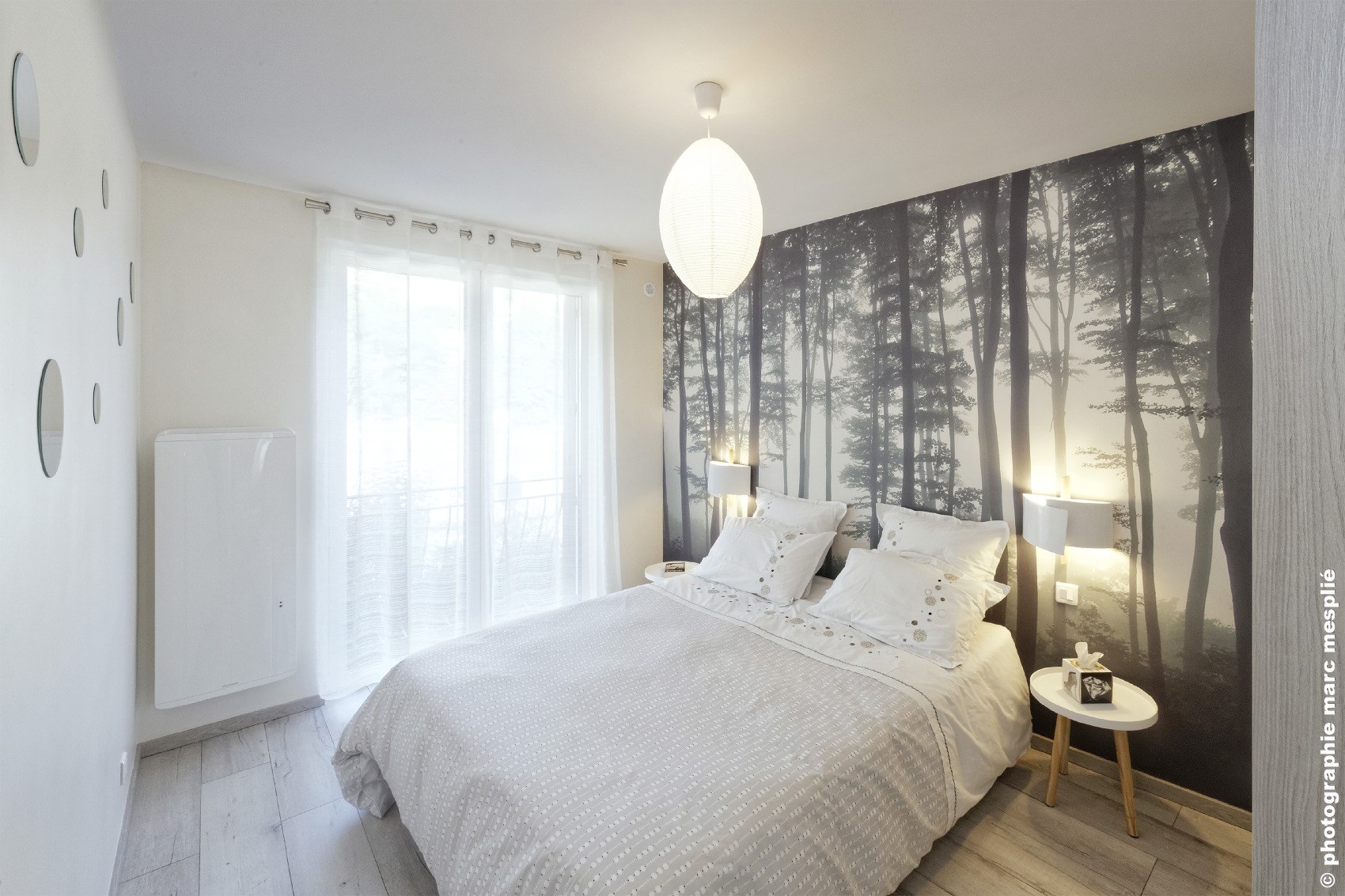 Кровать возле окна в спальне