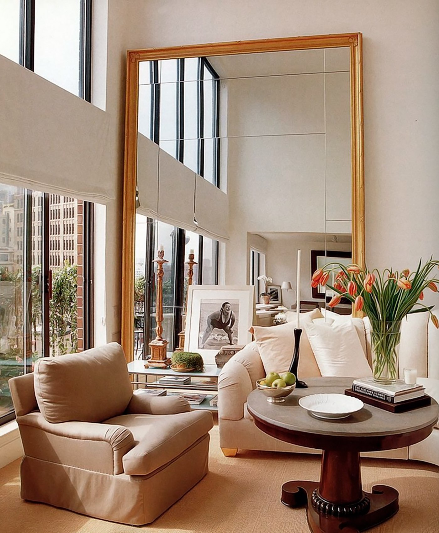 Зеркала в интерьере гостиной для расширения пространства