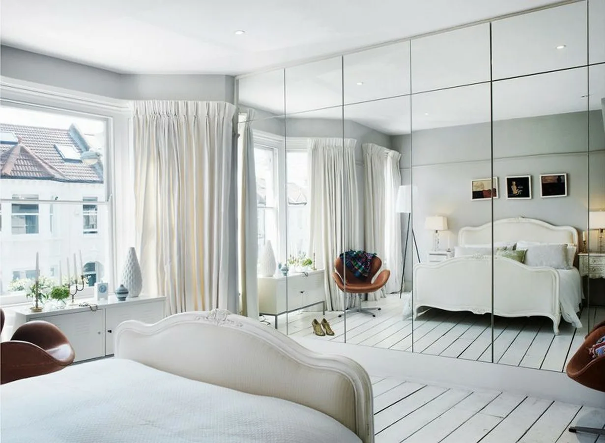 Спальня с большим зеркальным шкафом