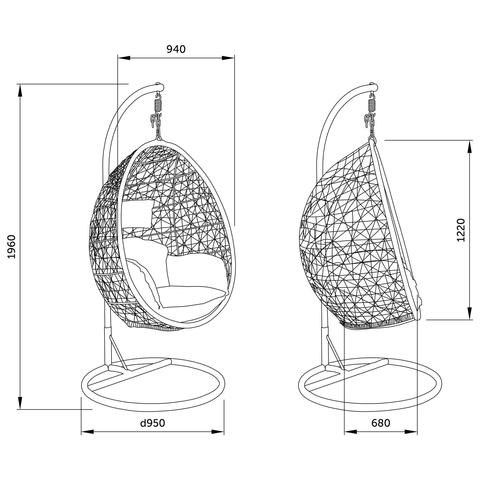 Кресло кокон чертеж
