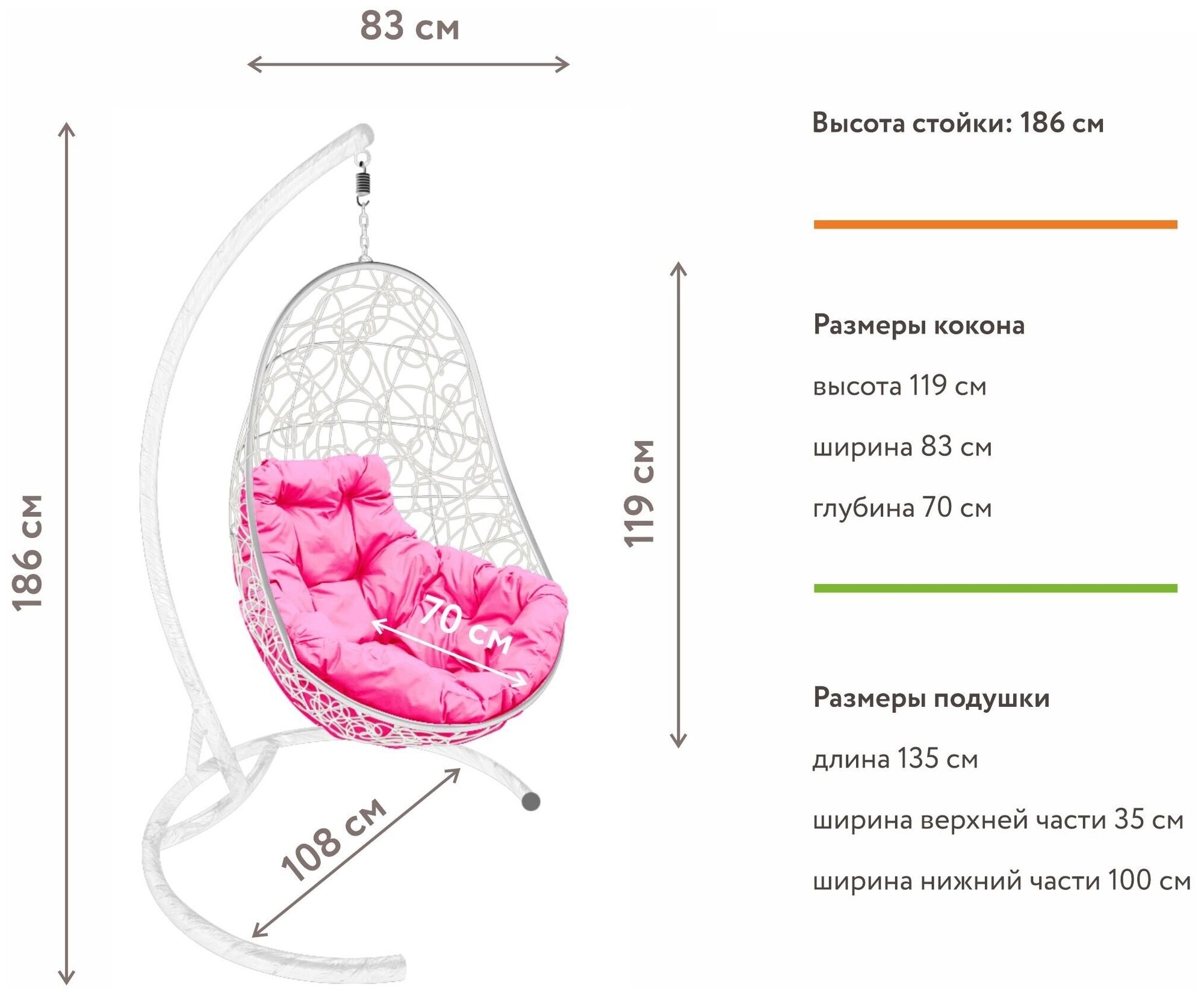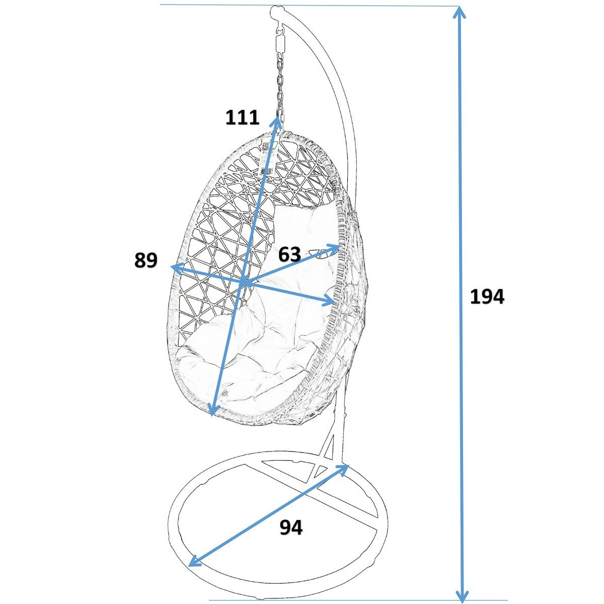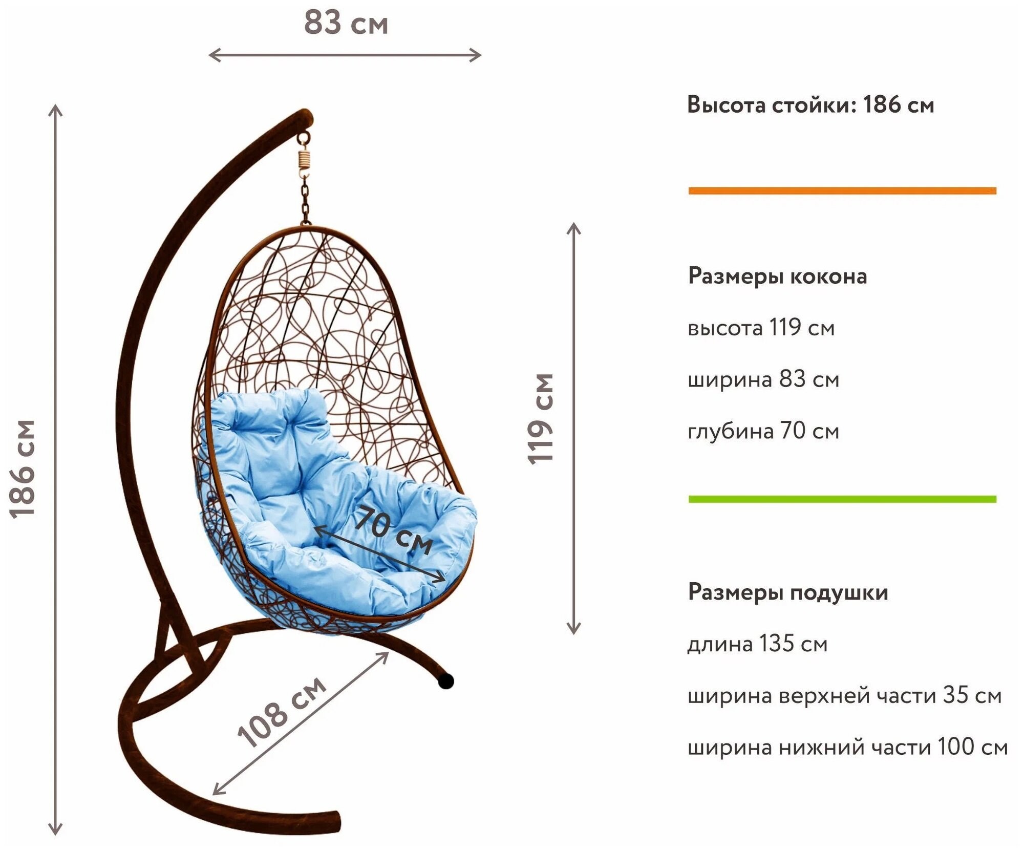 Габариты подвесного кресла кокона