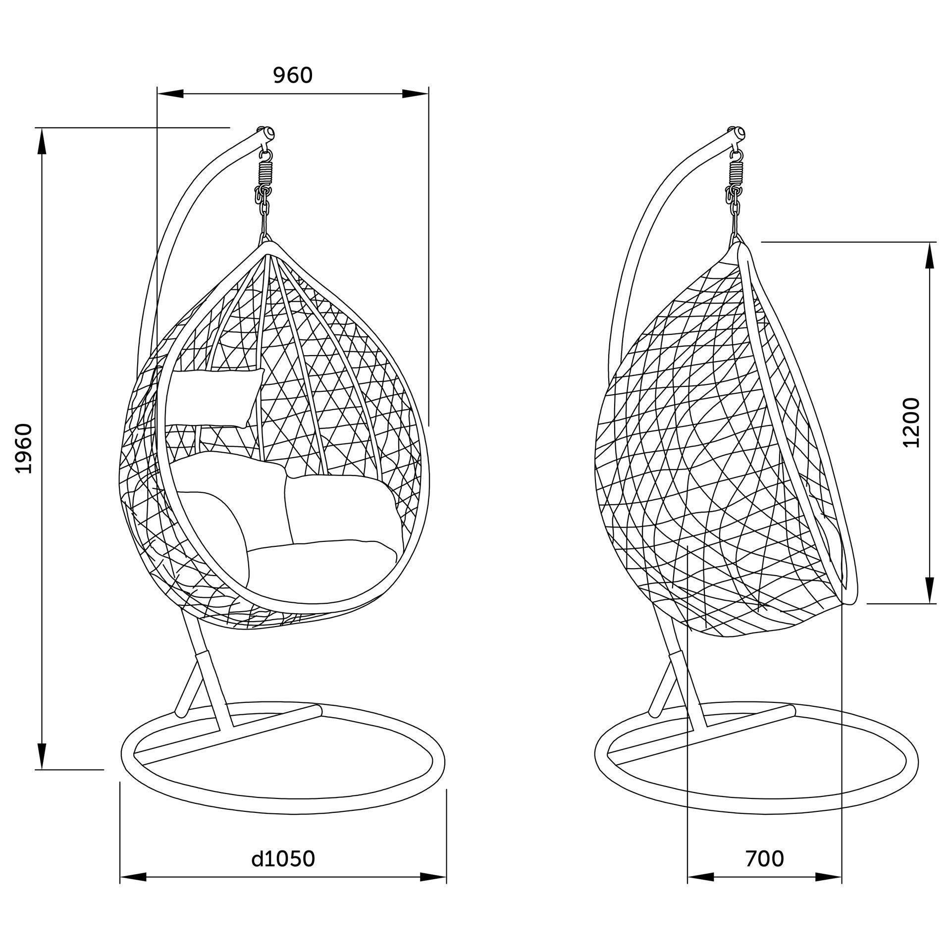 Кресло качеля подвесная чертеж