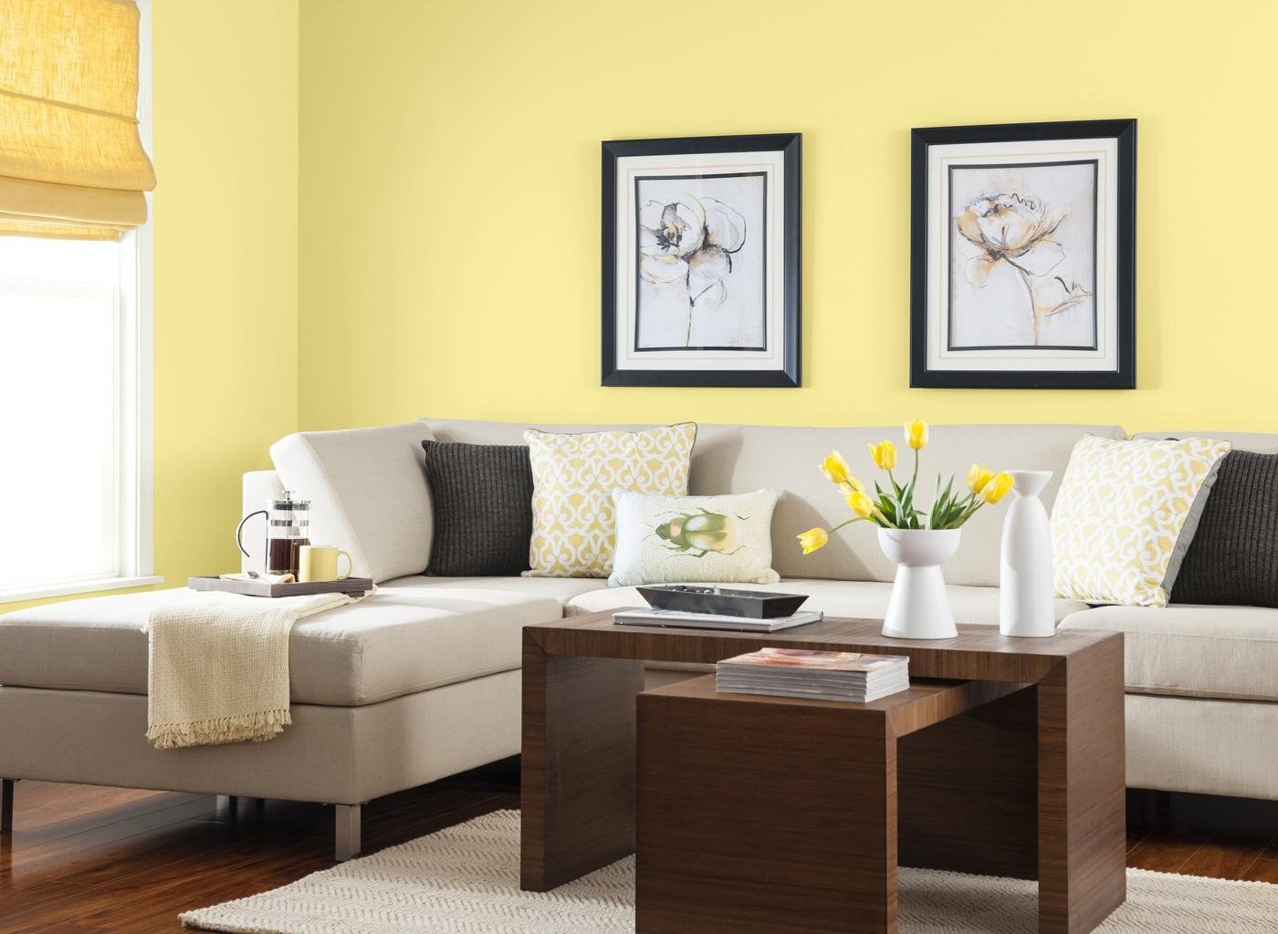 Светло желтые стены в интерьере