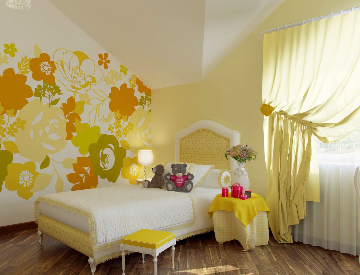 Детская комната с желтыми стенами