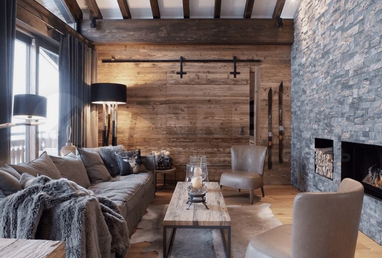 Интерьер гостиной в стиле Шале