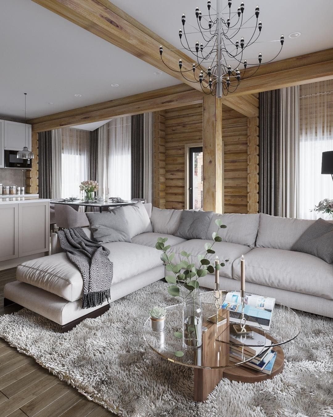 Интерьер сруба в современном стиле