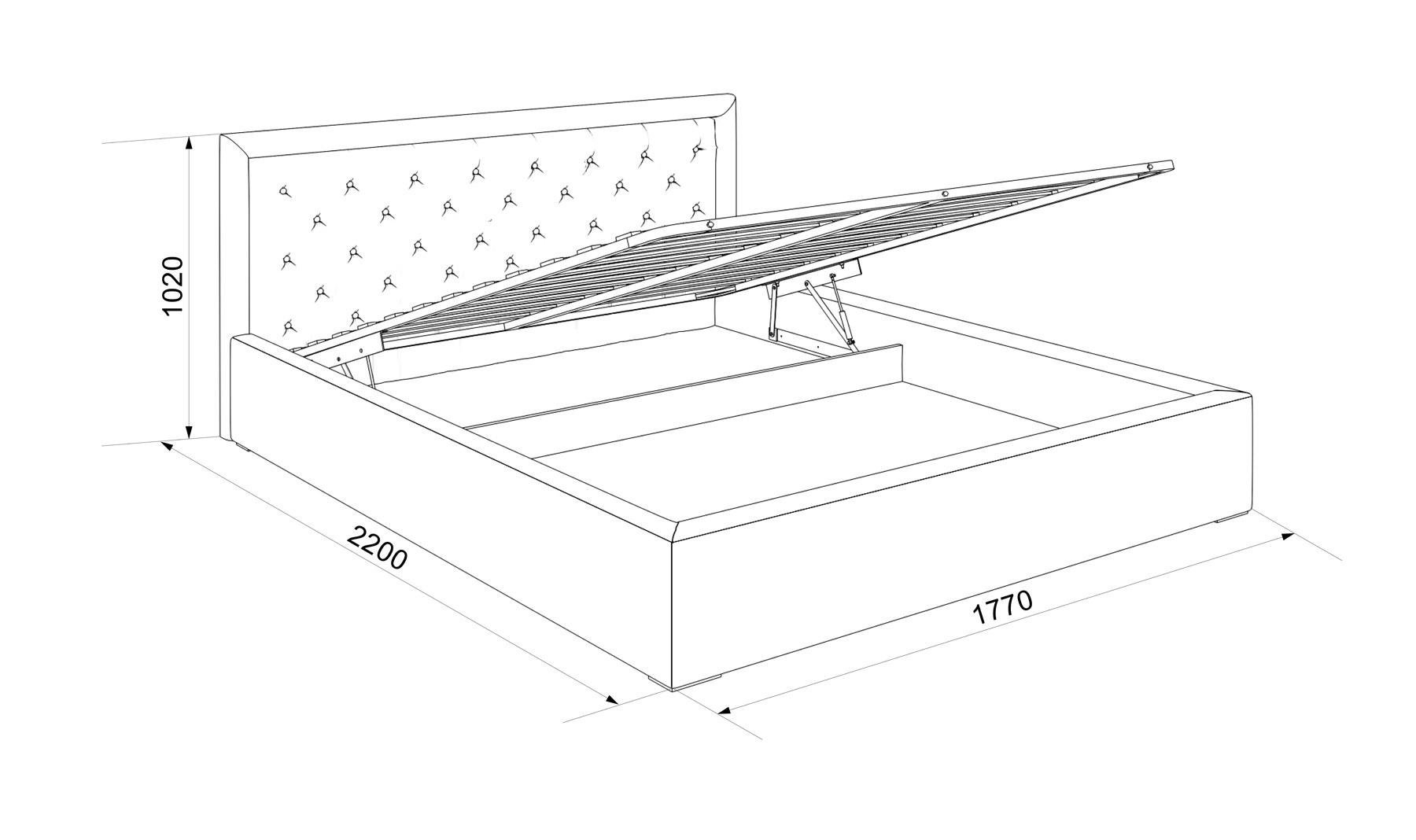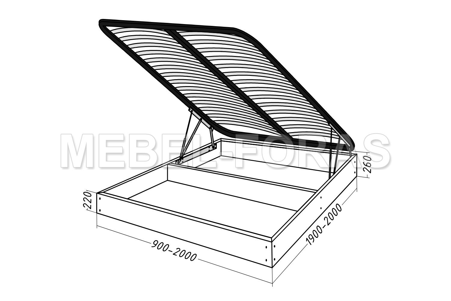 Габариты каркаса для основания кровати с подъемным механизмом 1800*2000