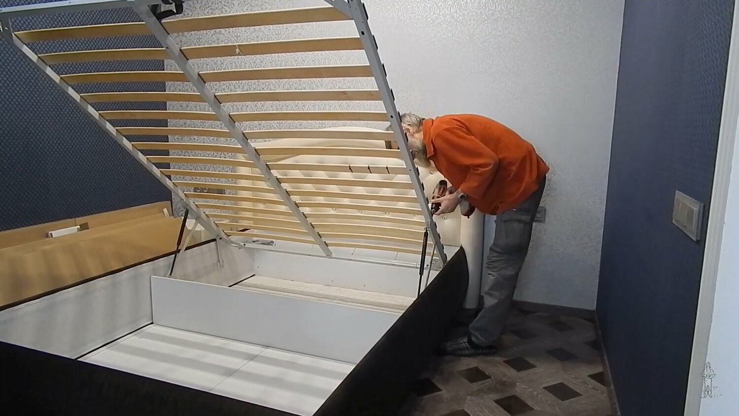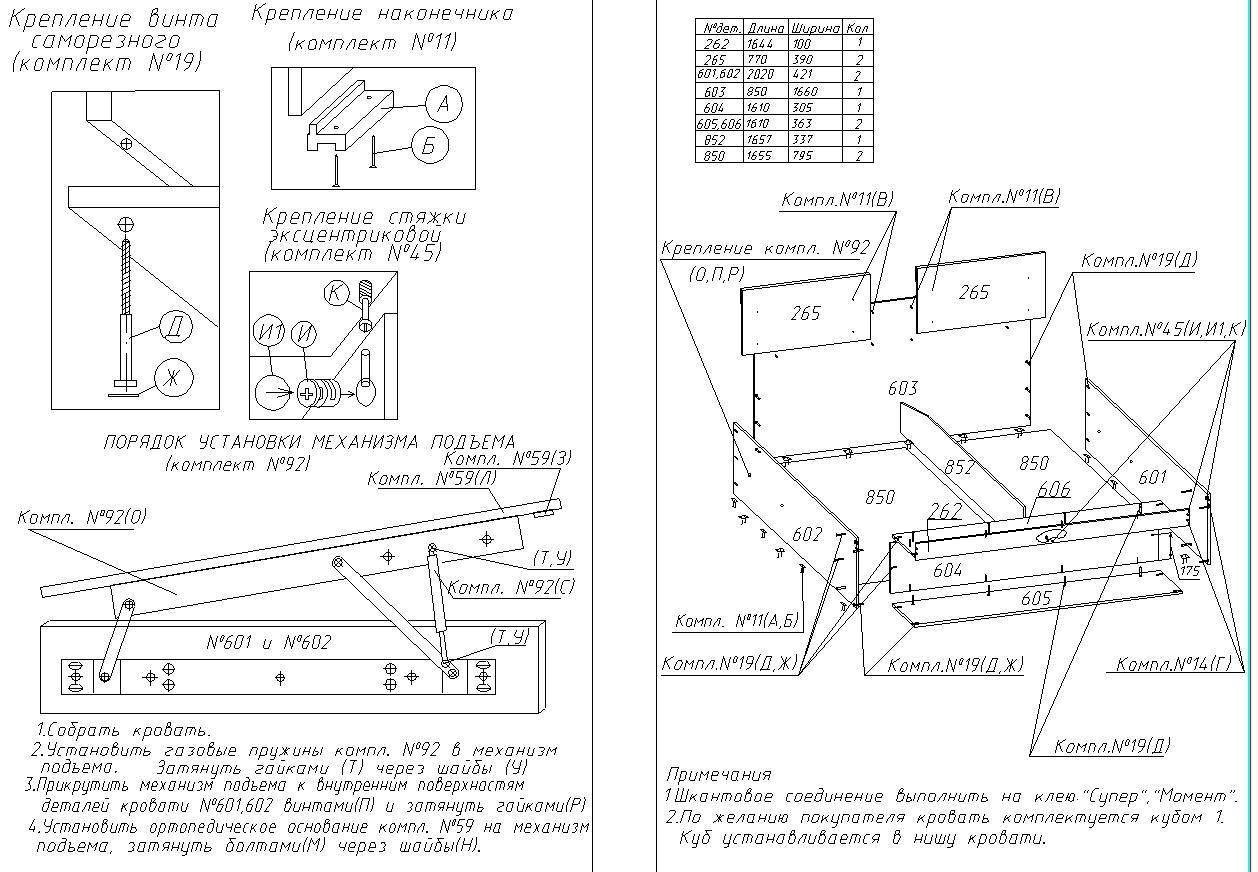 Сборка двуспальной кровати с подъемным механизмом