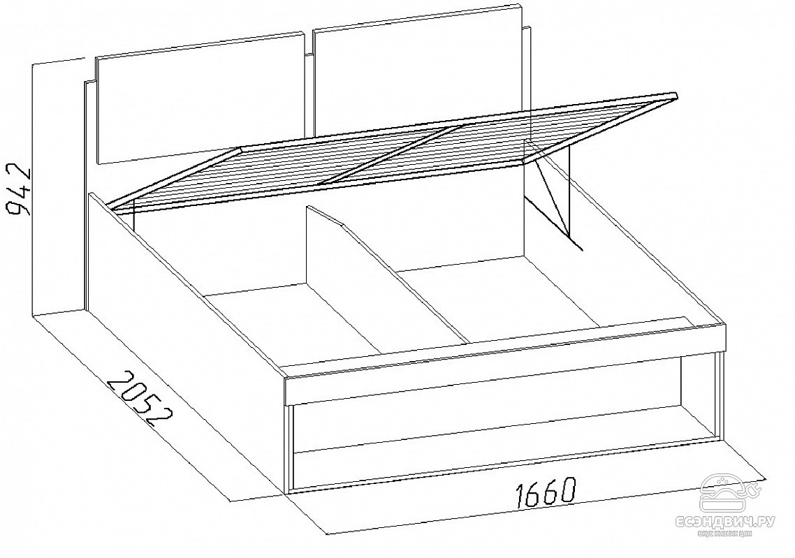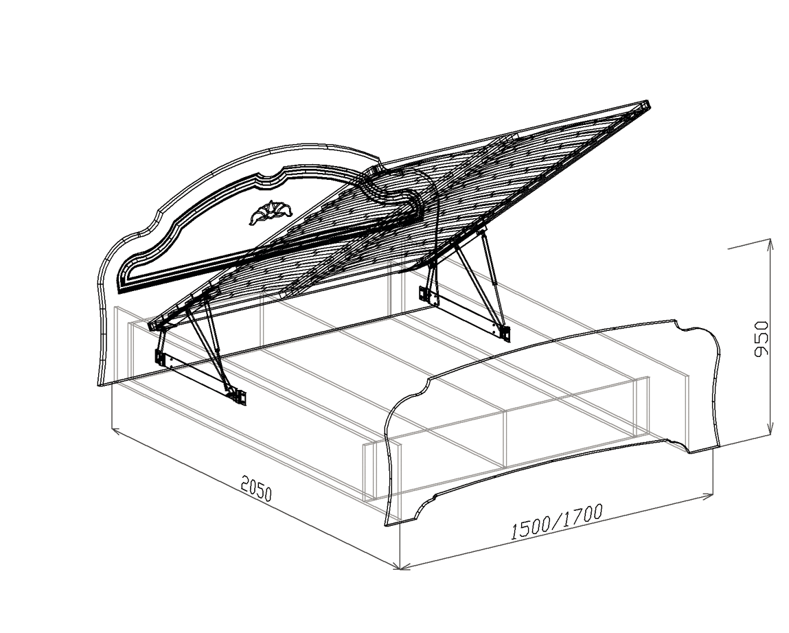Чертеж кровати с подъемным механизмом 160х200 с размерами