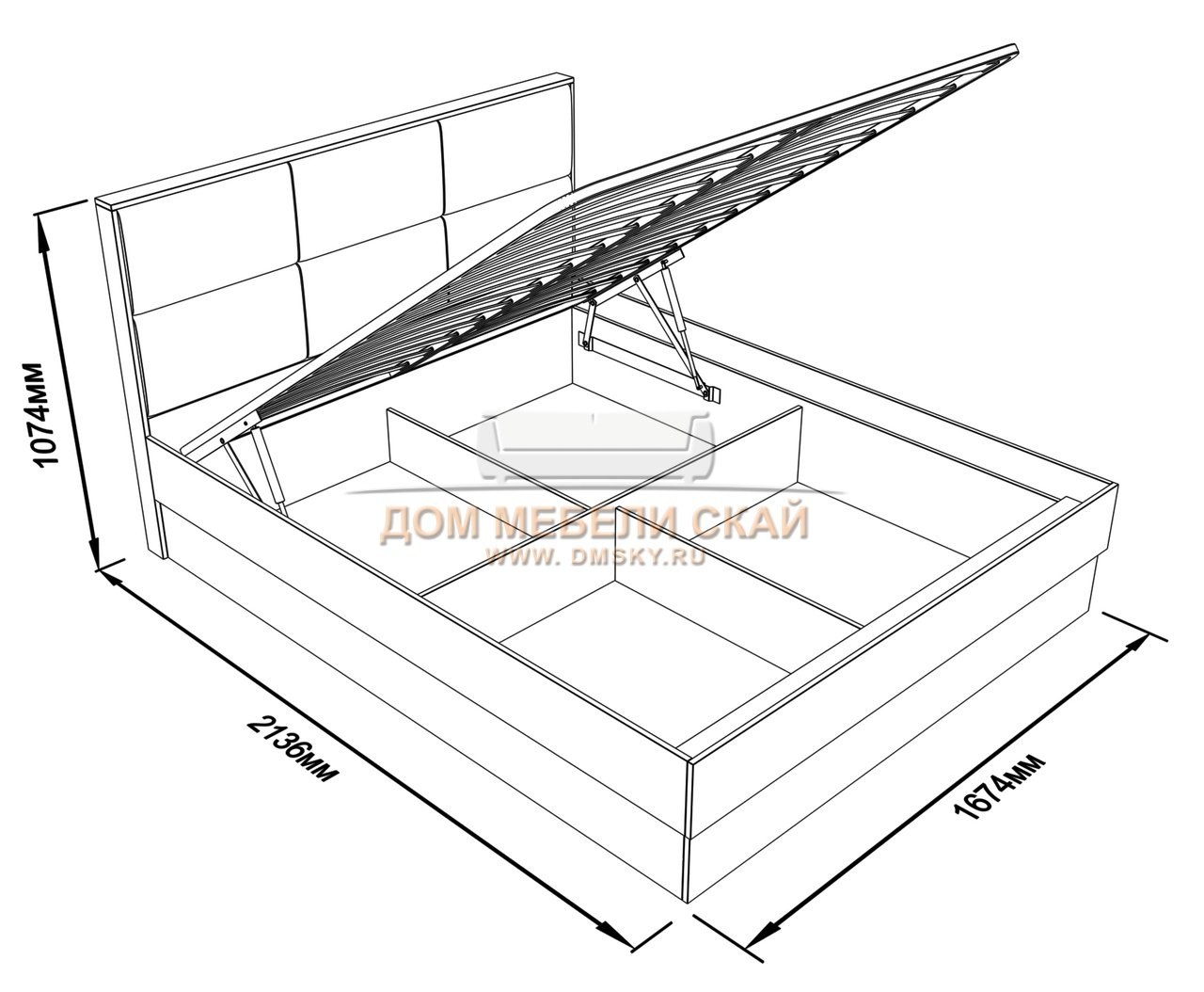 Кровать двуспальная подъемный механизм