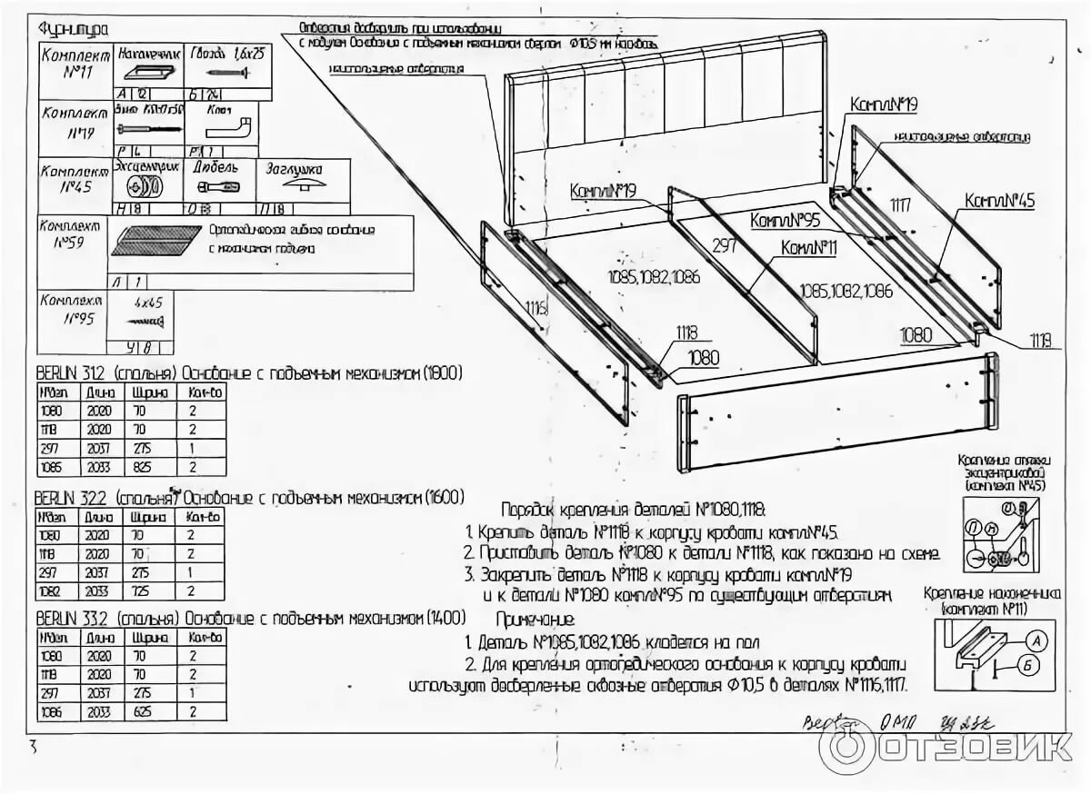 Кровать Соренто 160х200 схема сборки с подъемным механизмом