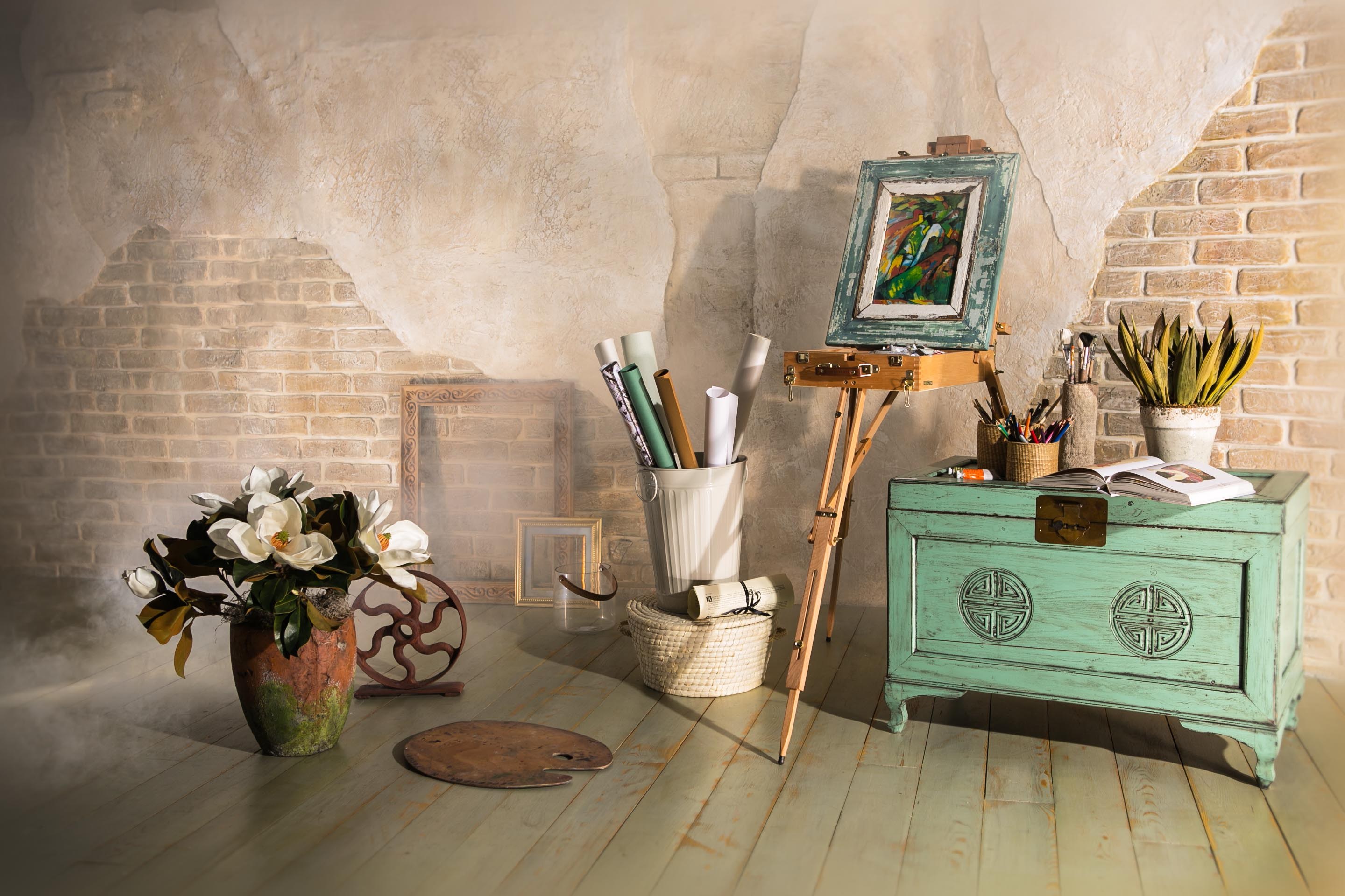 Зеленый сундук в интерьере