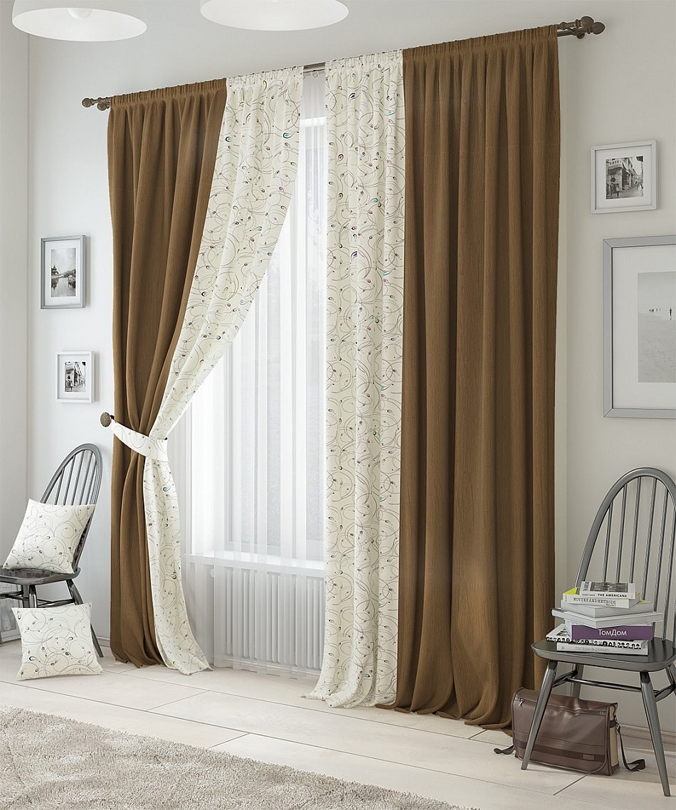 Коричневые шторы в интерьере