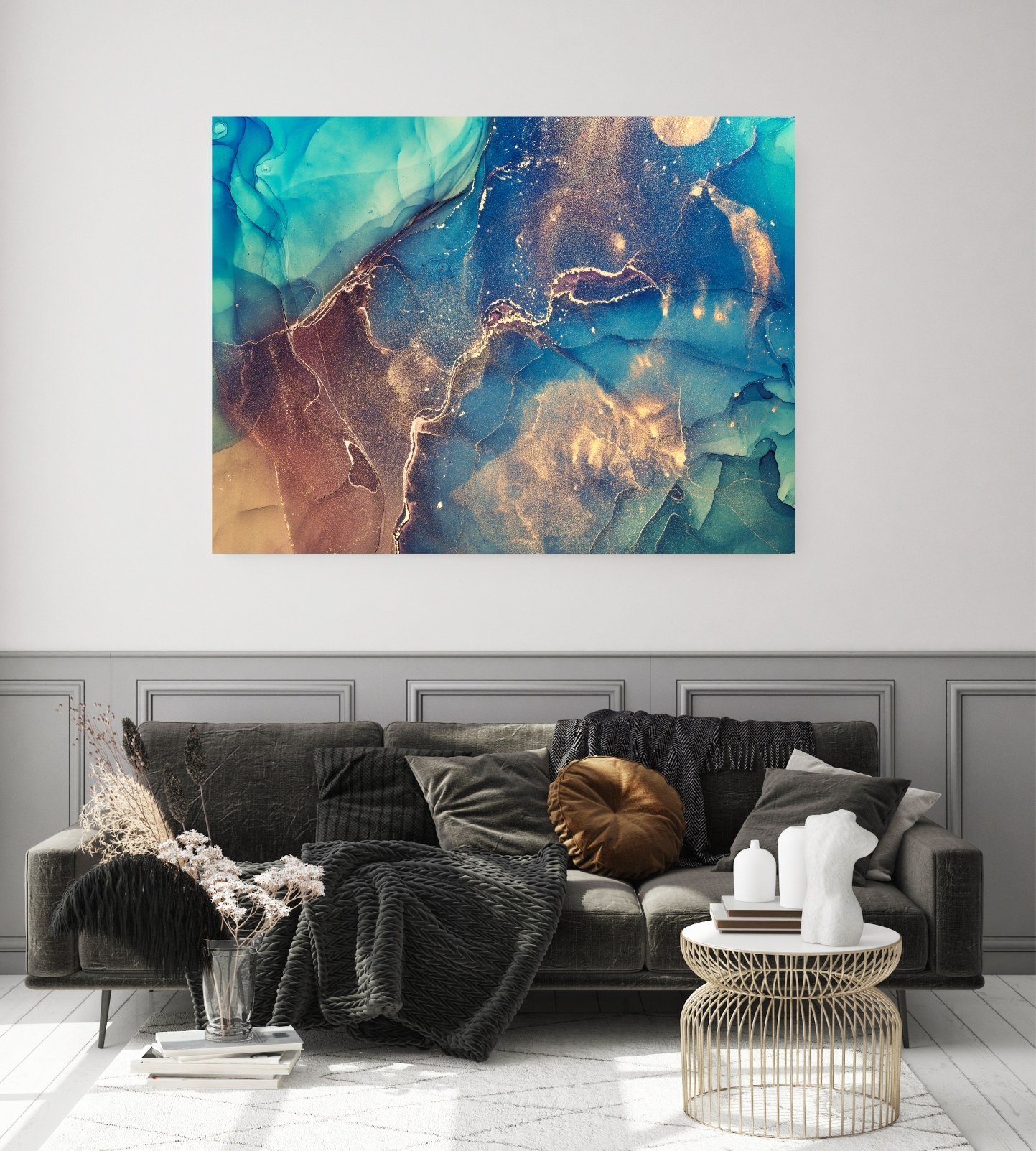 Интерьерная картина флюид арт в интерьере