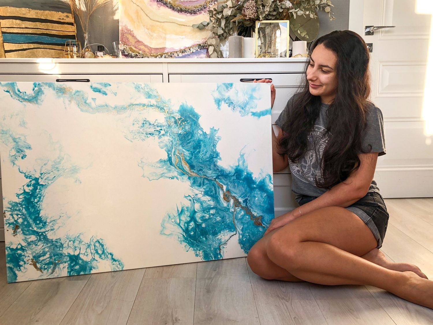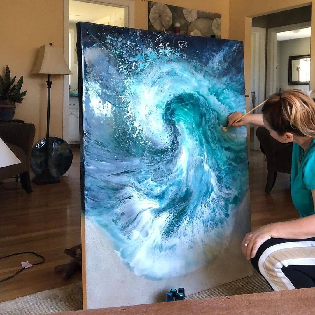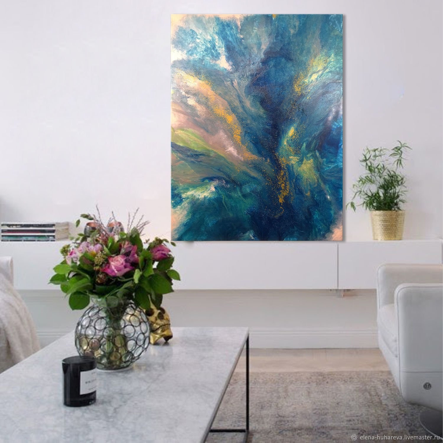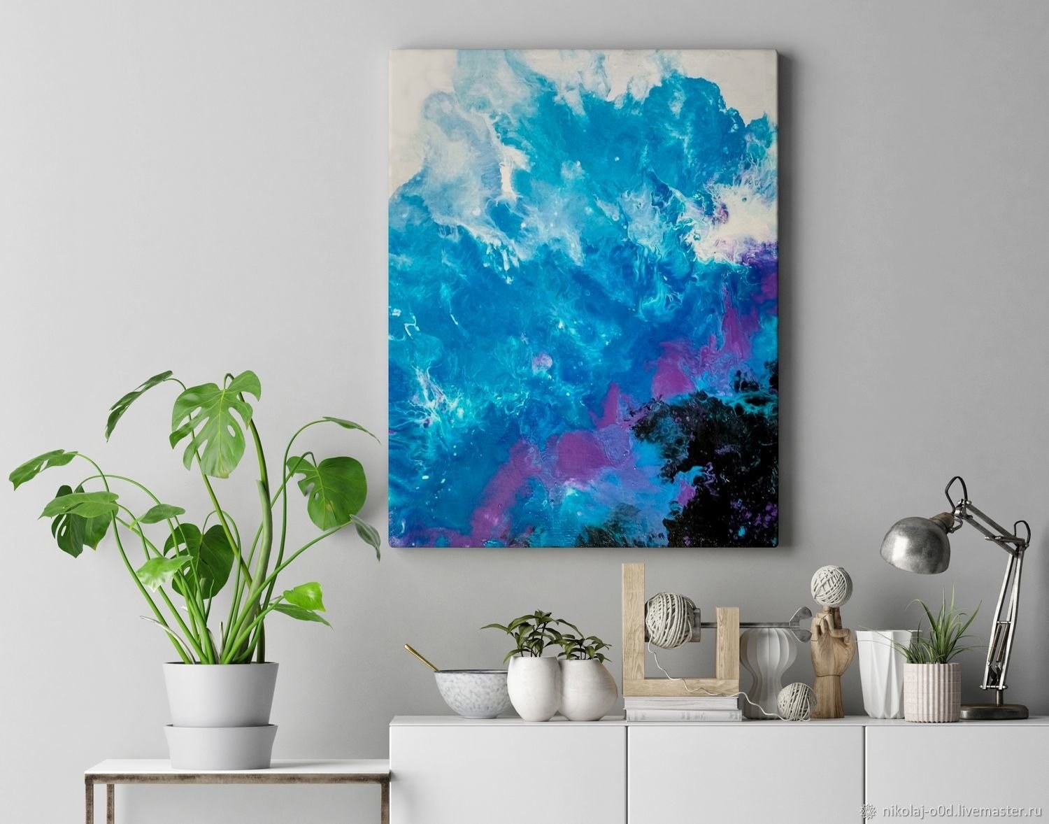 Жидкий акрил картины в интерьере