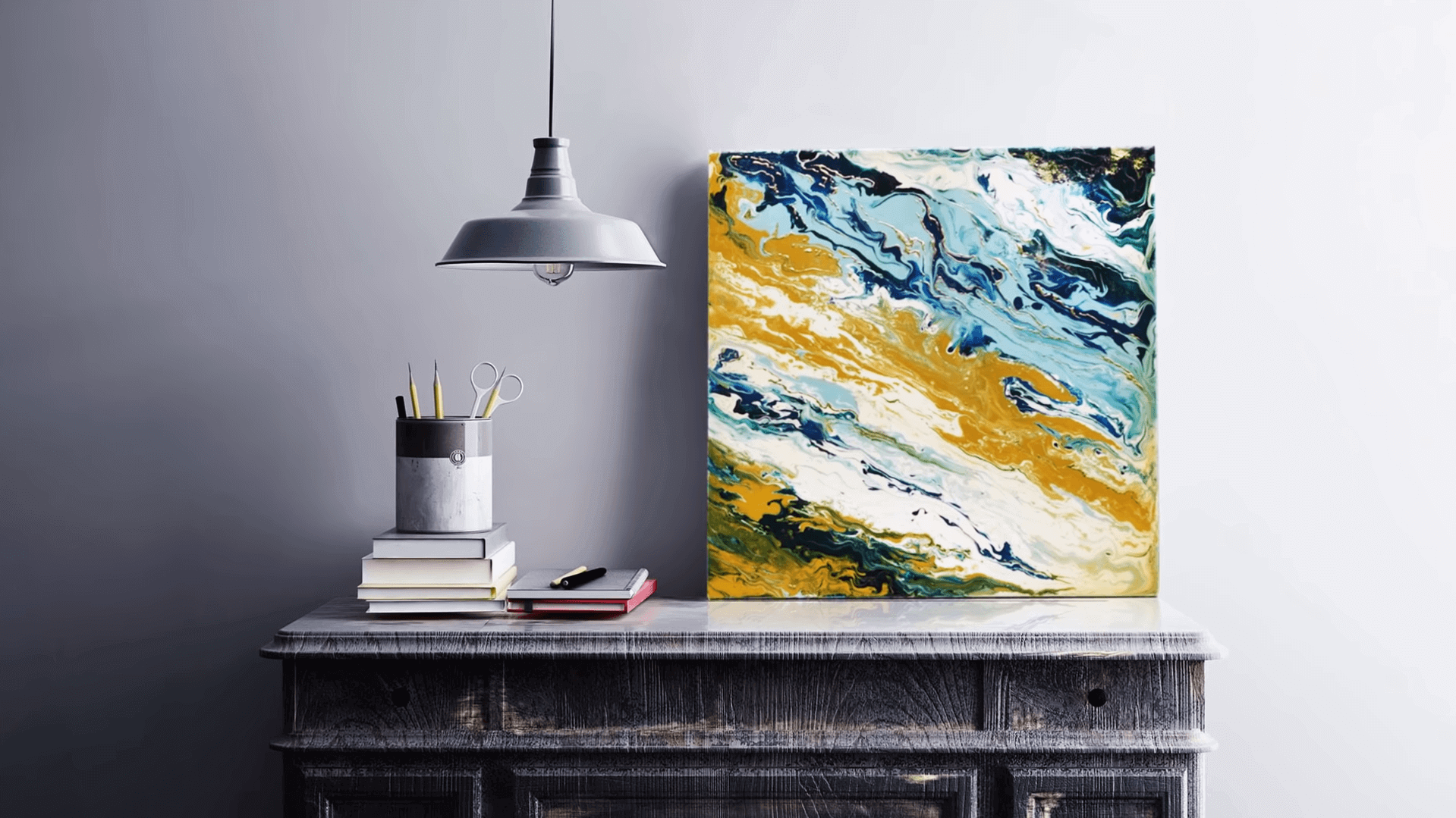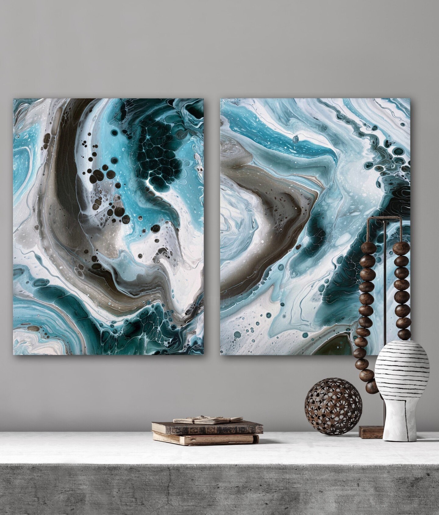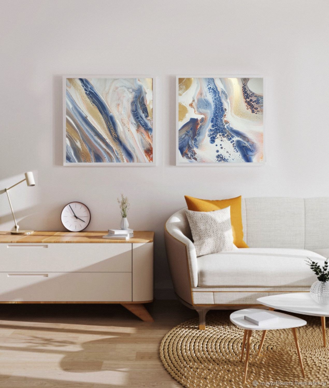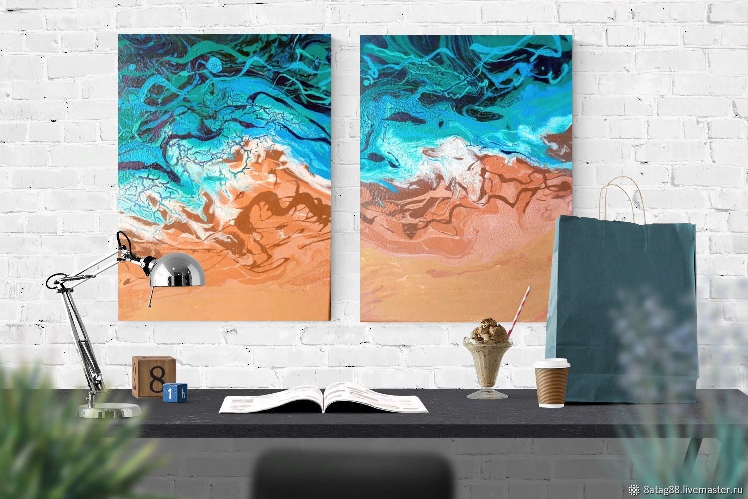 Жидкий акрил картины в интерьере