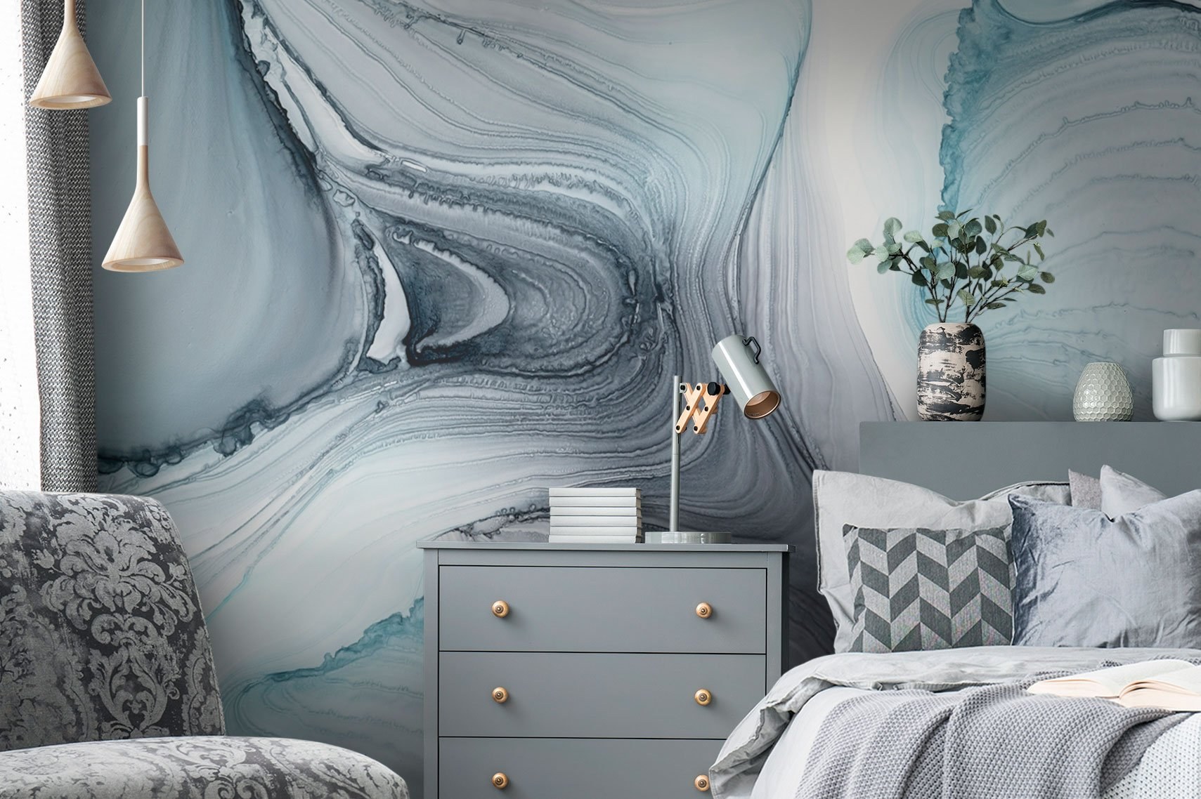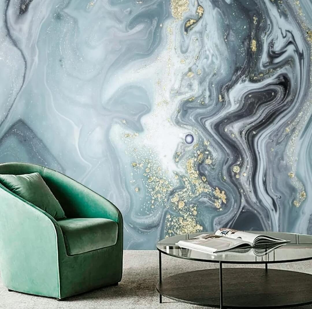 Фреска флюид арт в интерьере