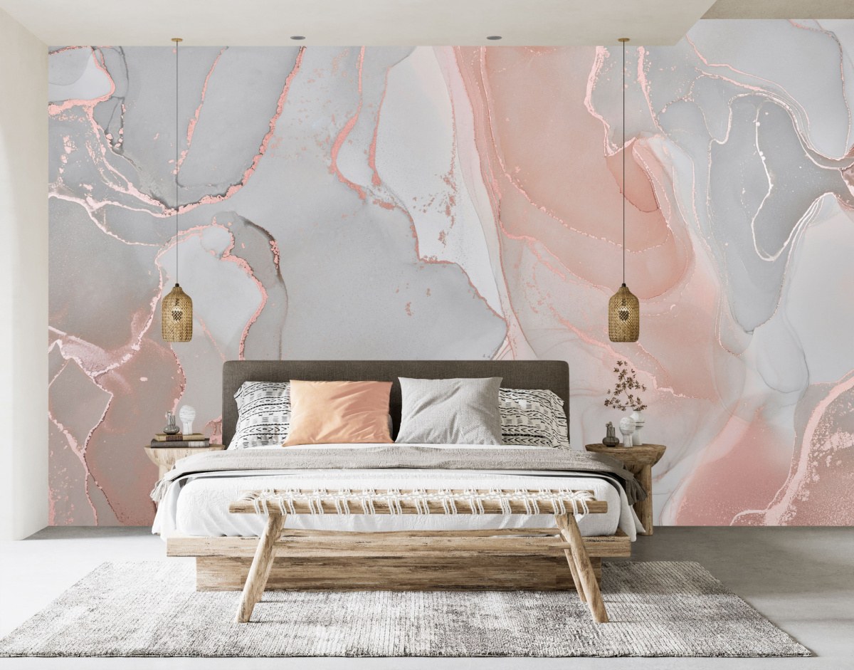 Фотообои флюид арт в интерьере спальни