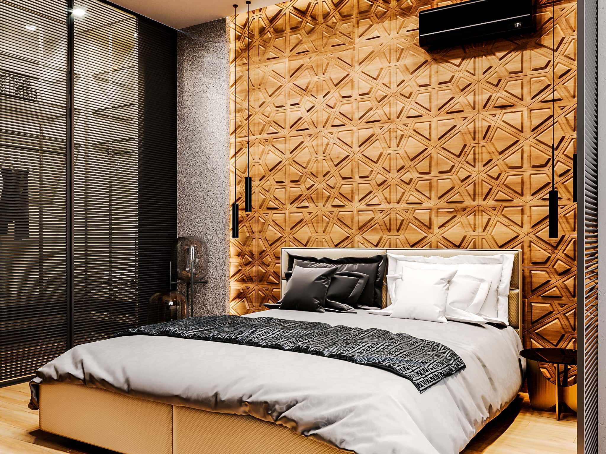 Деревянные панели в интерьере спальни