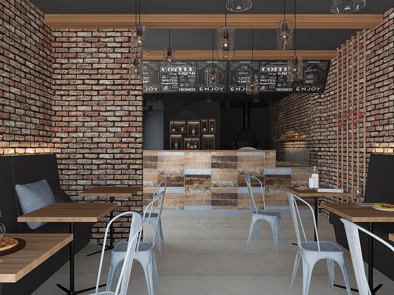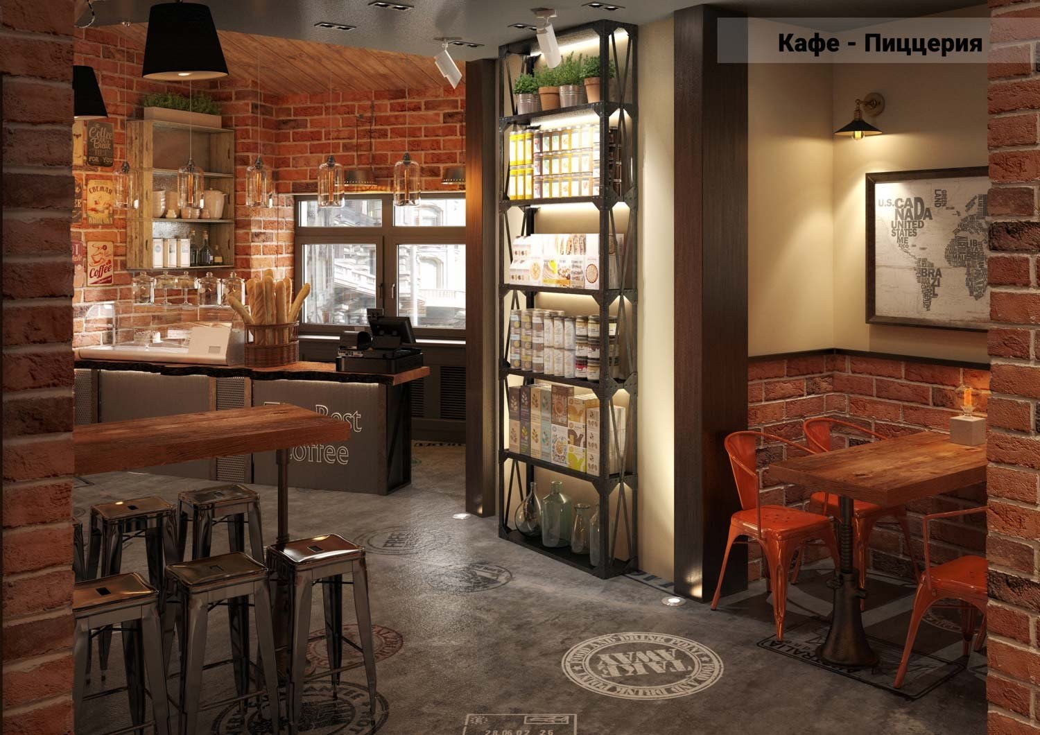 Интерьер кафе пиццерии лофт