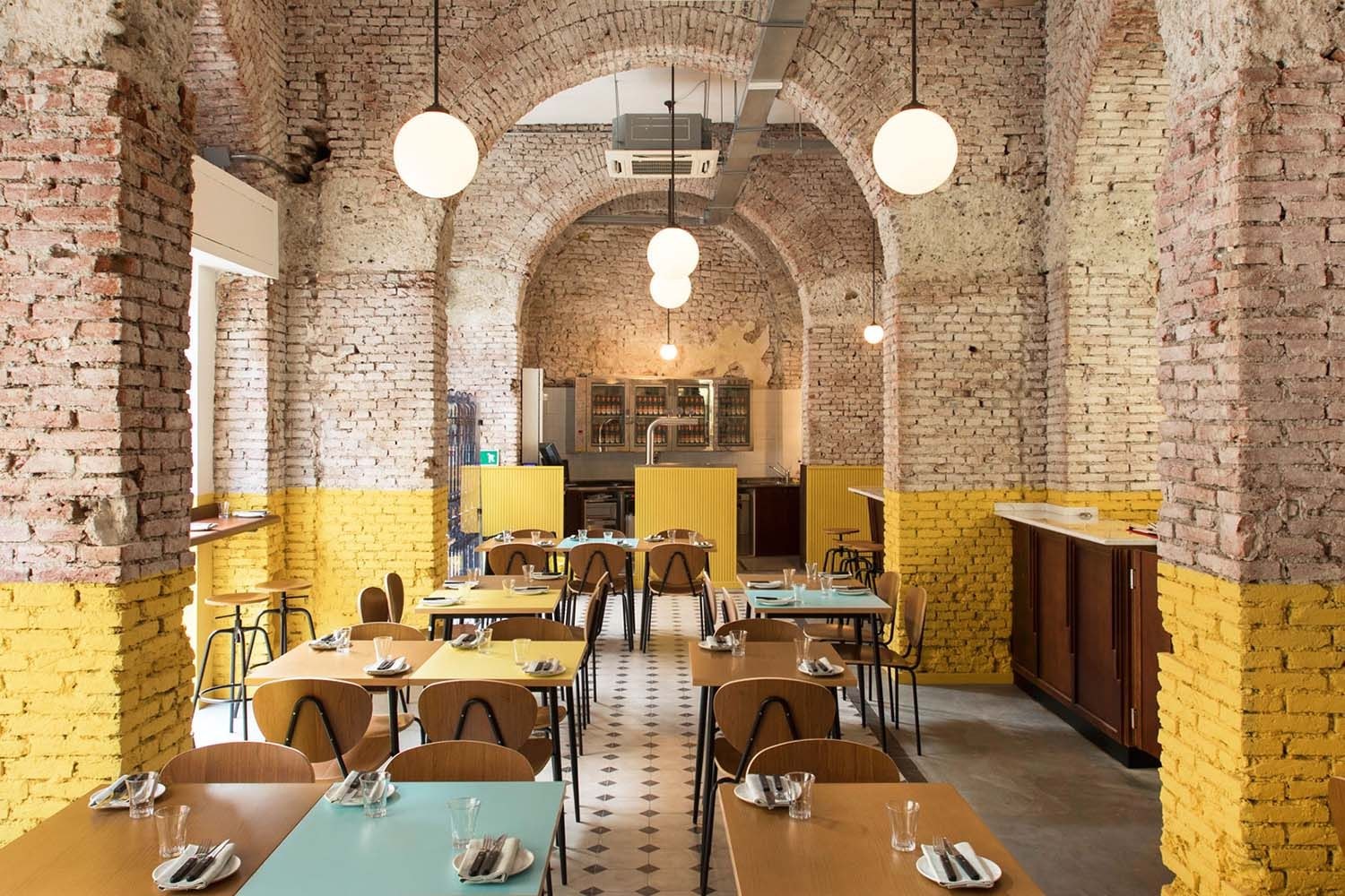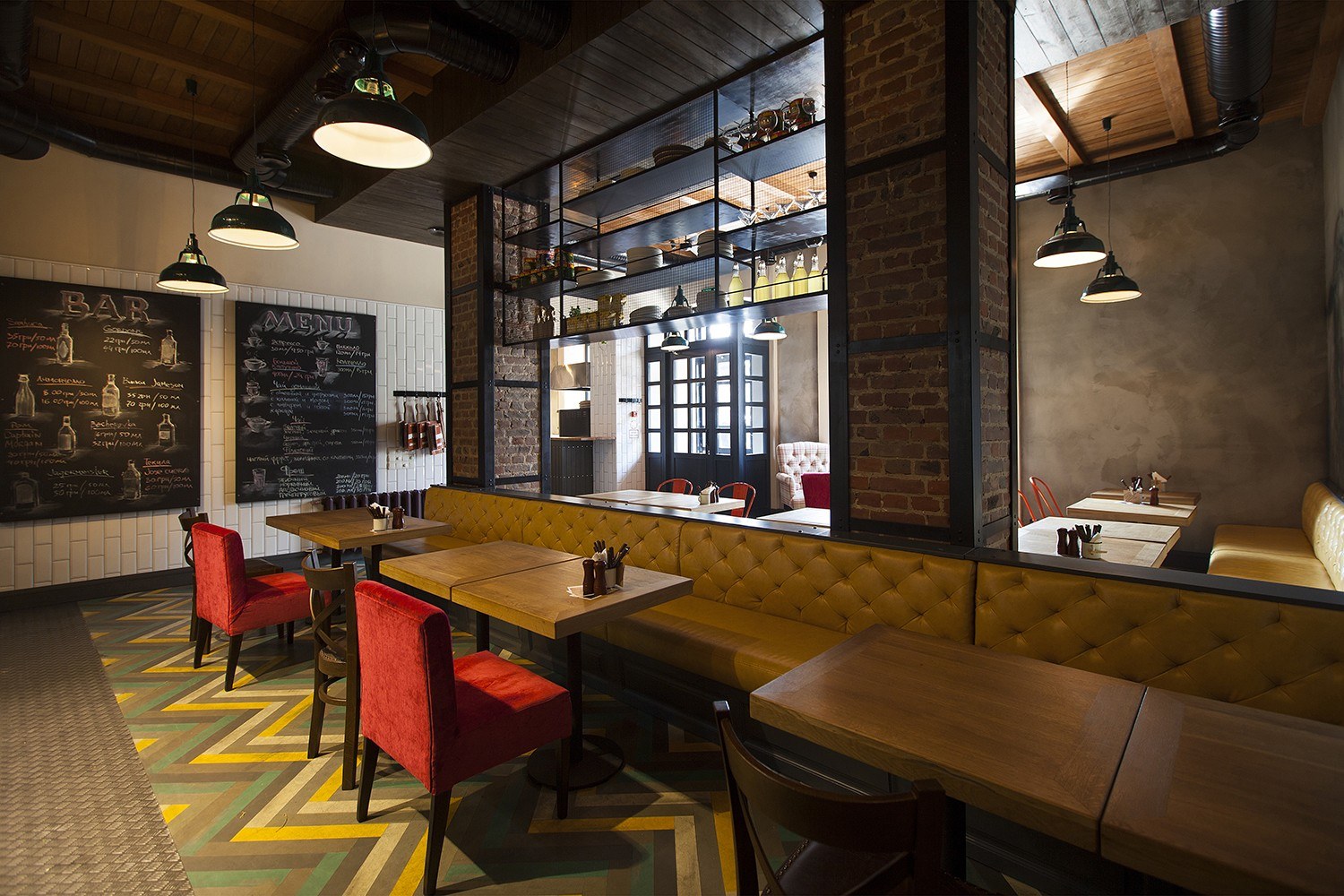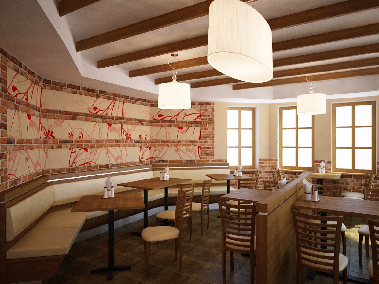 Интерьер кафе красный кирпич