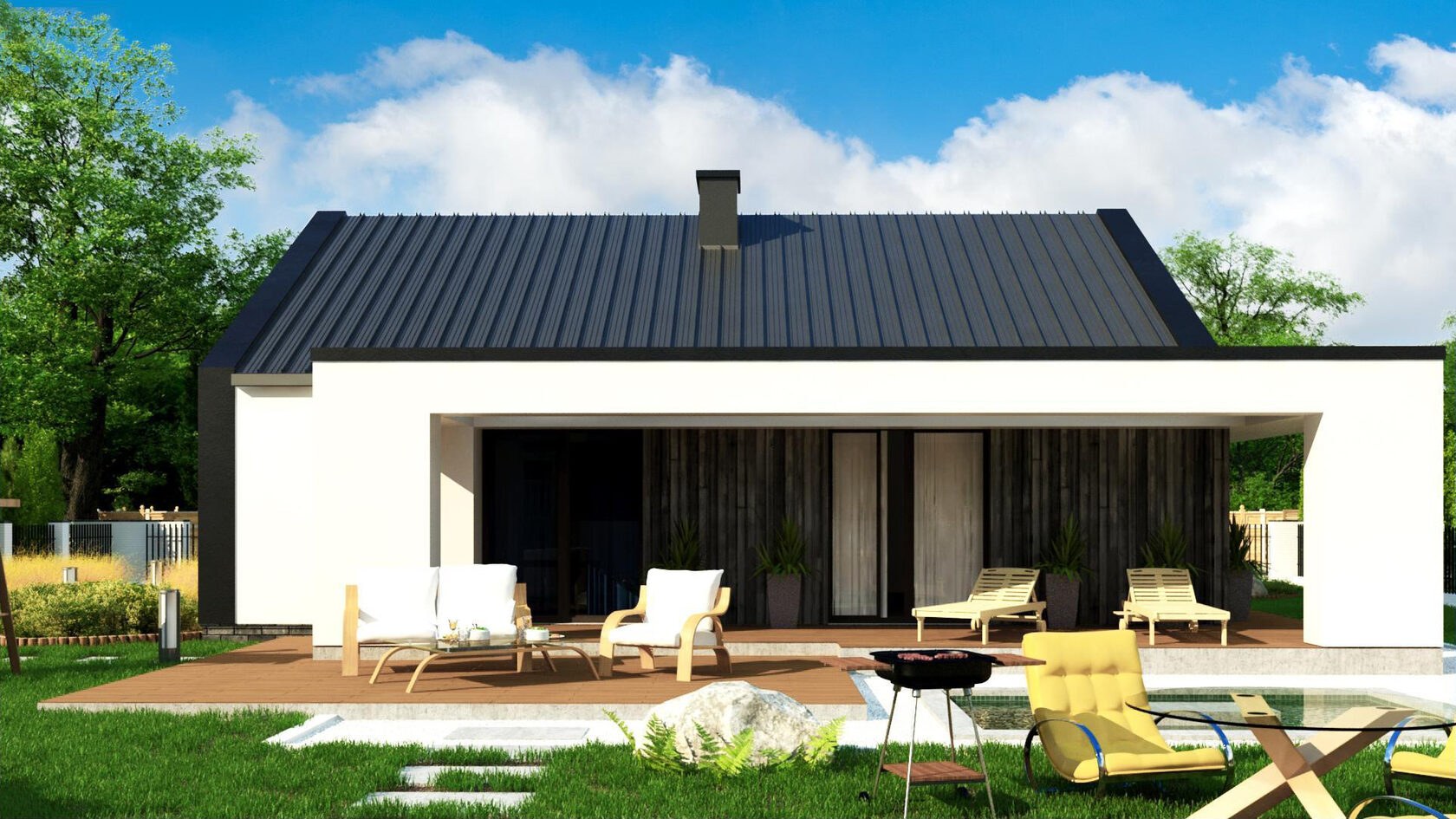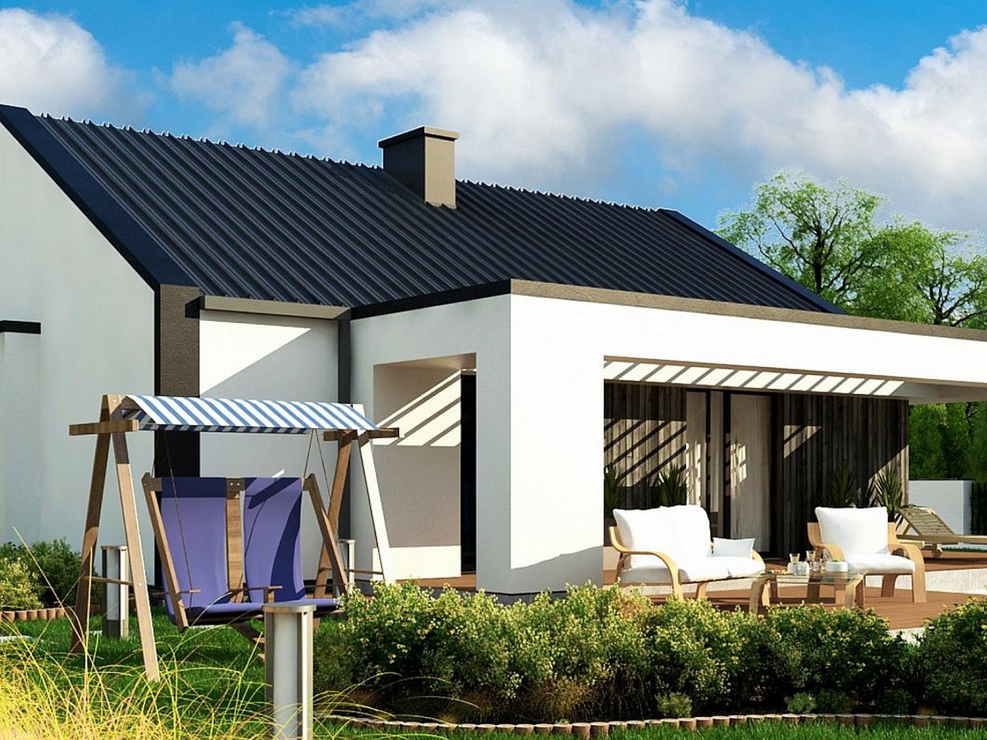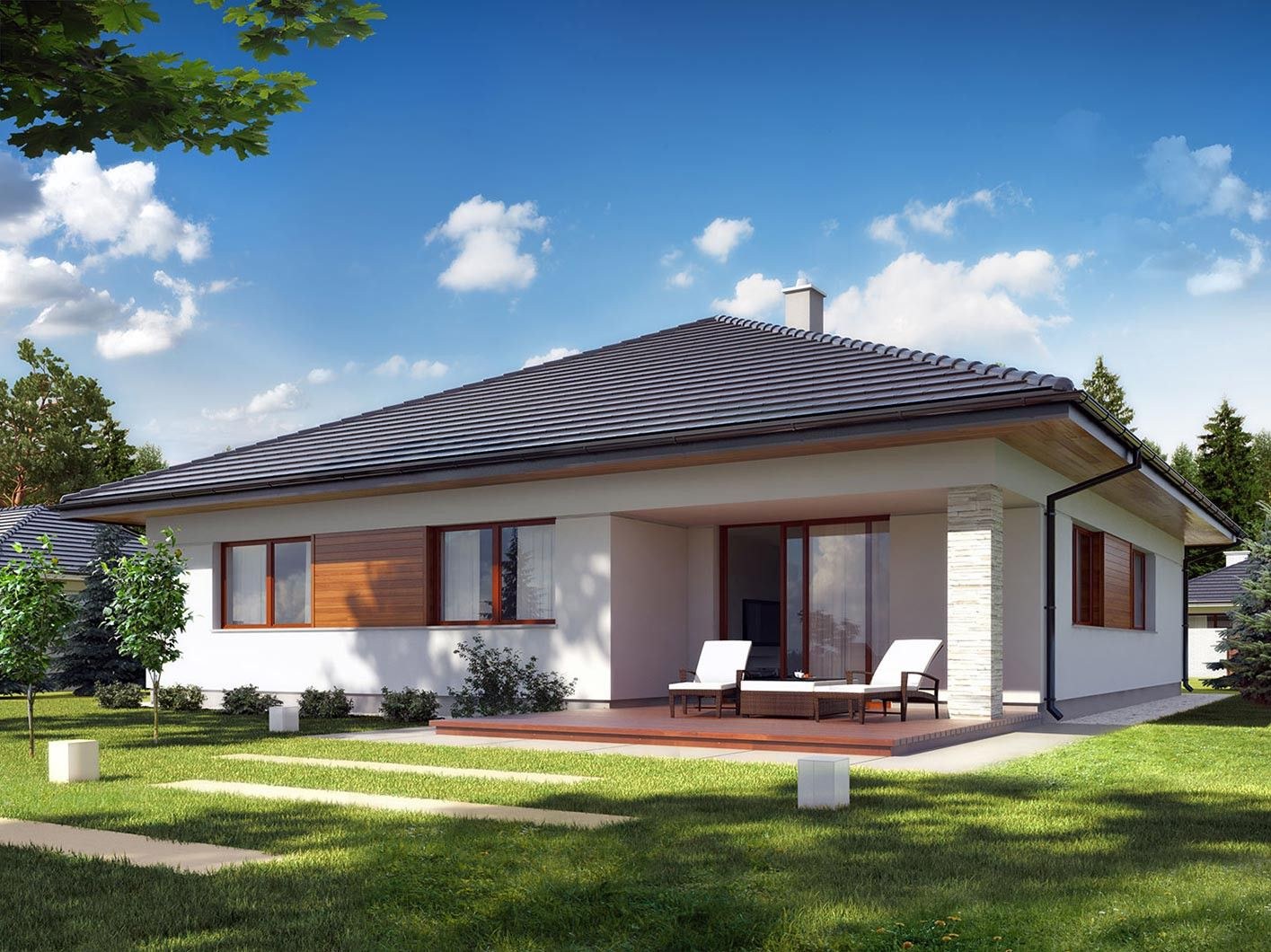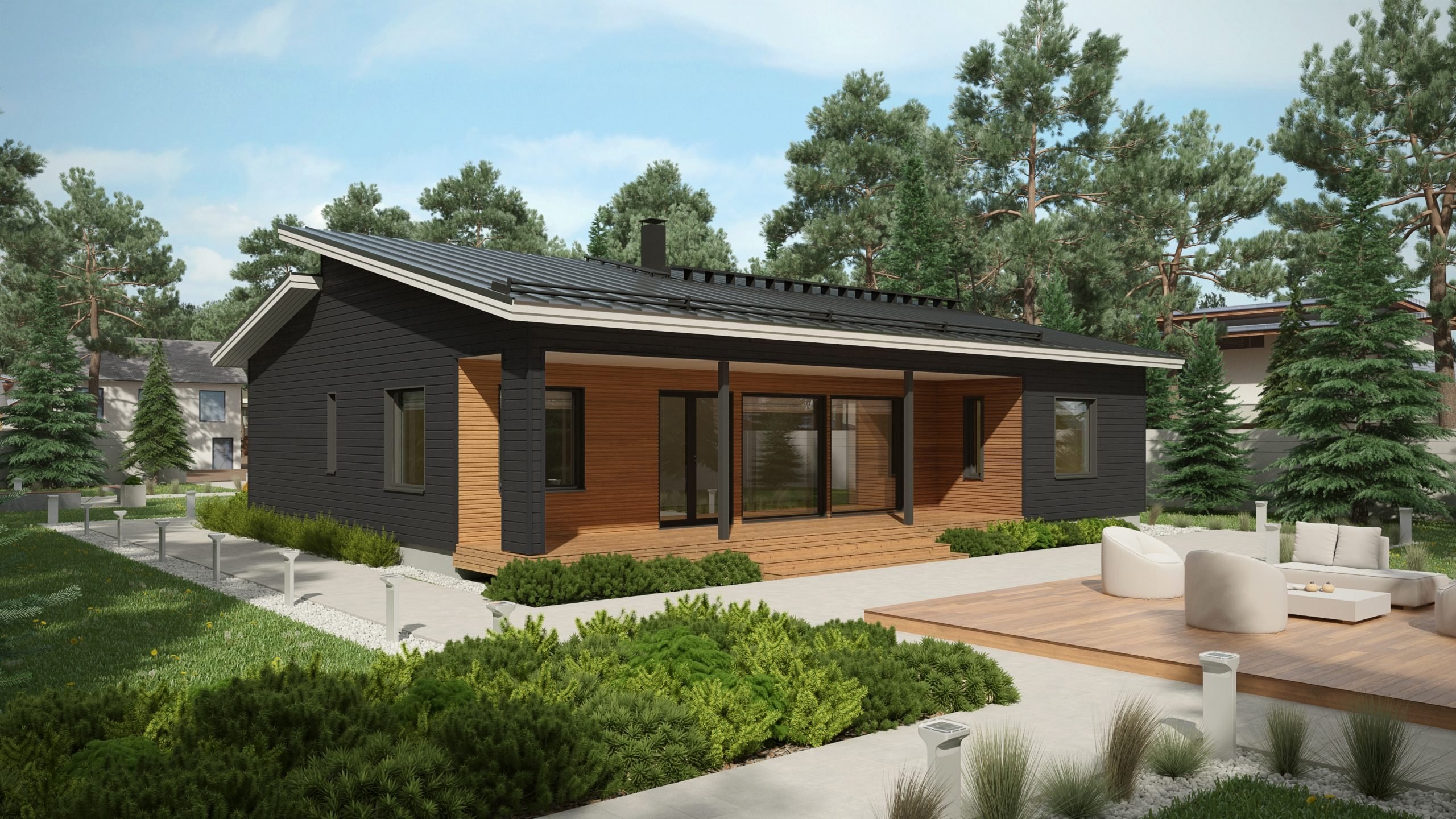 Дом в скандинавском стиле одноэтажный с террасой