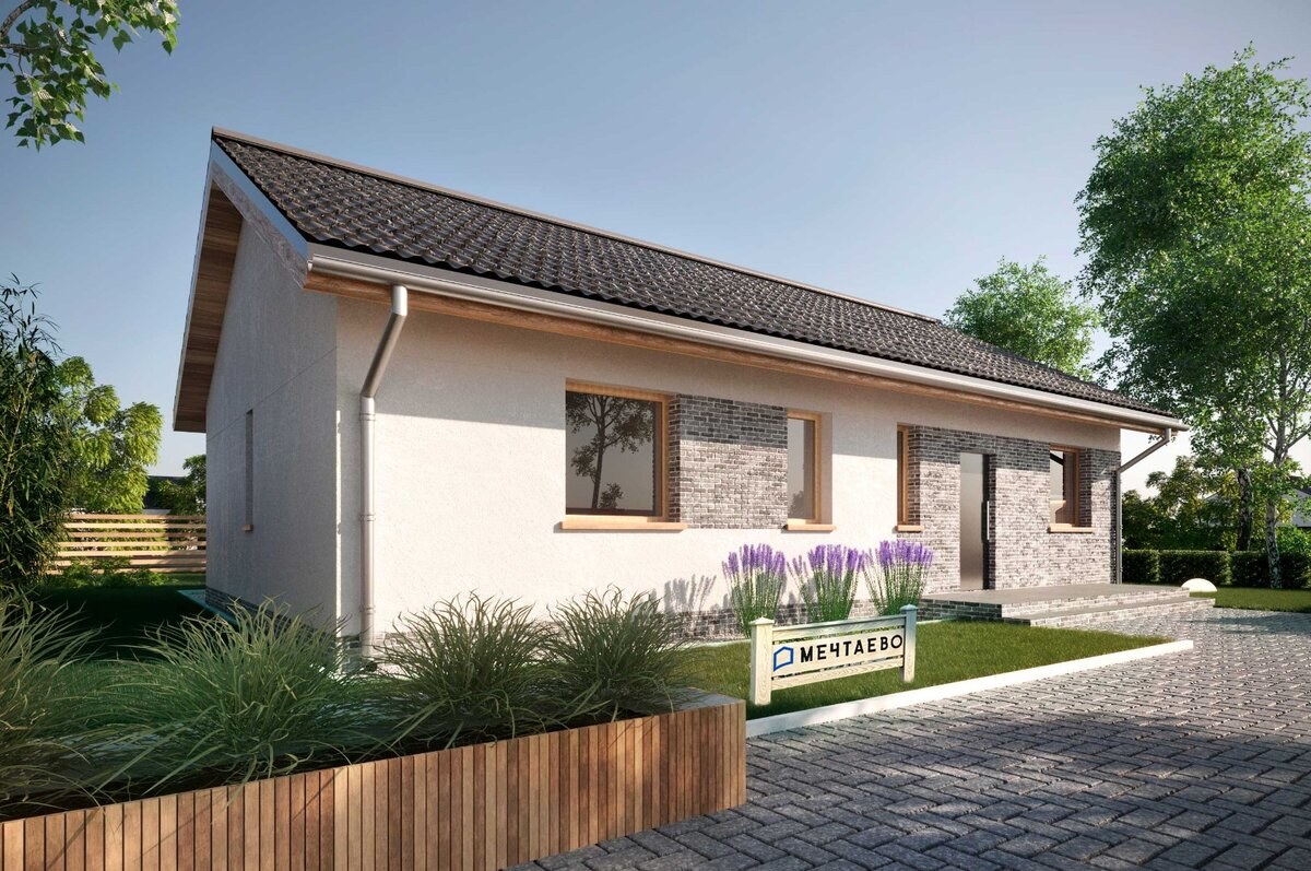 Дом в один этаж с двускатной крышей