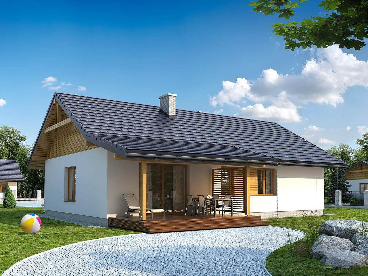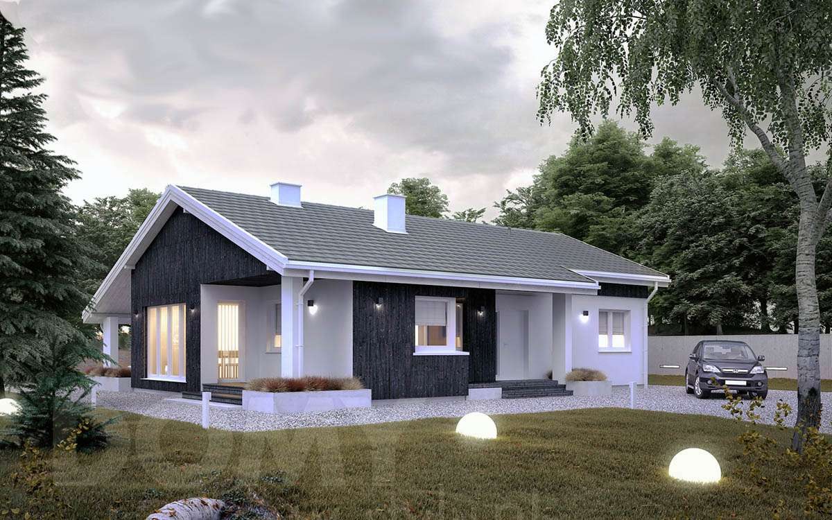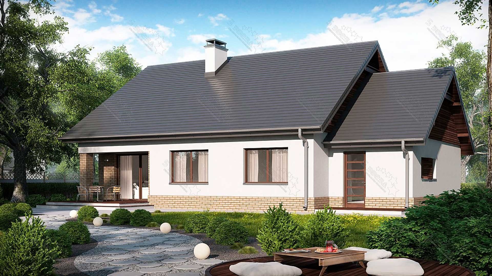 Одноэтажный дом 80 кв с двухскатной крышей