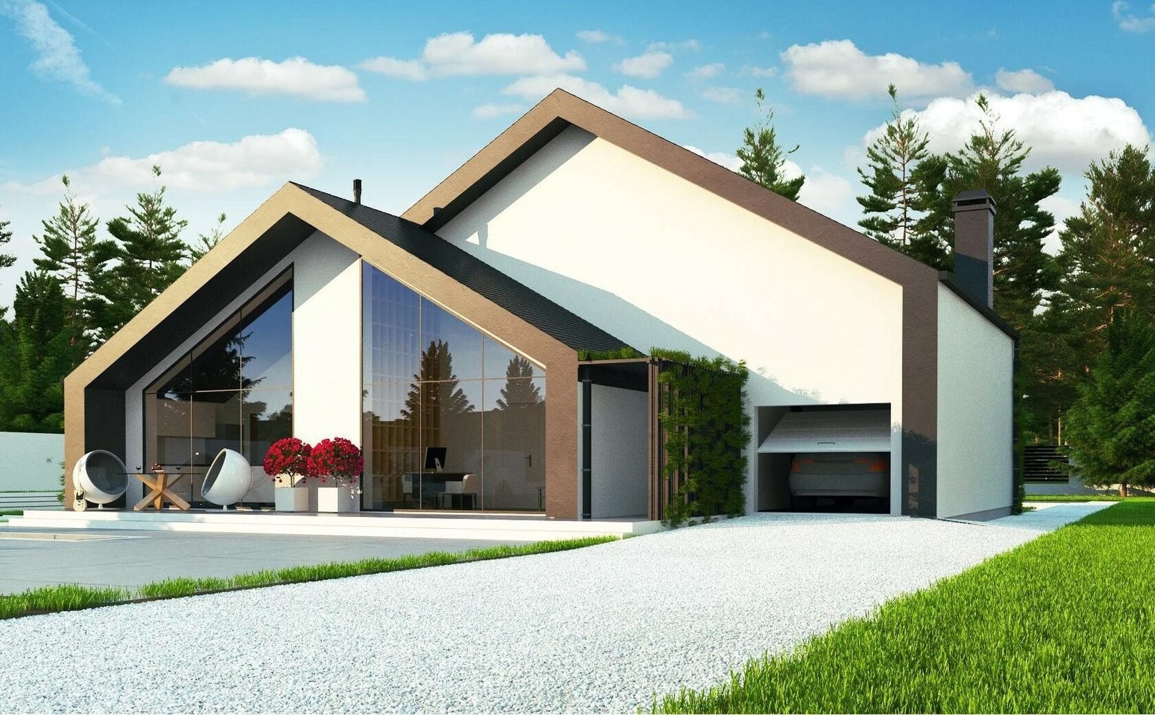 Современные дома с двускатной крышей