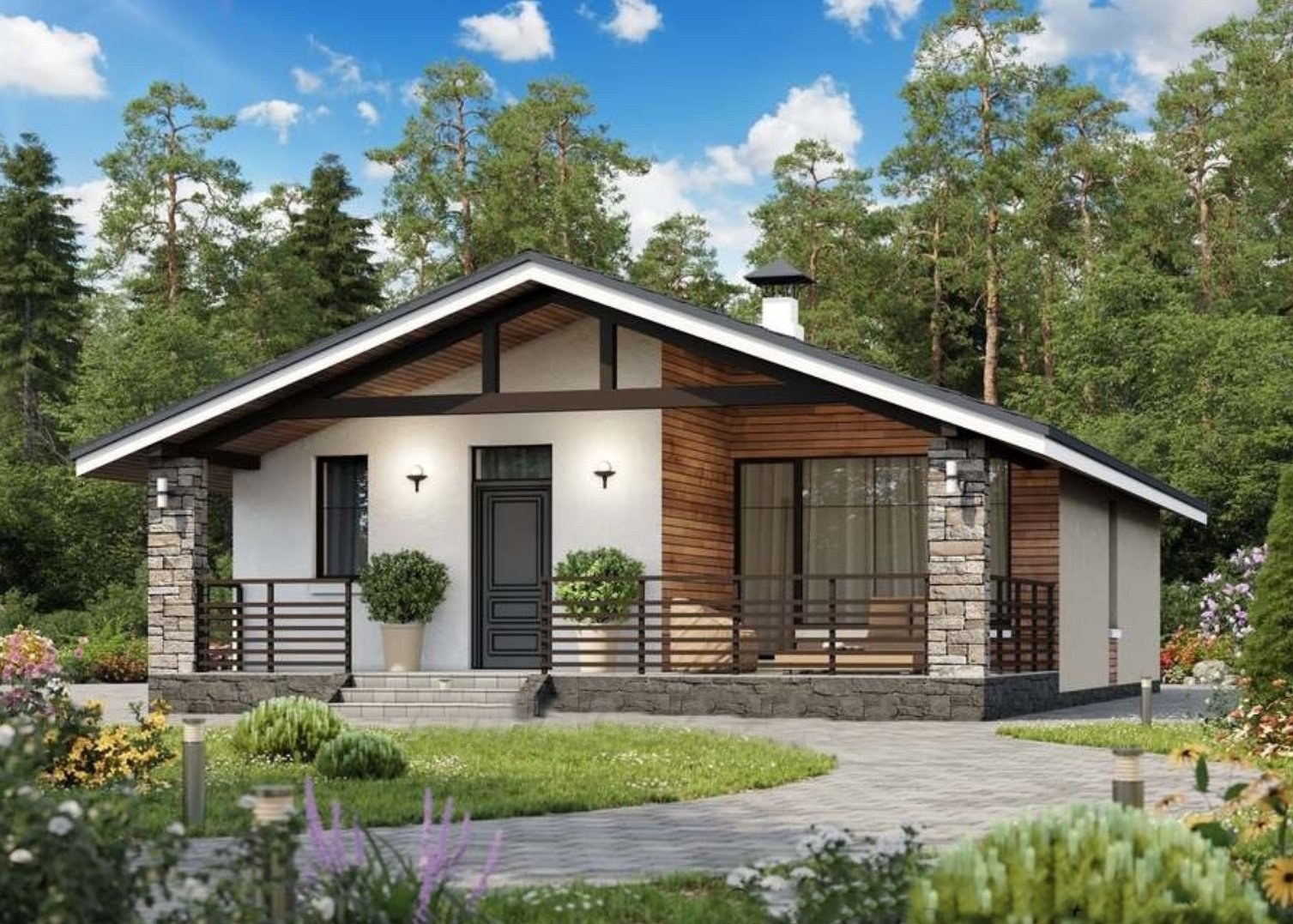 Фасады одноэтажных домов с двухскатной крышей