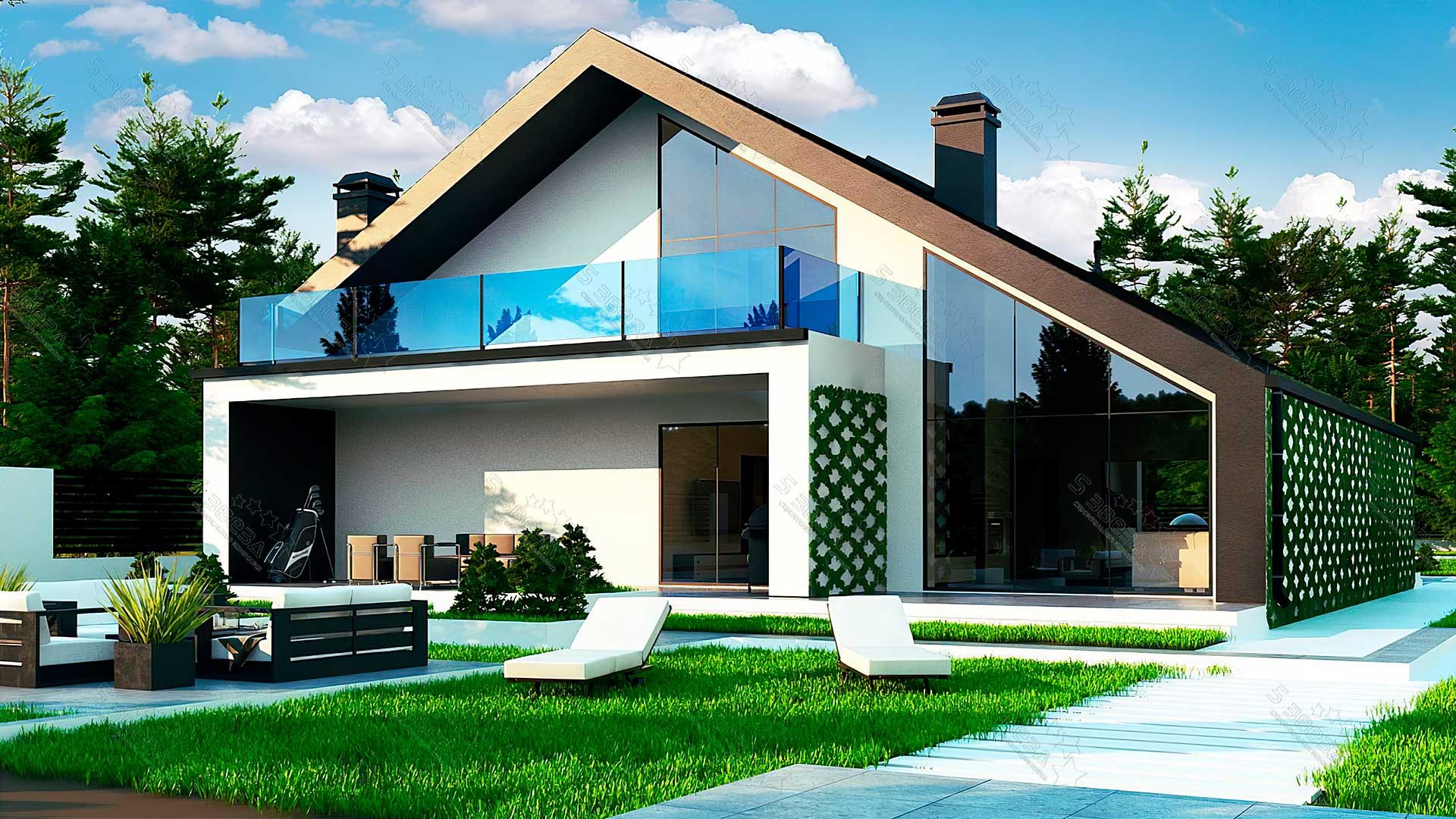 Дом Шале одноэтажный с мансардой и террасой