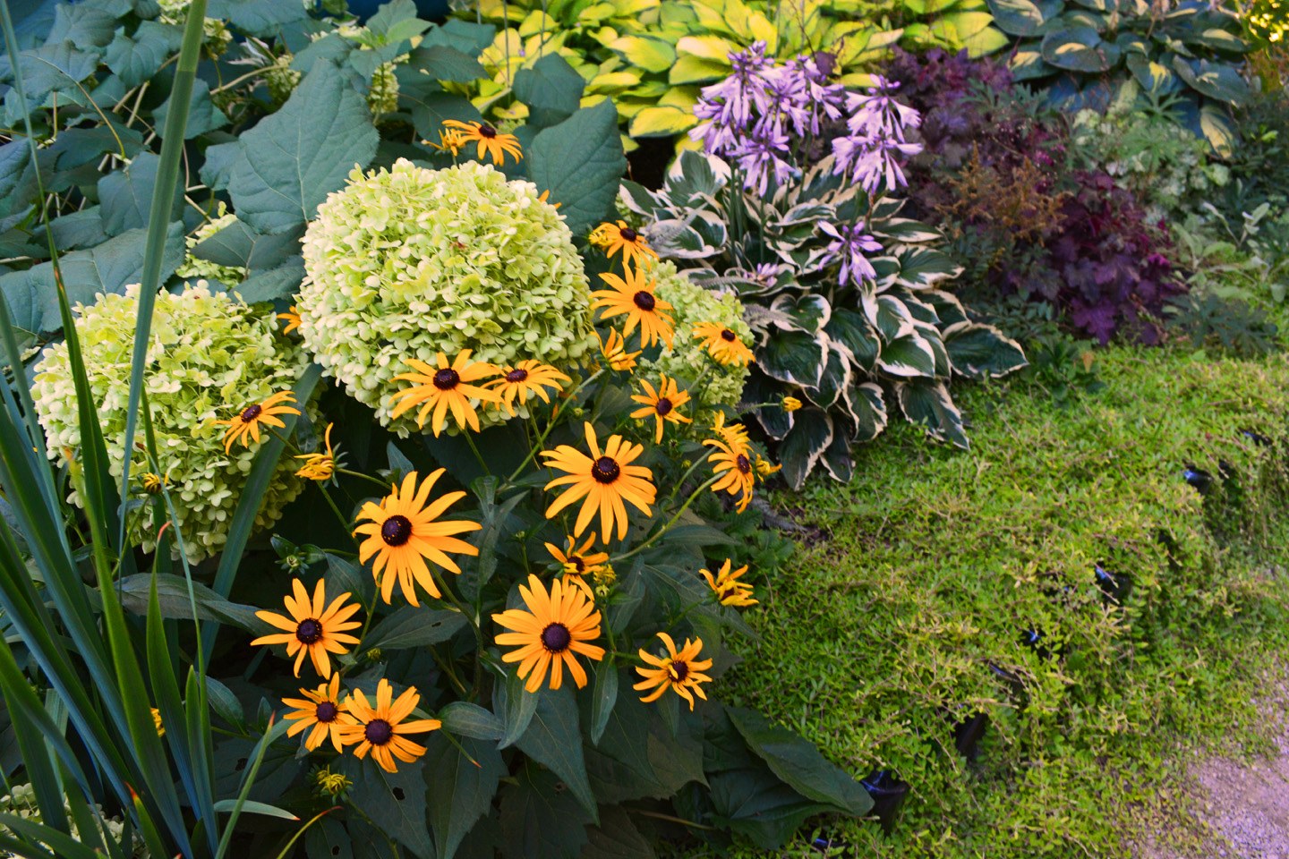 Миксбордер лилейник гортензия и Хоста