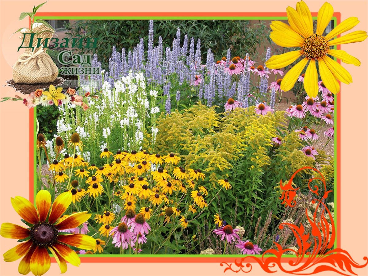 Миксбордер рудбекия Флокс эхинацея