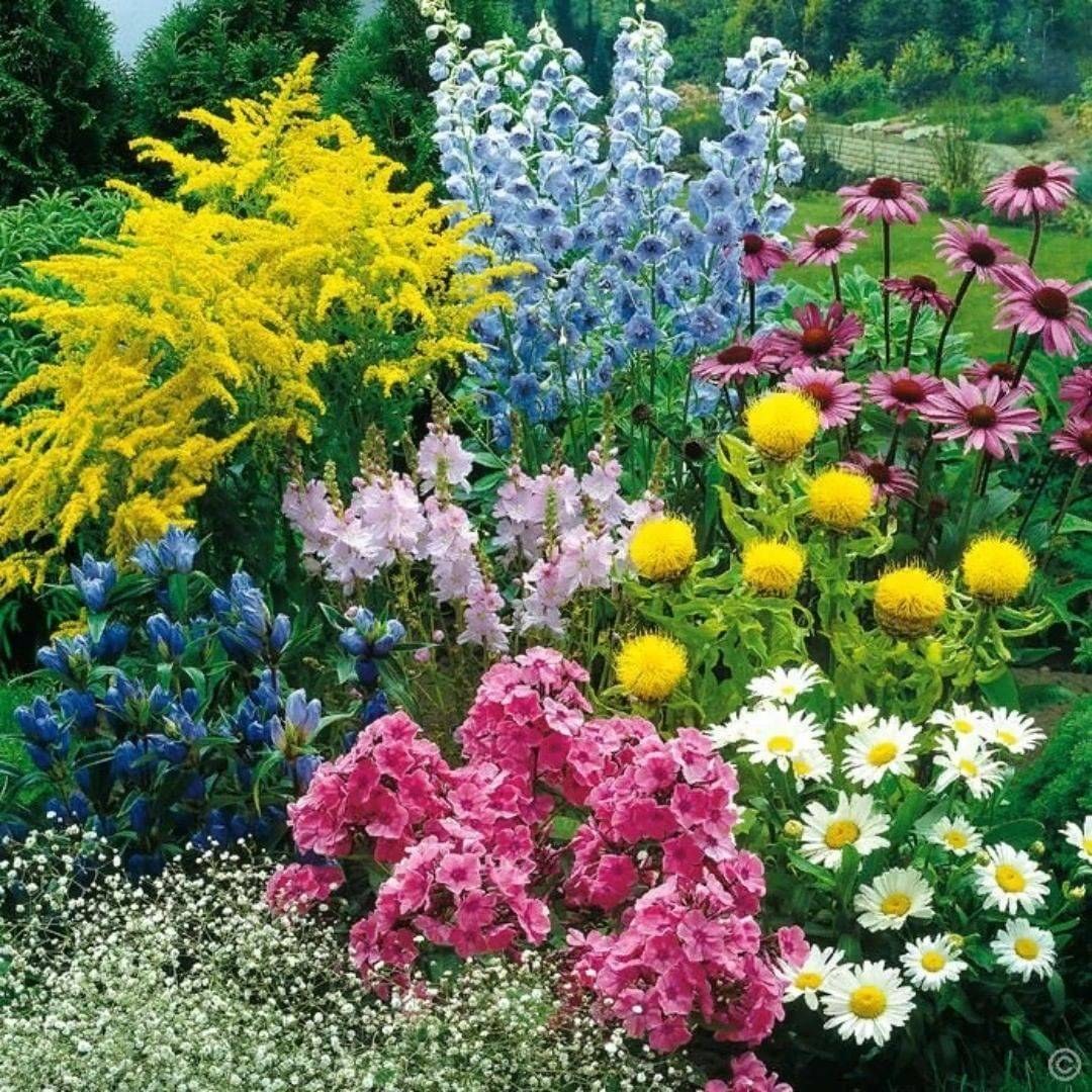 Клумба Мальва дельфиниум Хоста Флоксы рудбекия