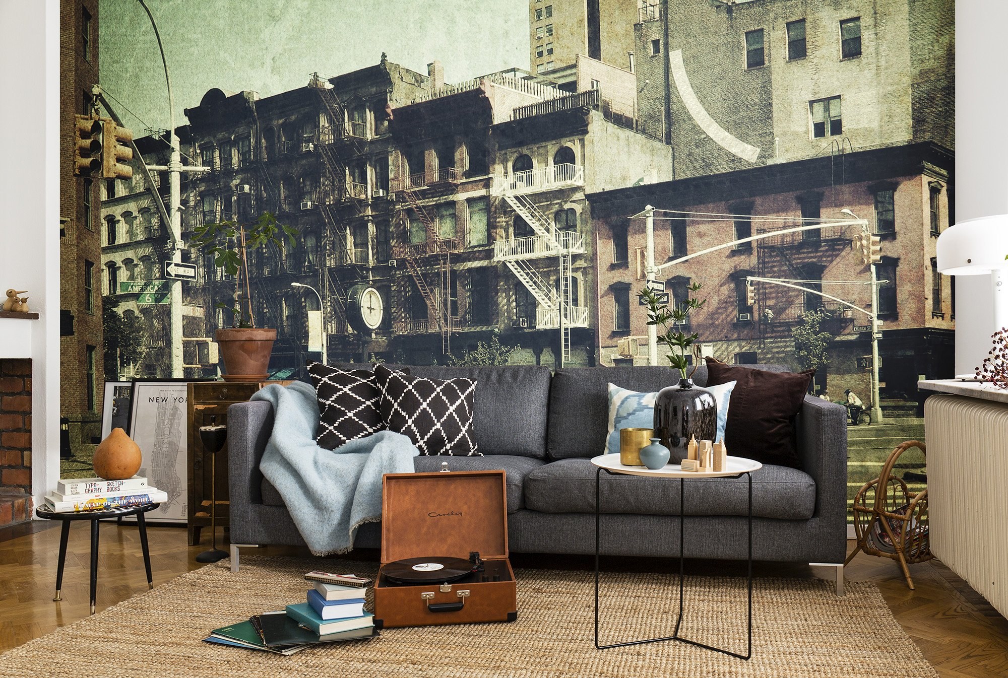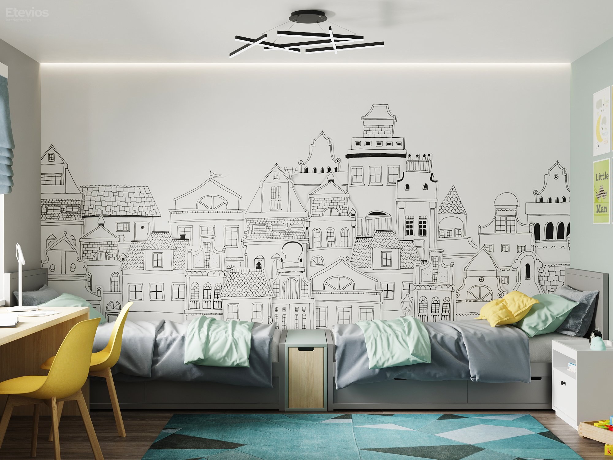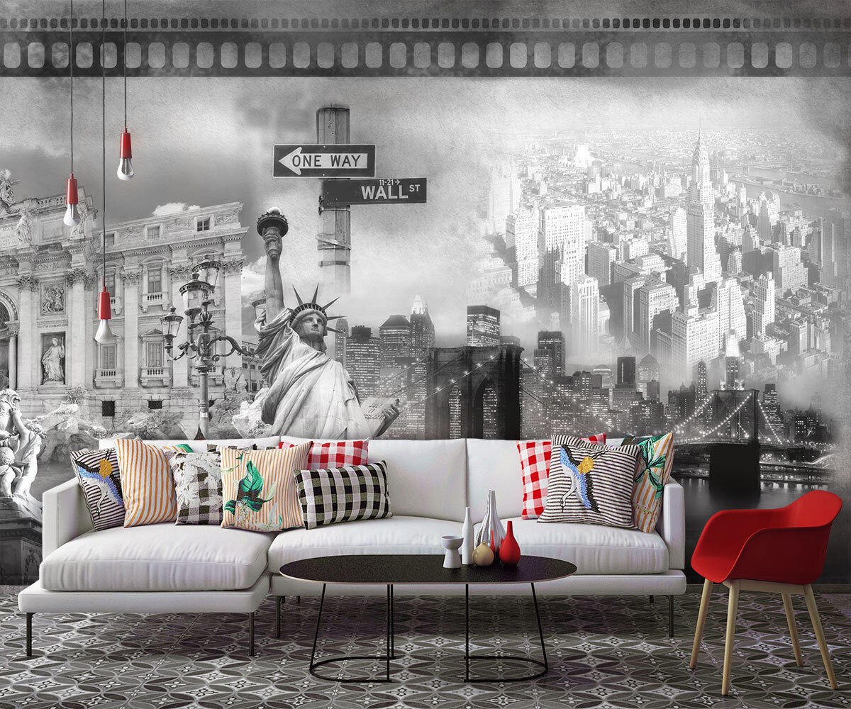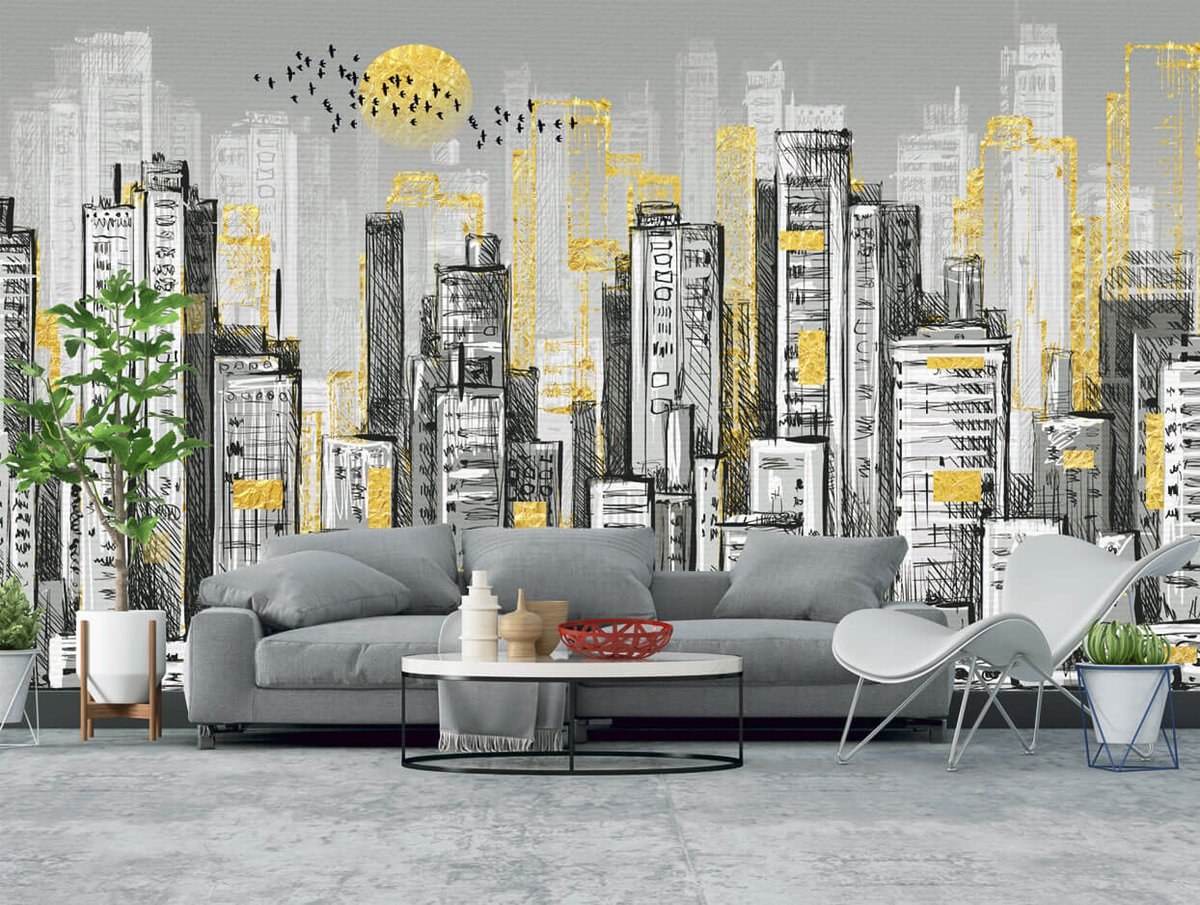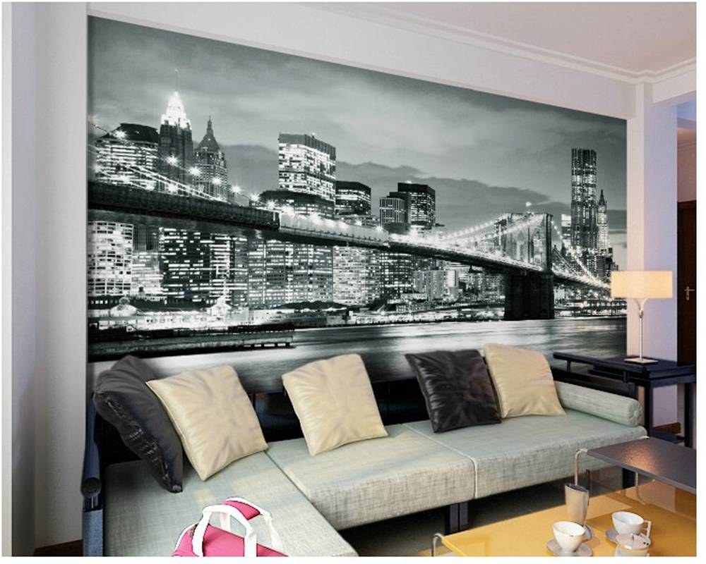 Обои город на стену в интерьере