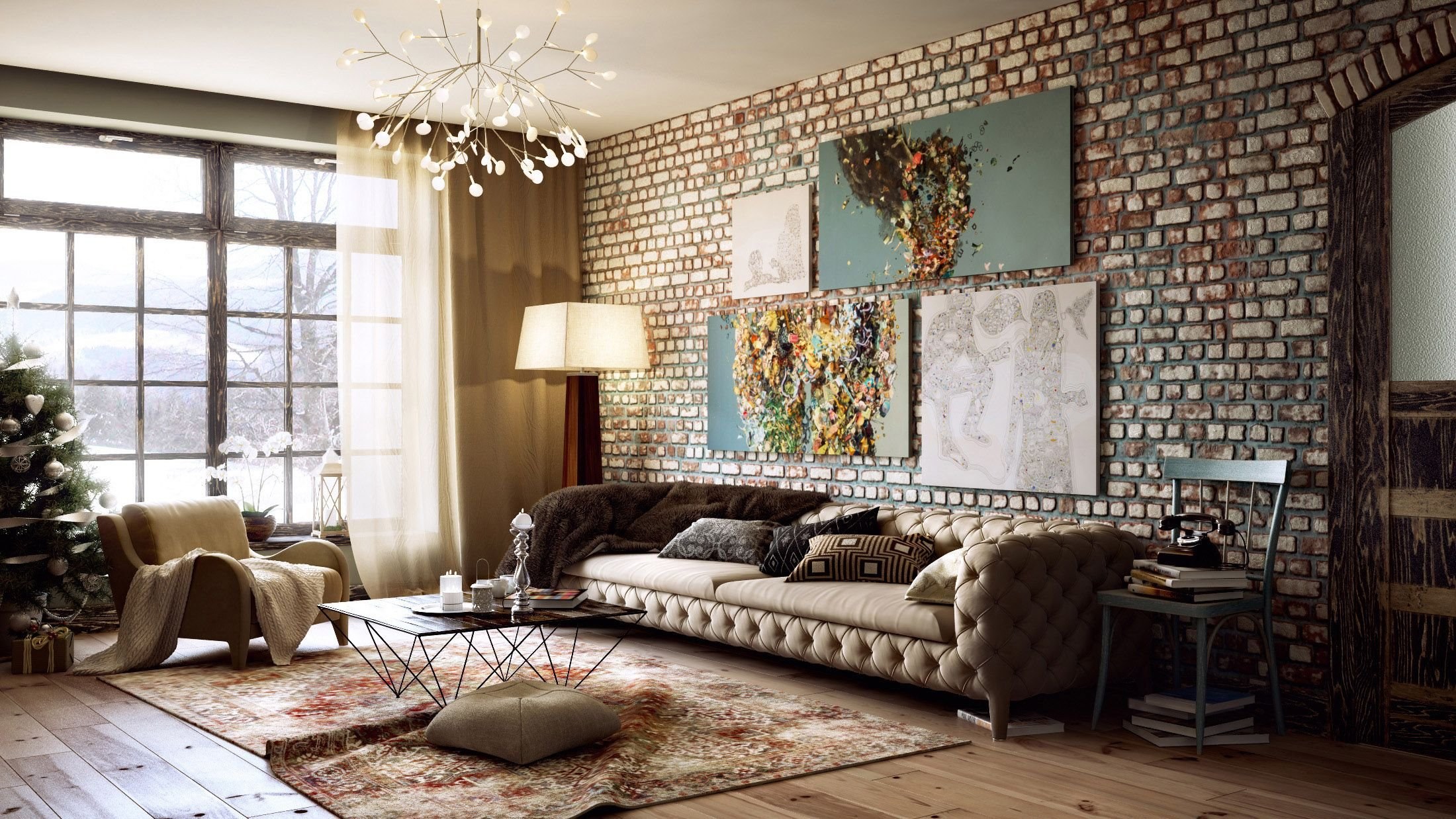 Фотообои под стиль лофт в интерьере