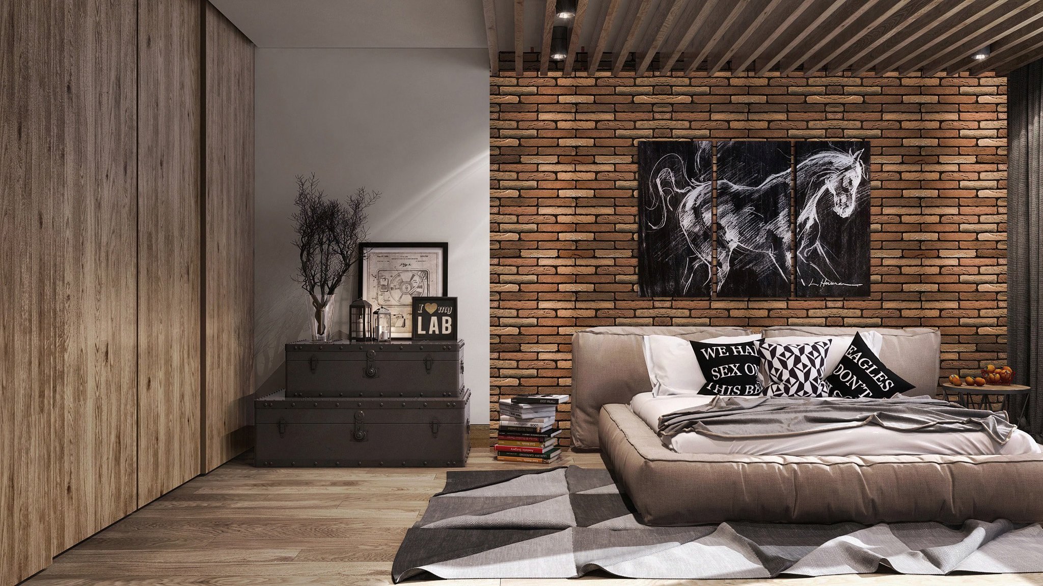 Спальня гостиная в стиле лофт